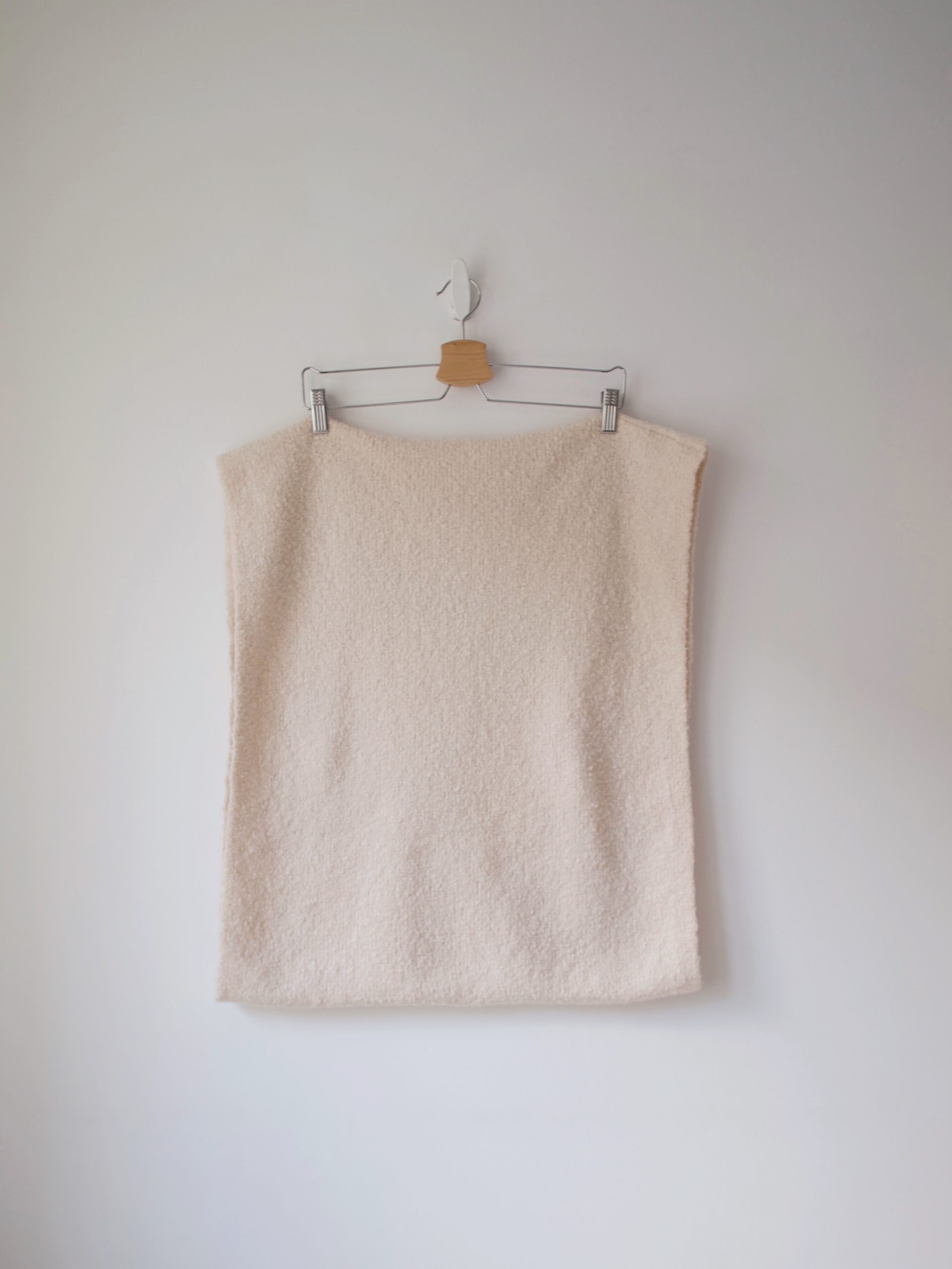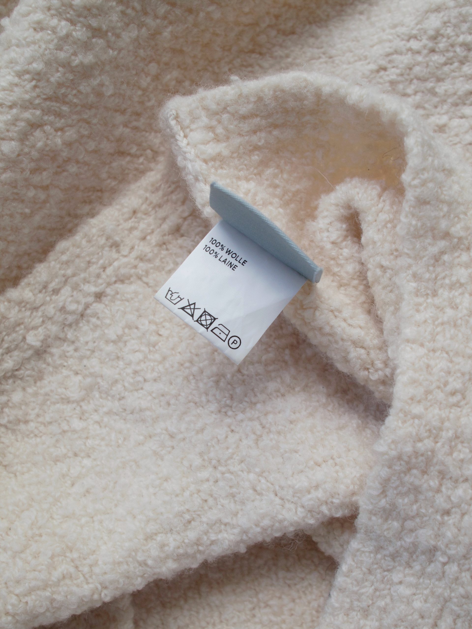 Duży szalik komin niemieckiej marki Madeleine. W 100% wykonany z wełny boucle, bardzo ciepły. Skład: 100% wełna Stan: idealny Szerokość 55 cm Długość 64×2 cm