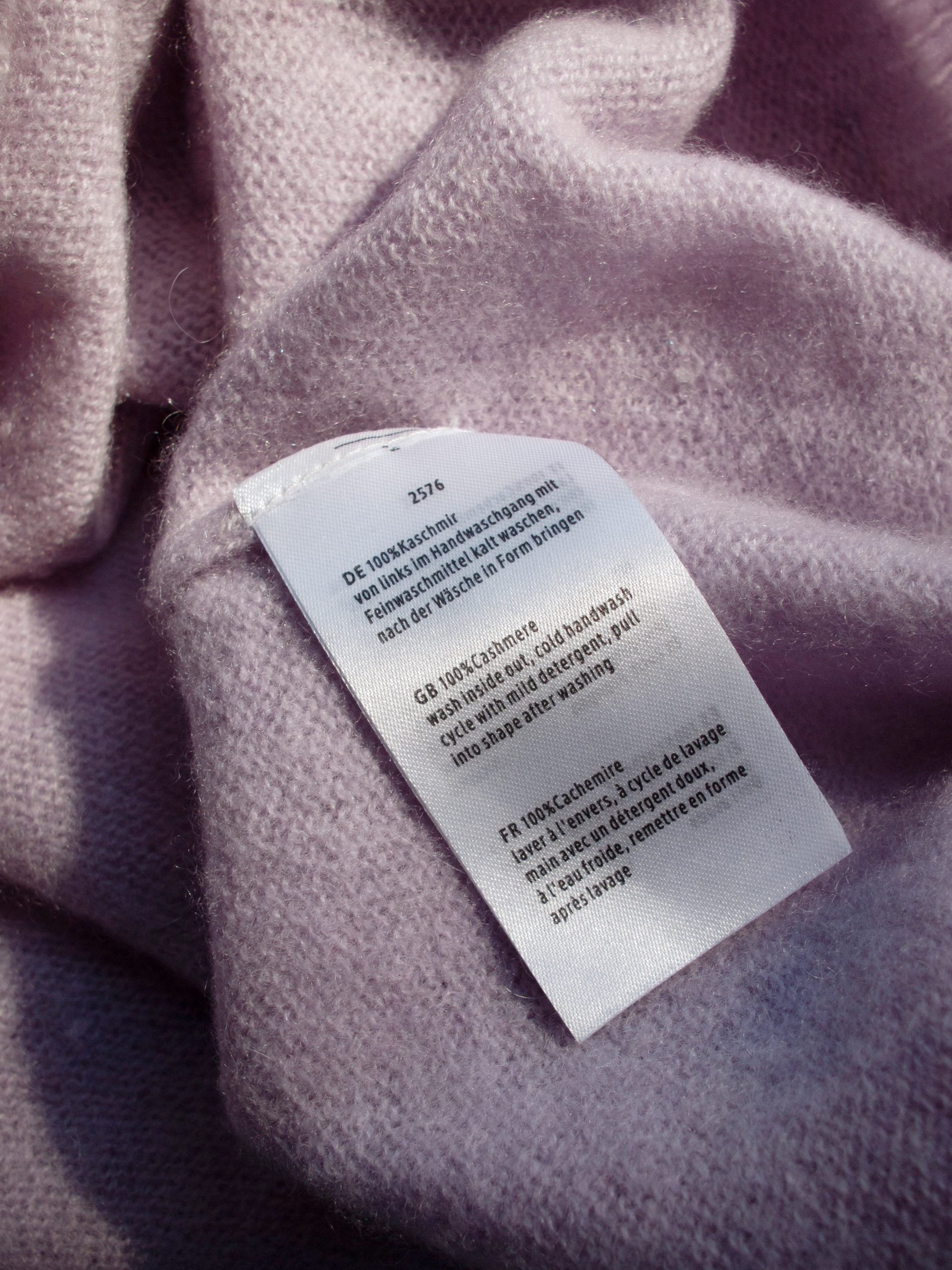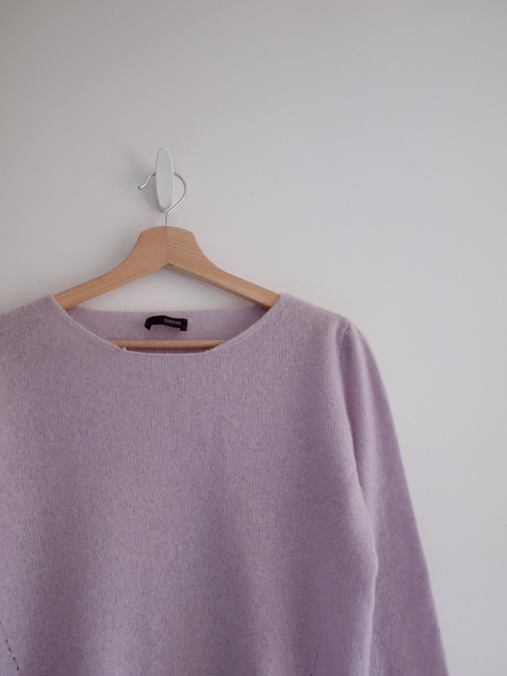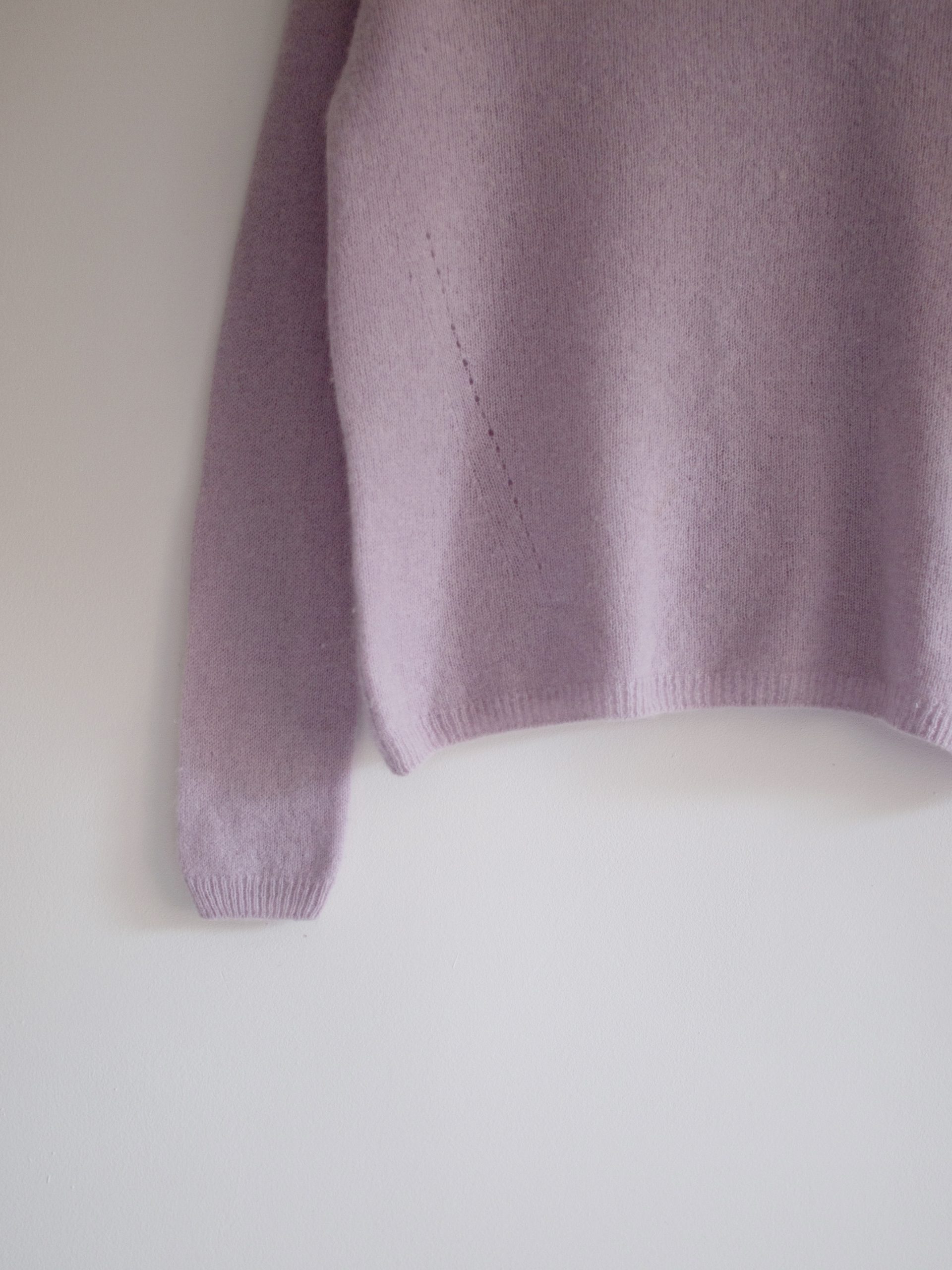 Cienki kaszmirowy sweter w pięknym liliowym kolorze. Rozmiar z metki: brak Skład: 100% kaszmir Stan: bardzo dobry Szerokość w klatce 47 cm Długość całkowita 54 cm