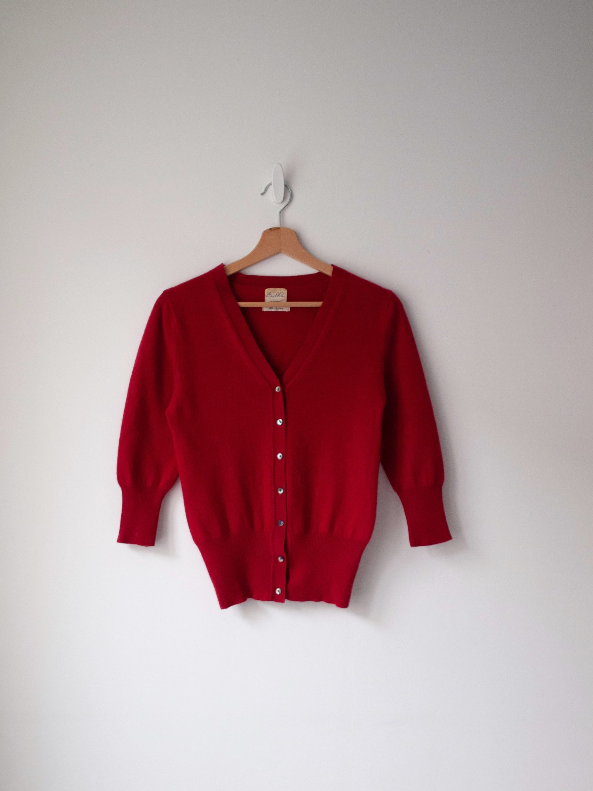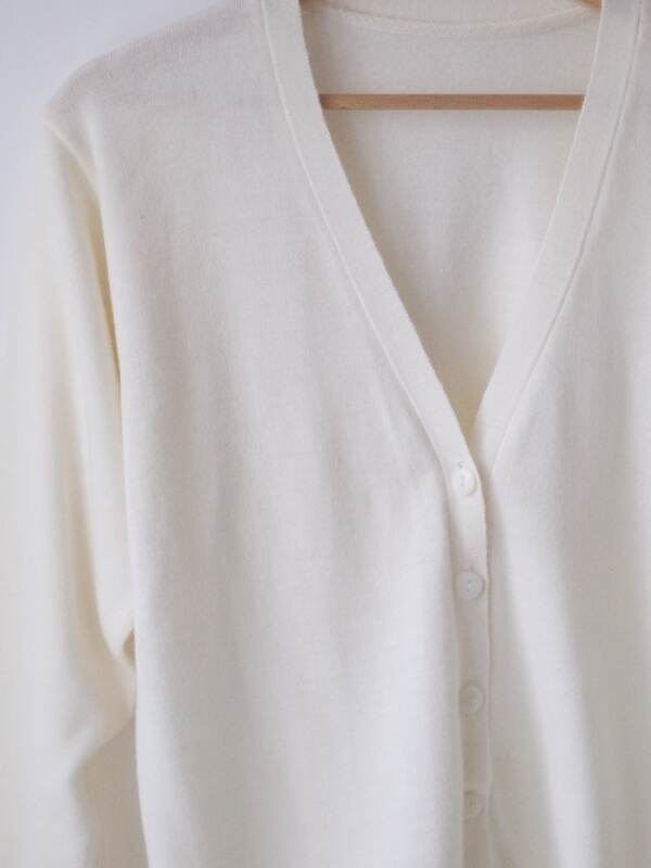Minimalistyczny kardigan o luźnym kroju. Kardigan nie ma żadnych metek, przypuszczam, że był szyty ręcznie, lub na zamówienie. Materiał przyjemny w dotyku, nie gryzie. Wymiary poniżej.