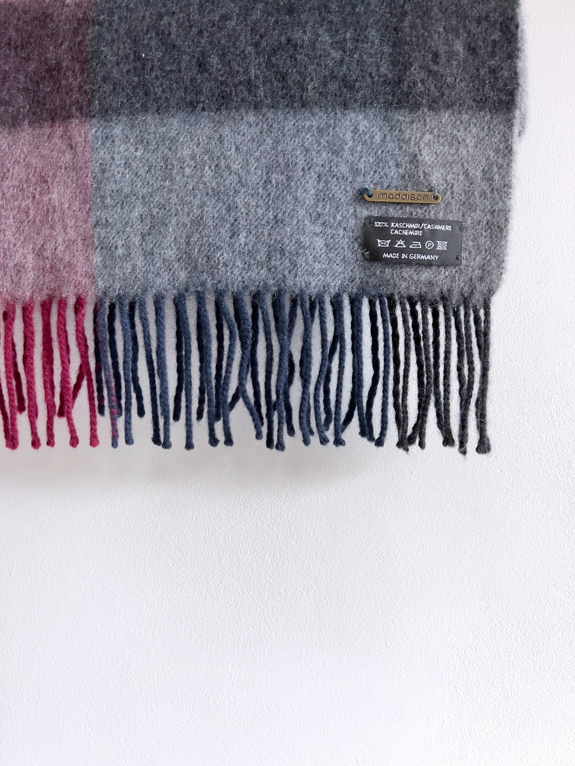 Długi kaszmirowy szalik w pastelowych kolorach. Niesamowicie miękki i puszysty. Bardzo dobry stan. Wymiary bez frędzli: 176*27 cm