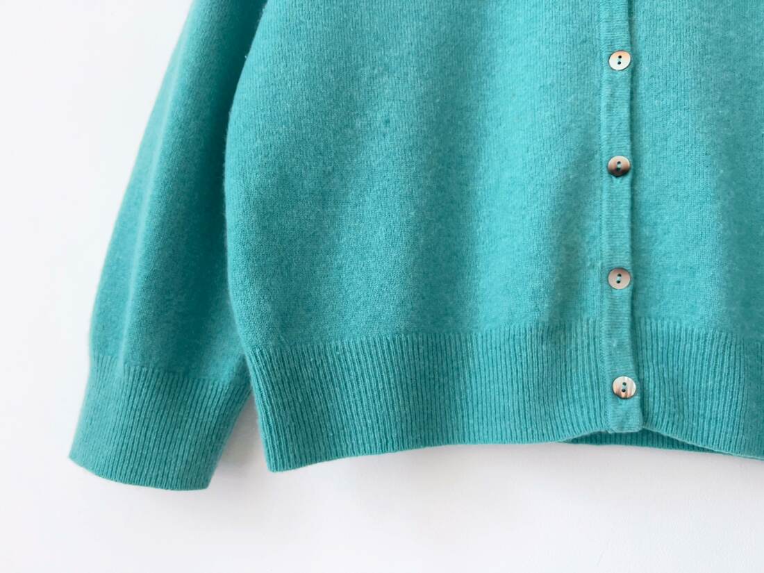 Turkusowy kardigan vintage, w 100% wykonany z kaszmiru. Krótszy fason, rękawy 3/4. Polecam na S, bardzo dobry stan.