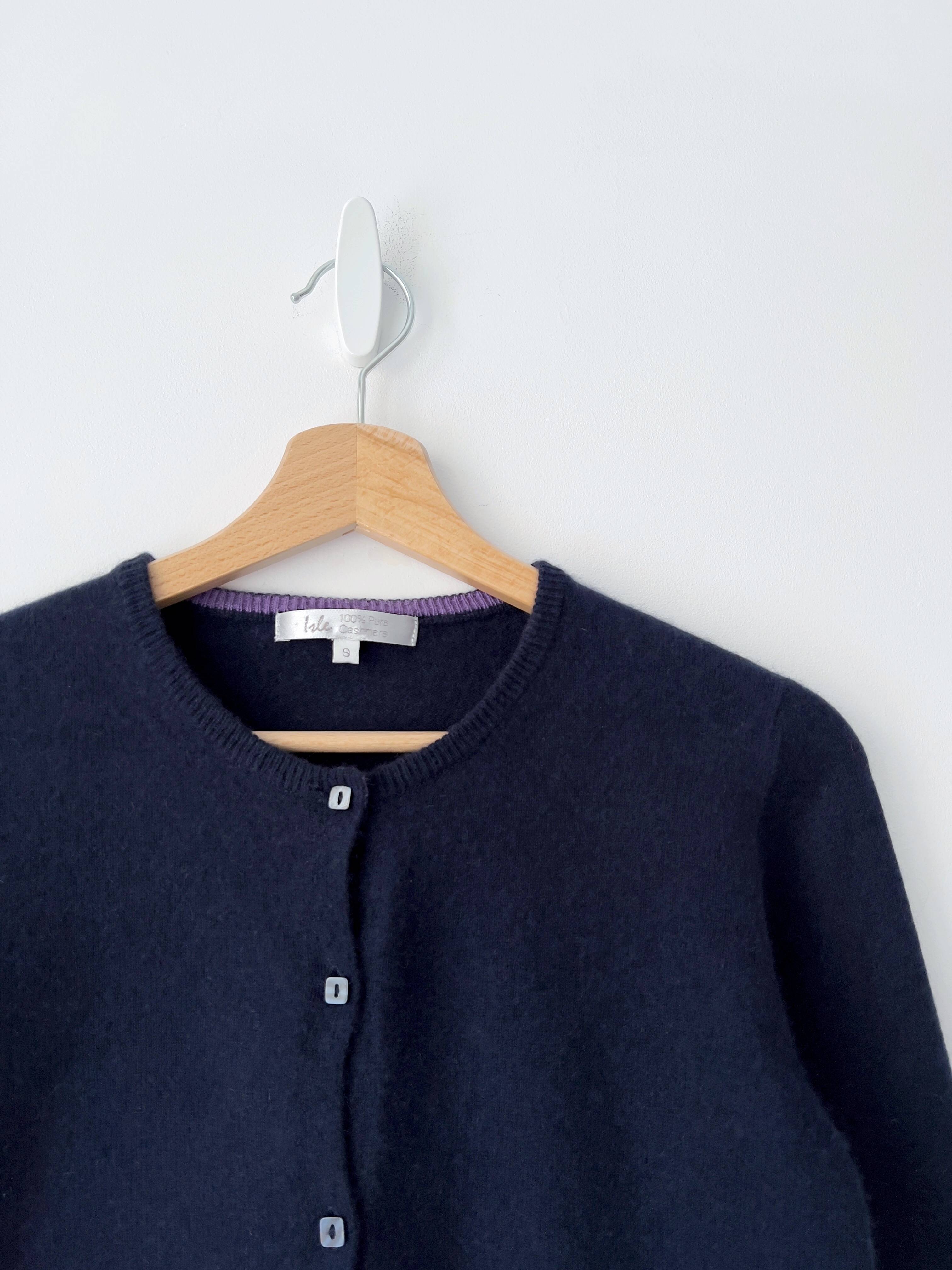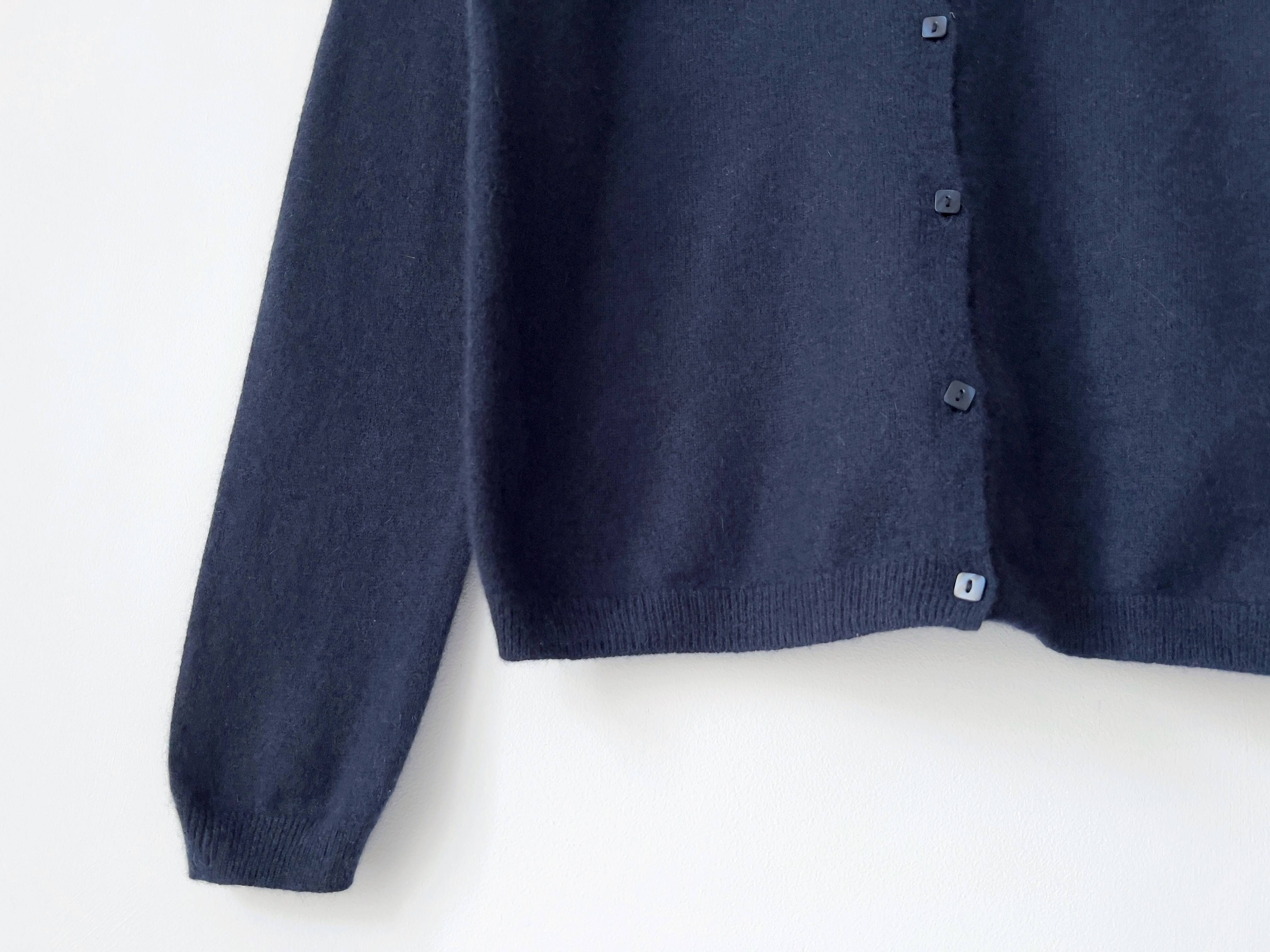 Kaszmirowy kardigan w granatowym kolorze. Polecam na XS-S, bez wad.