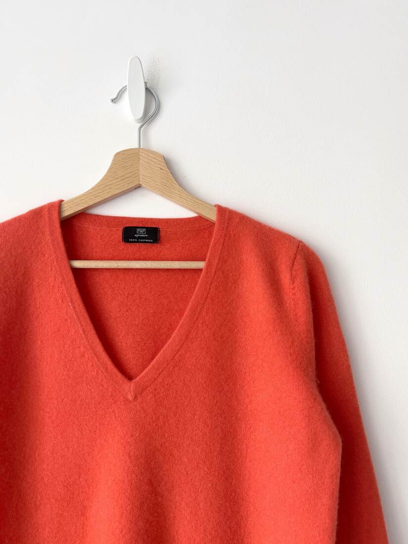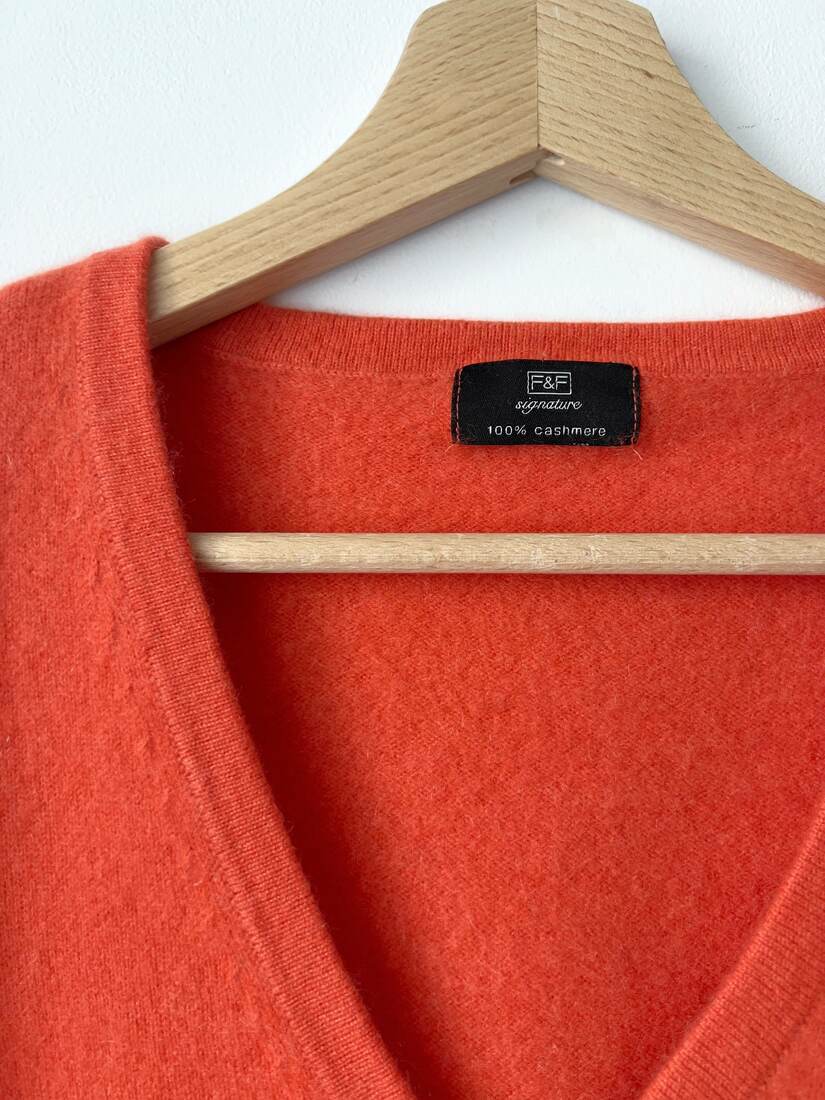 Pomarańczowy sweter z kaszmiru. Rozmiar z metki 44, bardzo dobry stan.