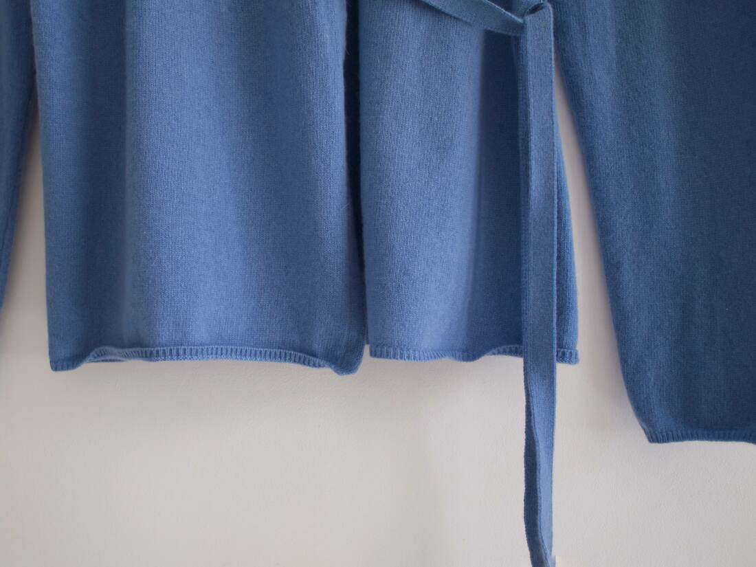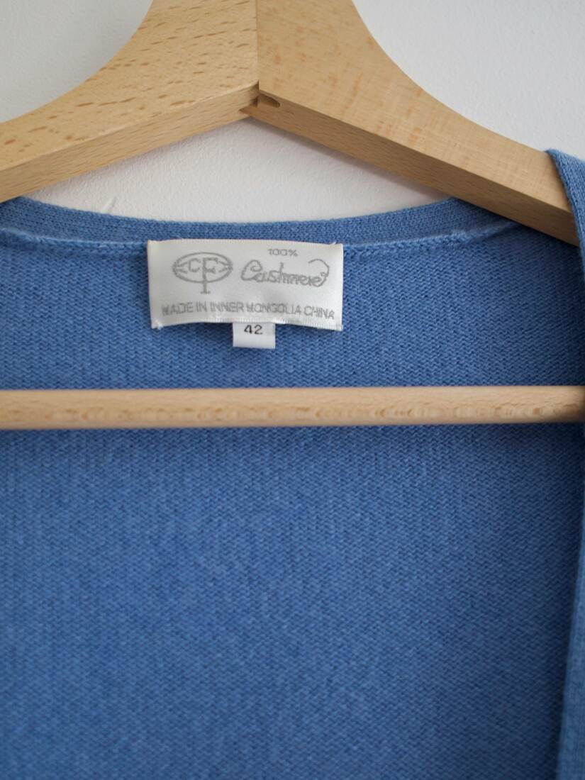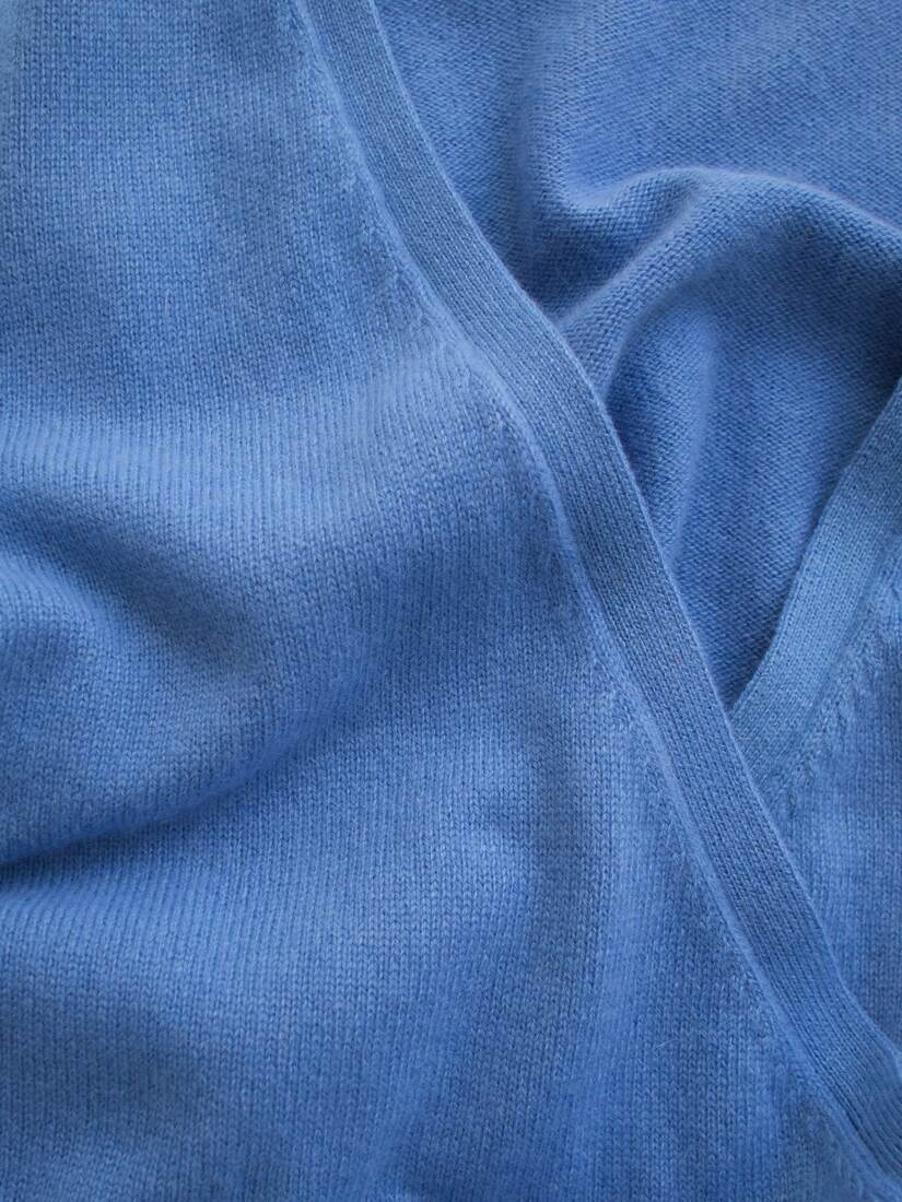 Klasyczny sweter M&S z dekoltem w serek. Skład to 100% kaszmir, bardzo dobry stan, jest minimalnie sfilcowany, nie jest to zauważalne, po prostu jest trochę sztywniejszy.