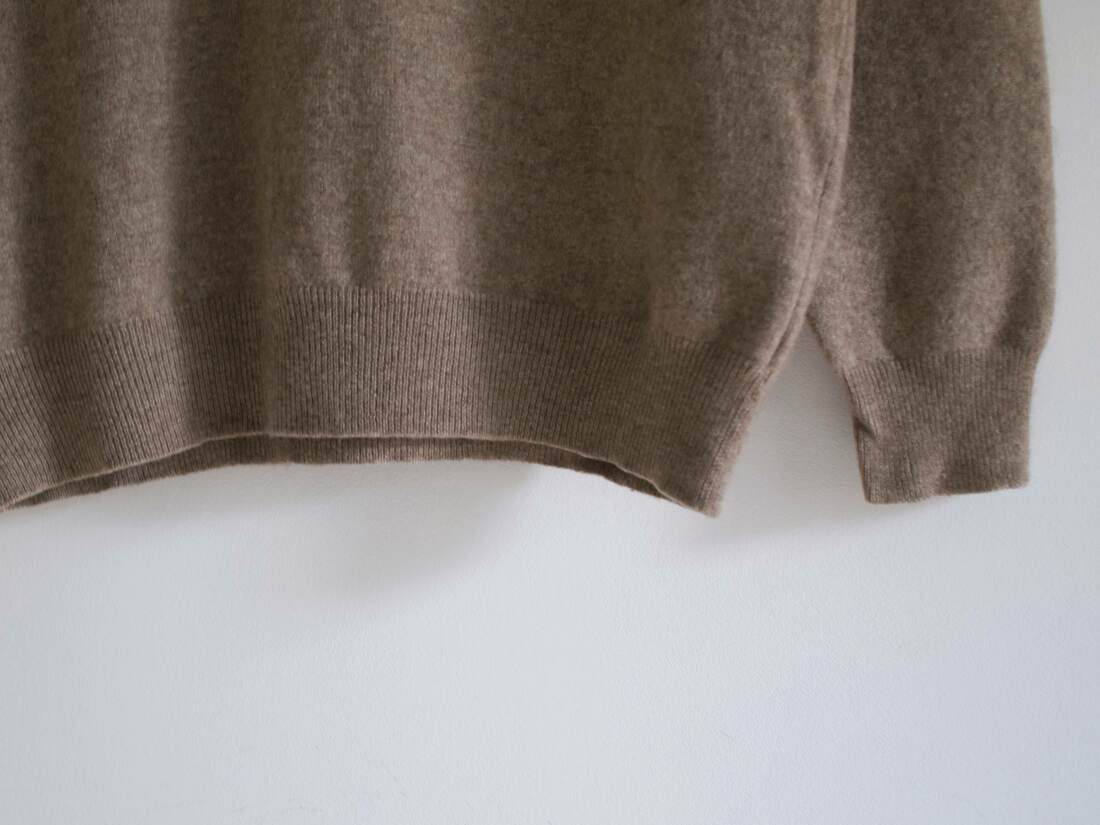 Minimalistyczny kaszmirowy sweter o pudełkowym kroju. Sweter bardzo miękki i przyjemny, ma dwie małe zacerowane dziurki, nie widoczne w noszeniu, poza tym brak mankamentów. Wymiary poniżej.