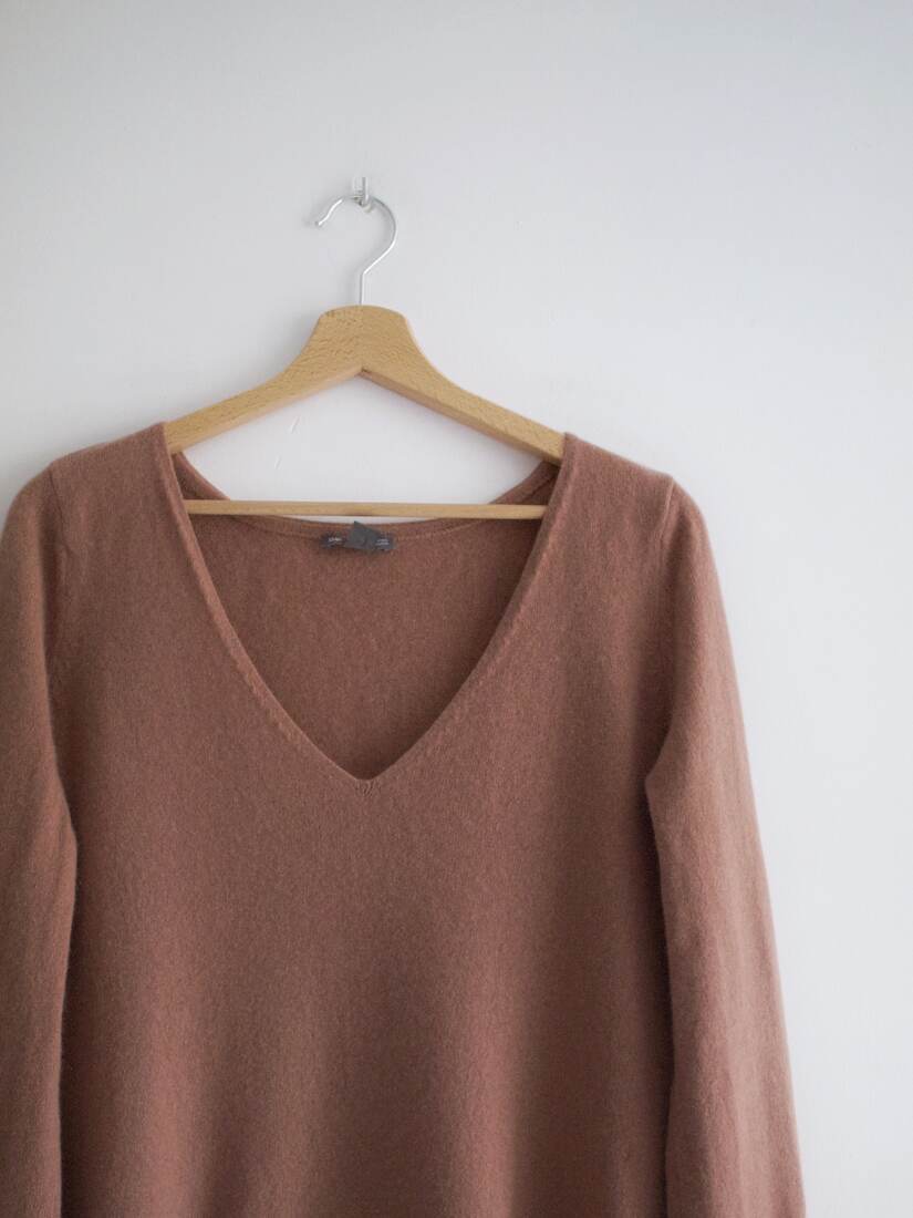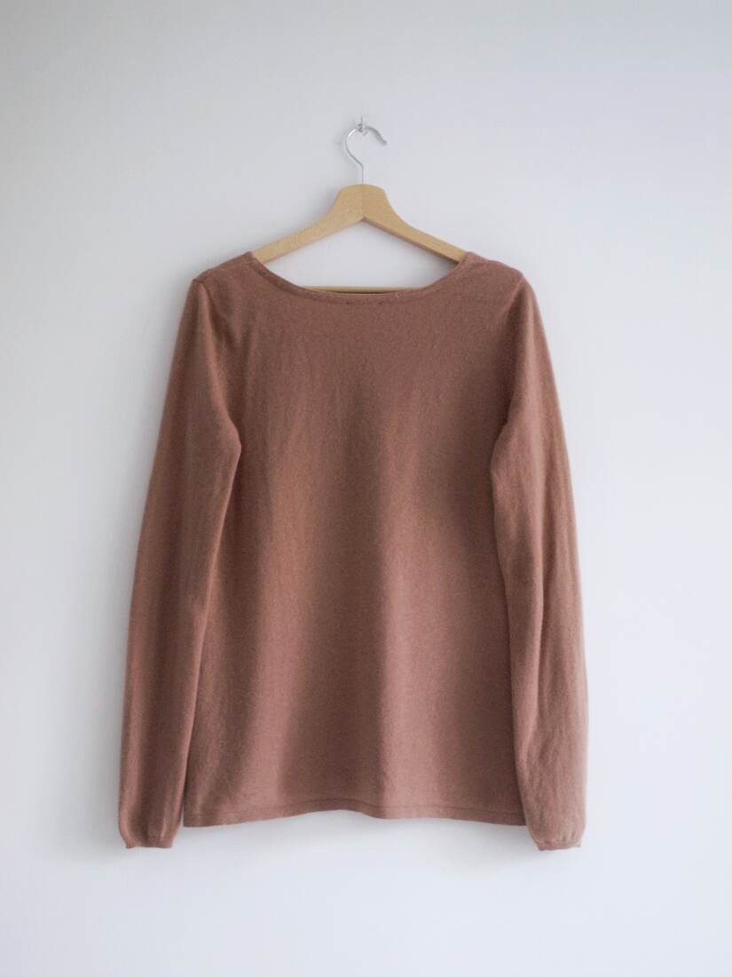 Sweter marki Gap w kolorze brudnego różu. W 100% wykonany z kaszmiru. Z tyłu ma zacerowanie, pokazane na zdjęciach, jest mało widoczne. Poza tym bez wad. Rozmiar z metki M.