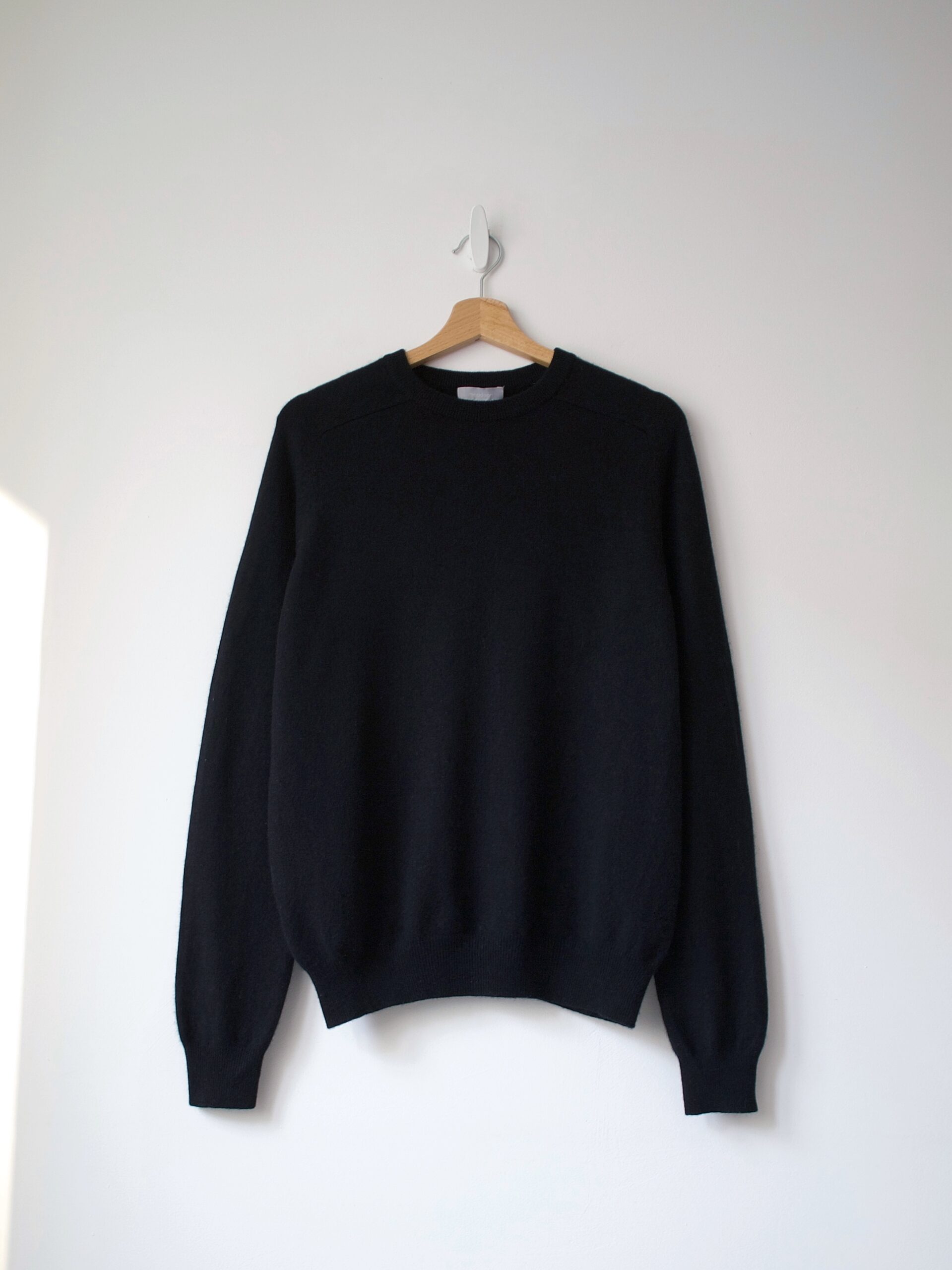 Puszysty i bardzo miły w dotyku kaszmirowy sweter. Ma małe cerowanie, absolutnie nie widoczne w noszeniu.