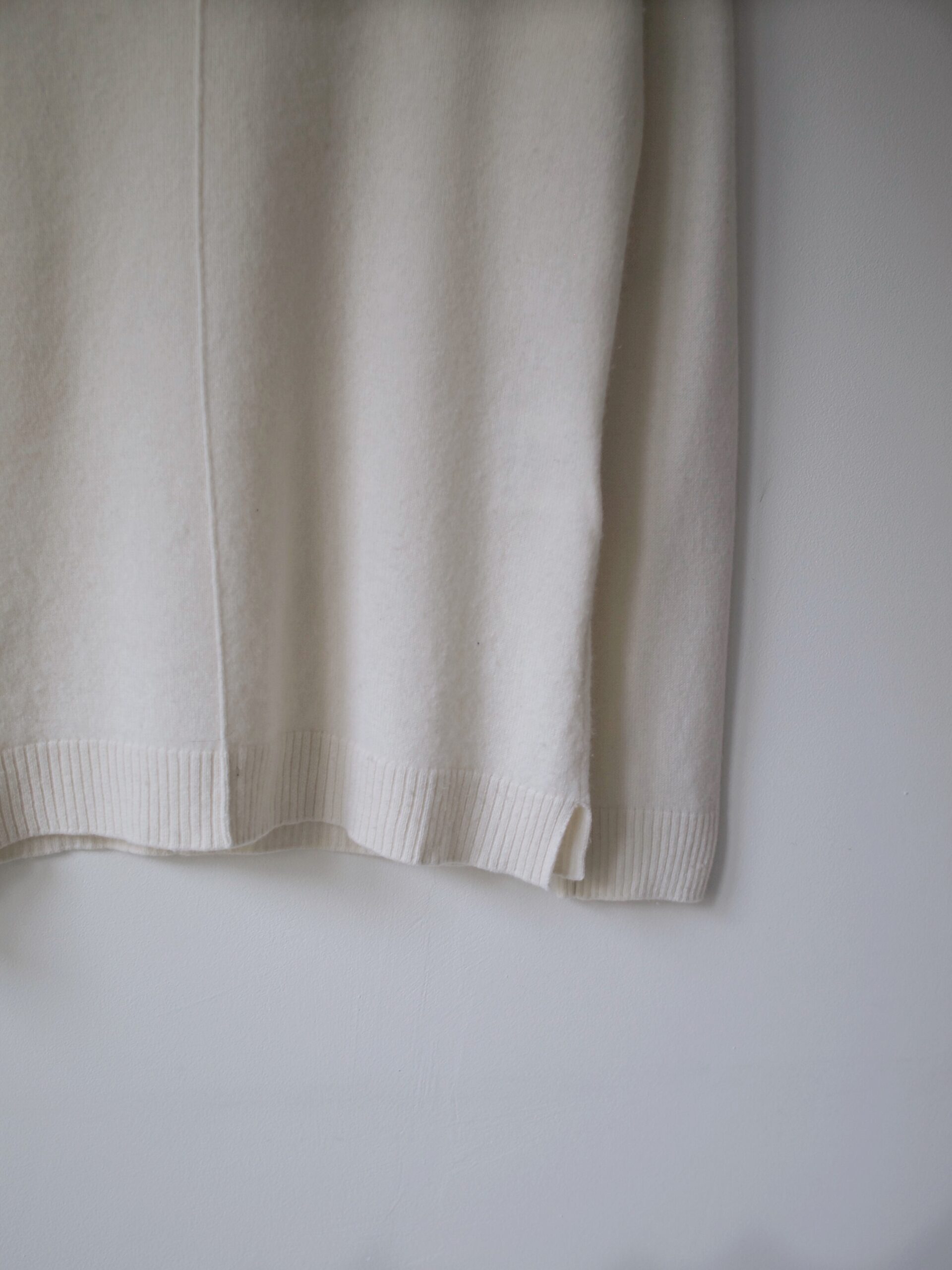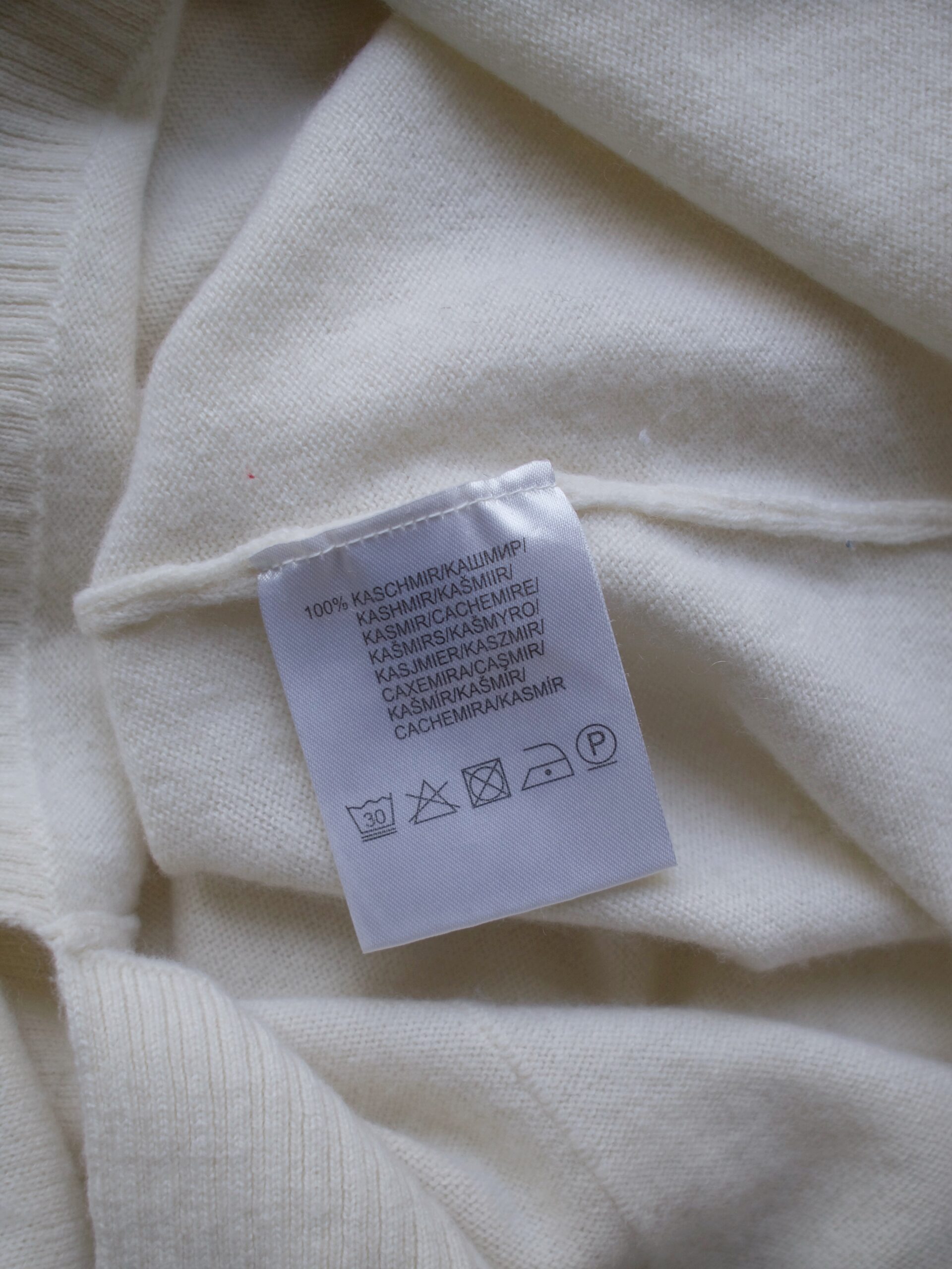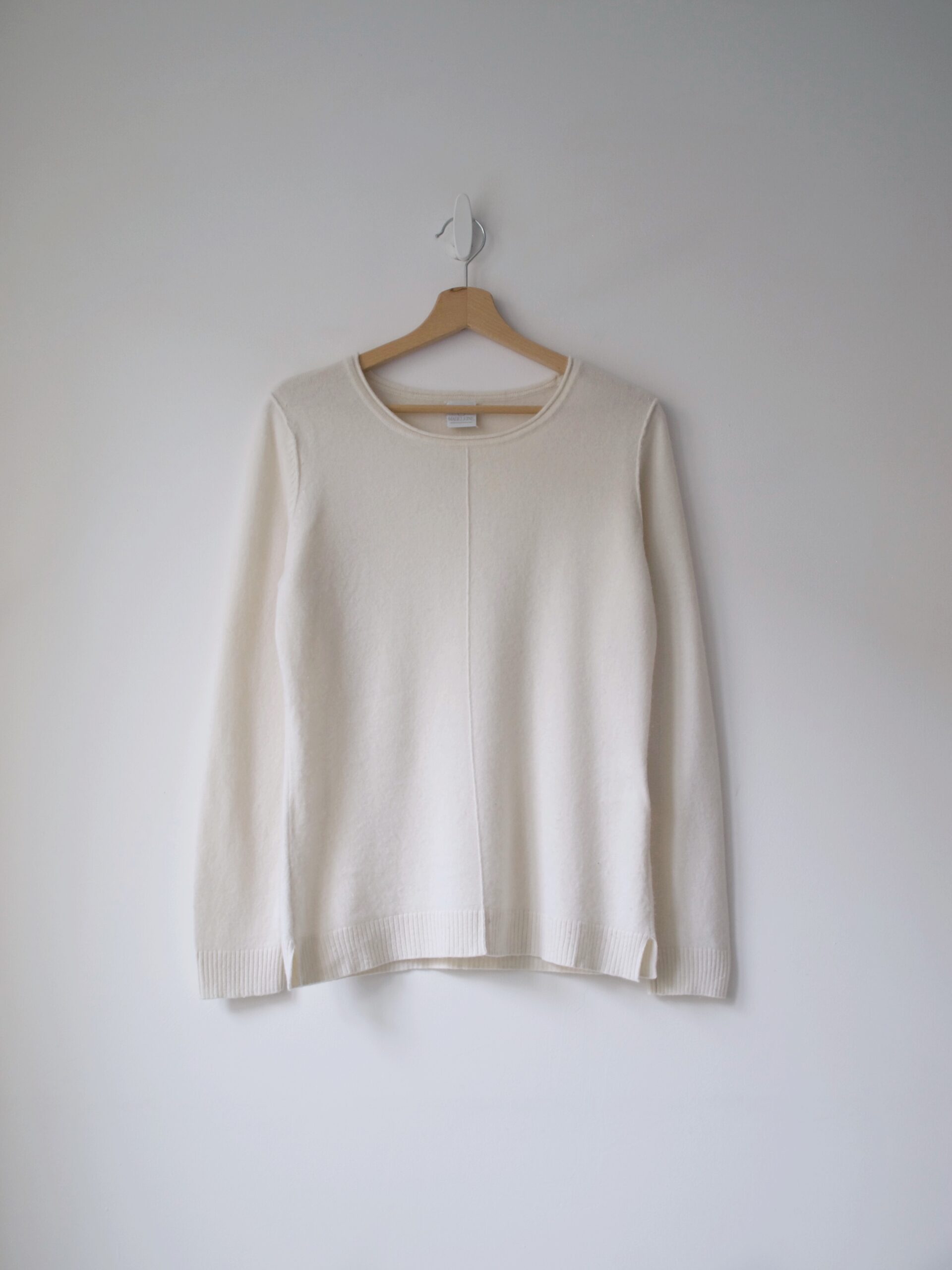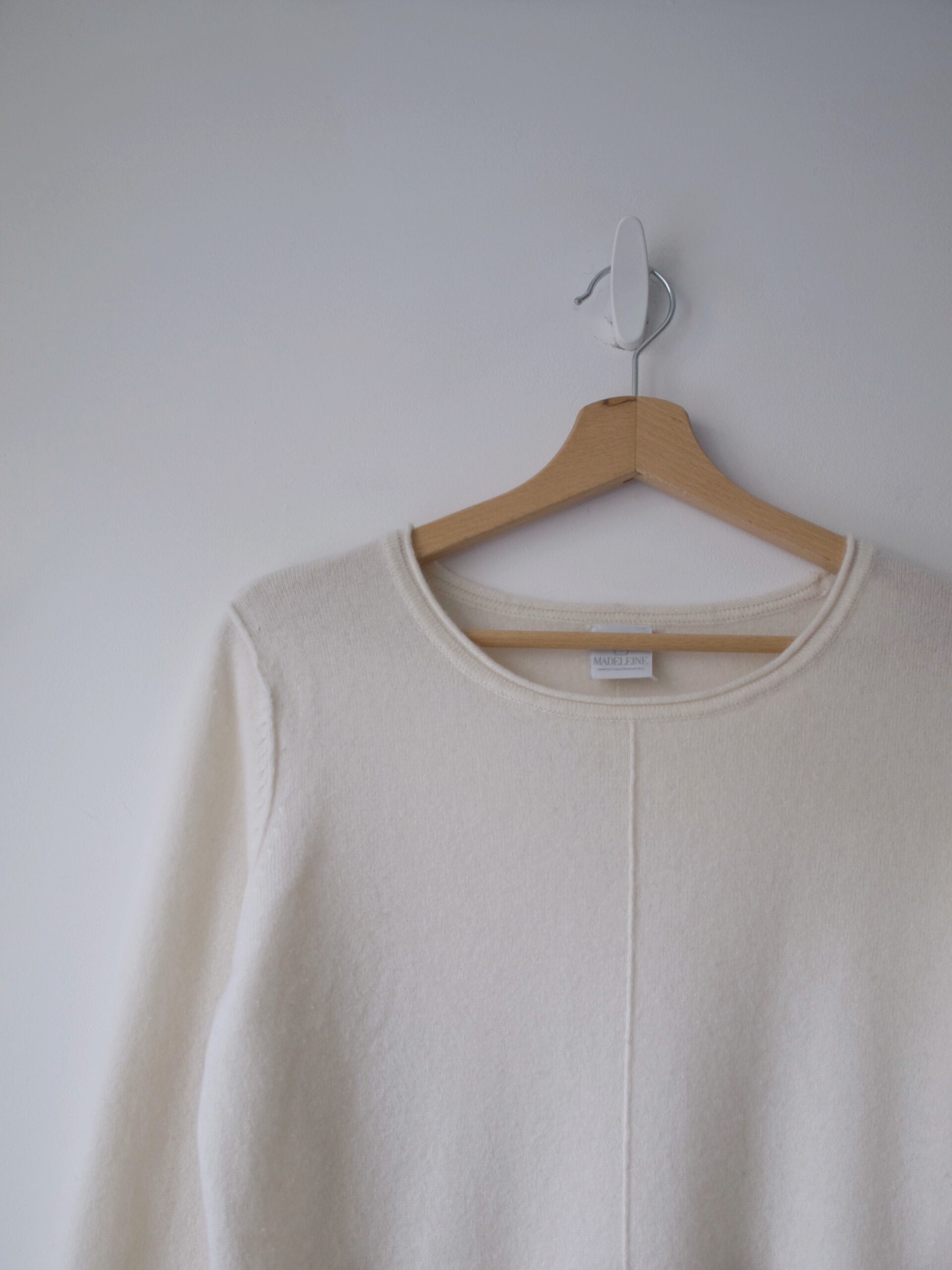 Kaszmirowy sweter niemieckiej marki Madeleine. Z tyłu przy szwie ma malutkie cerowanie, absolutnie nie widoczne w noszeniu. Poza tym bez wad.