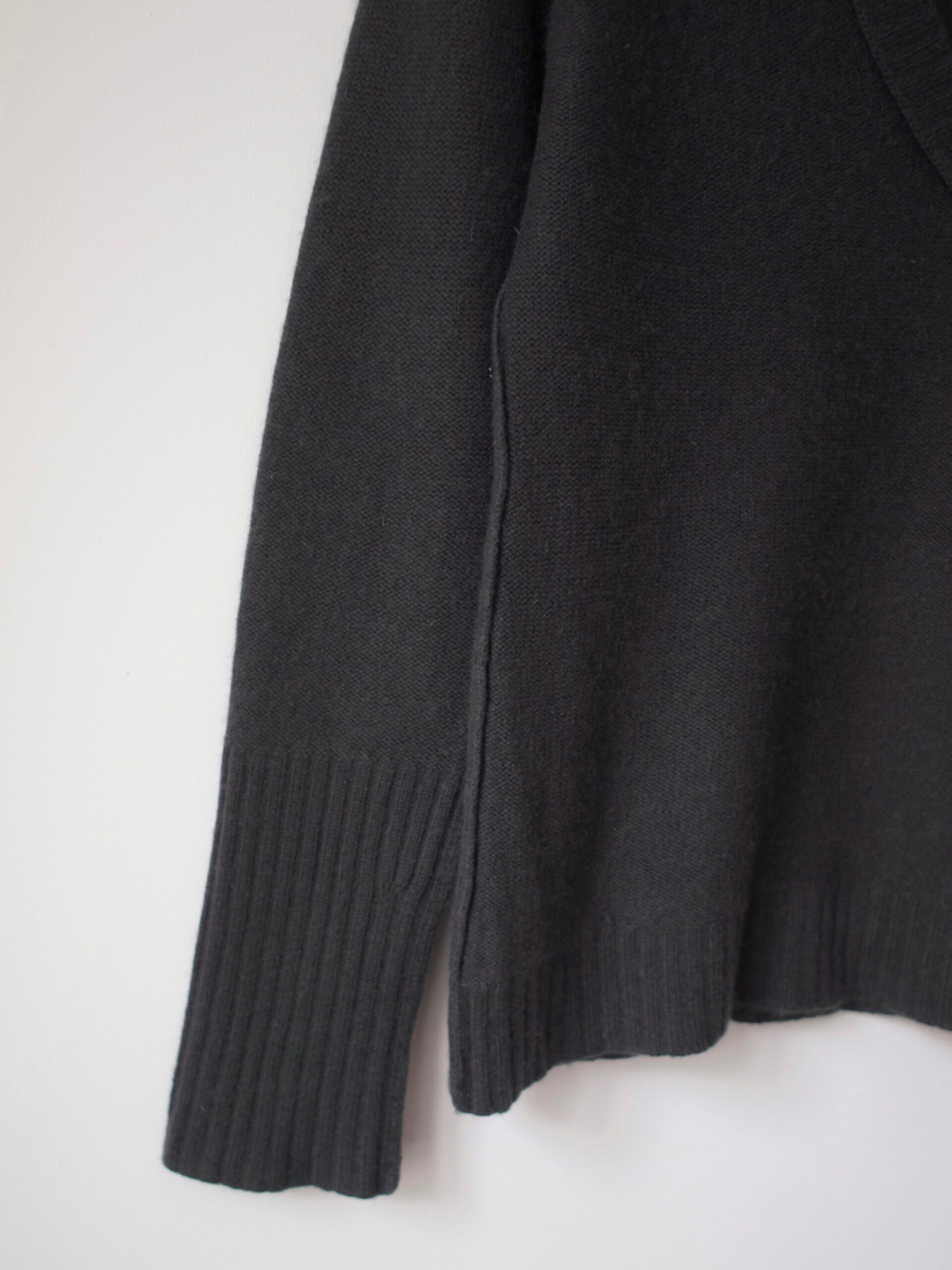 Sweter jest wykonany w 100% z wysokogatunkowej miękkiej wełny dziewiczej, made in UK. Brak etykiety z rozmiarem, ma nieco obniżone ramiona, będzie dobry na m/l, lub jako overize. Modelka ma 175 cm wzrostu. Idealny stan.
