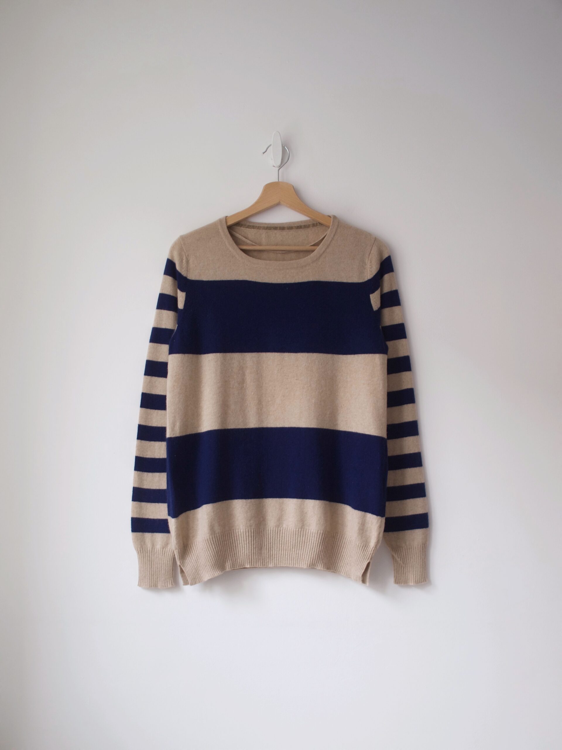 Klasyczny sweter M&S z dekoltem w serek. Skład to 100% kaszmir, bardzo dobry stan, jest minimalnie sfilcowany, nie jest to zauważalne, po prostu jest trochę sztywniejszy.