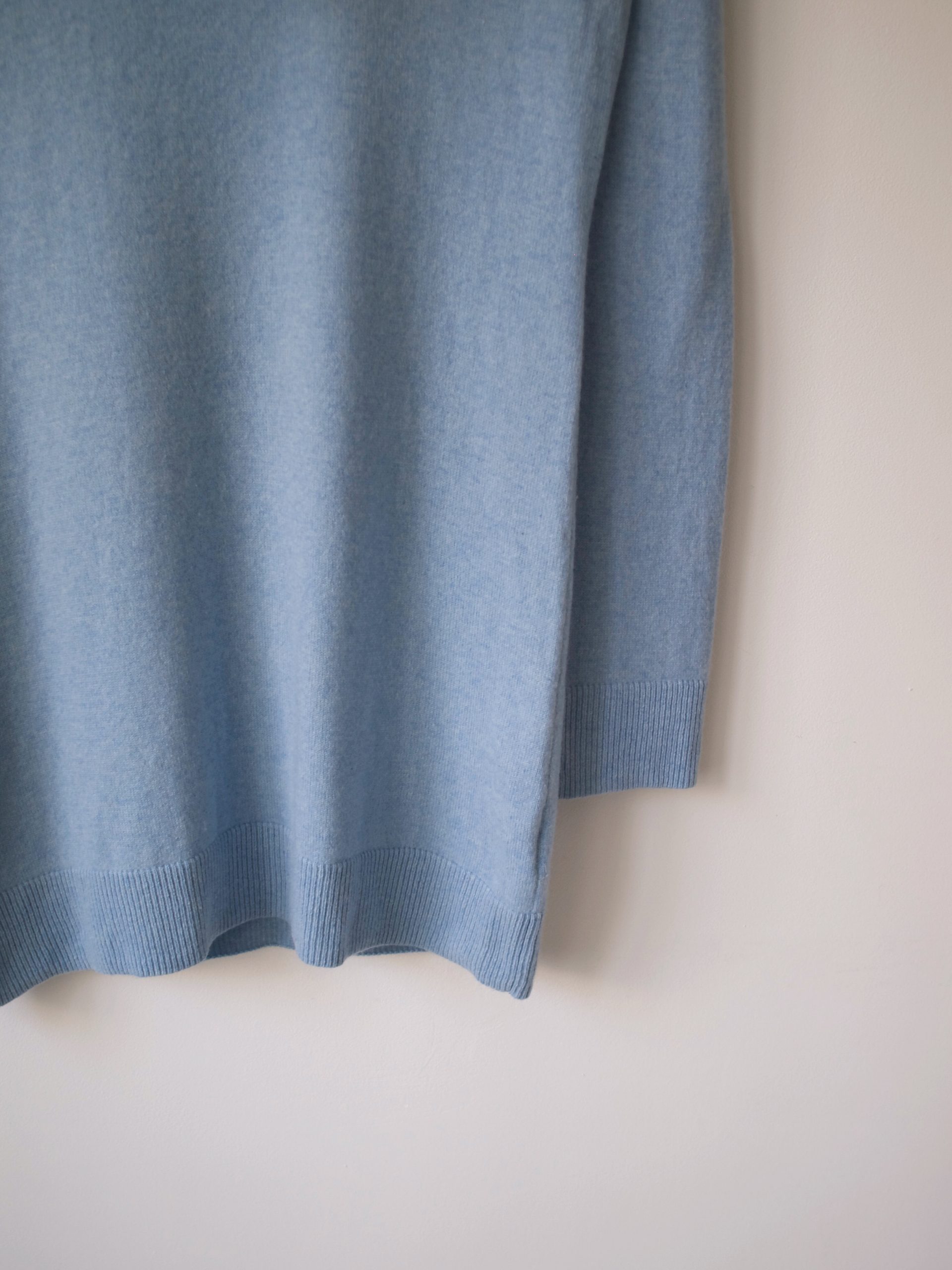 Przepiękny wełniany sweter brytyjskiej marki WoolOvers. Rewelacyjny skład 70% merino wool, 30% kaszmir, jest miękki i milutki w dotyku. Rękawy i dół wykończone dłuższym ściągaczem. Rozmiar z metki S, idealny stan.