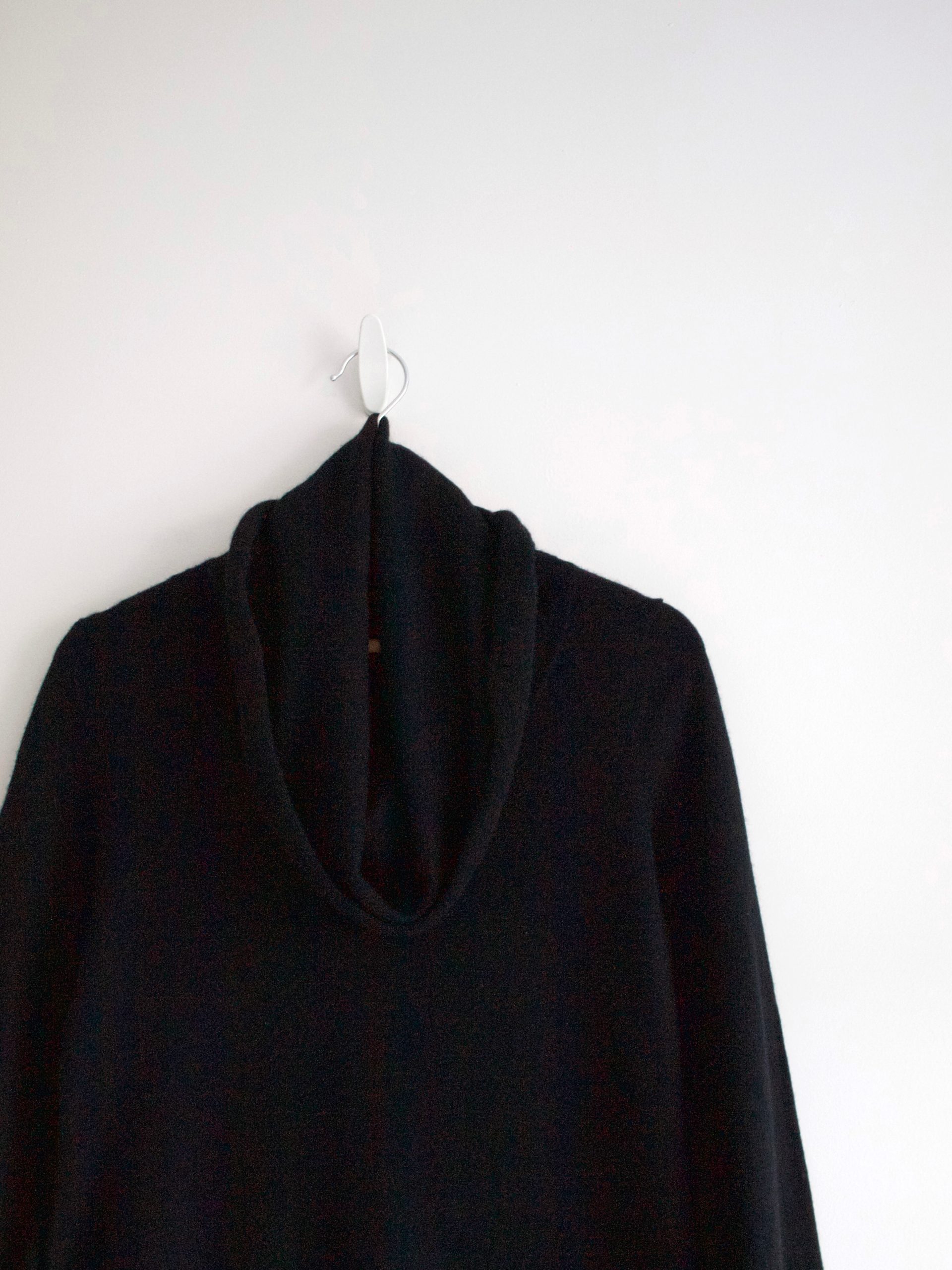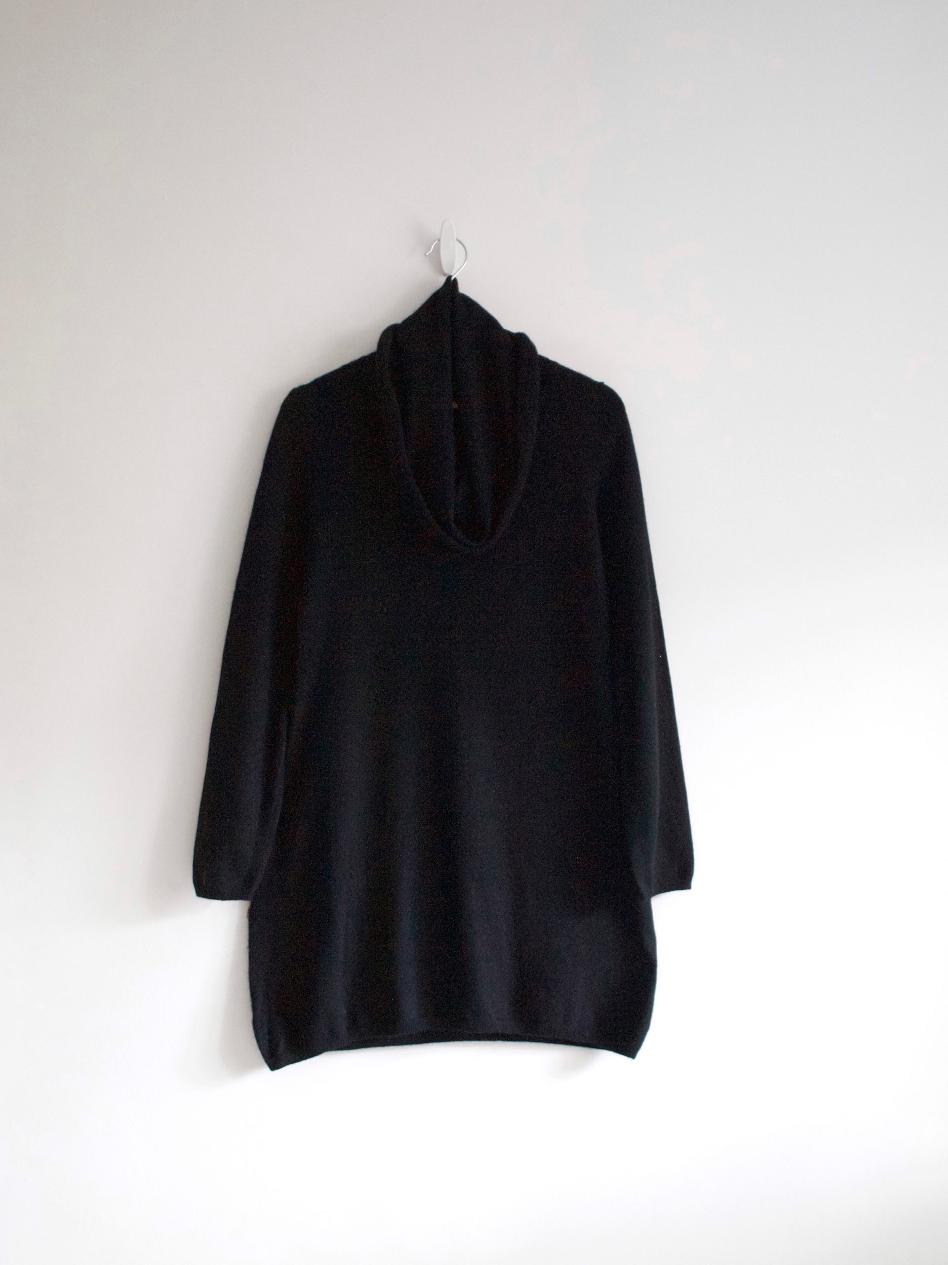 Kaszmirowa sukienka z dużym golfem. Rozmiar z metki: brak Skład: 100% kaszmir Stan: bez wad Szerokość w ramionach 34 cm Szerokość w klatce 44 cm Szerokość w pasie 41 cm Długośćcałkowita 81 cm