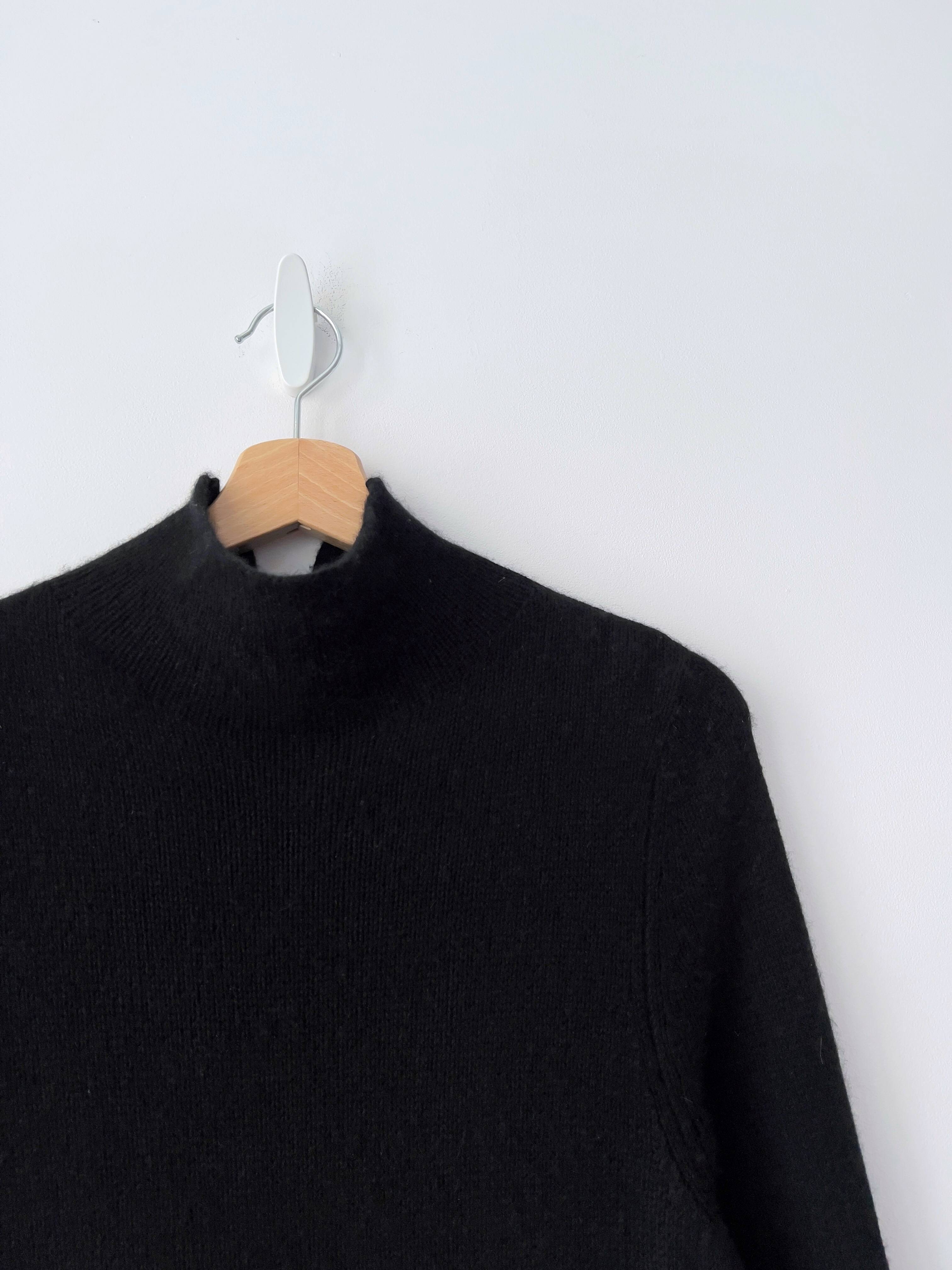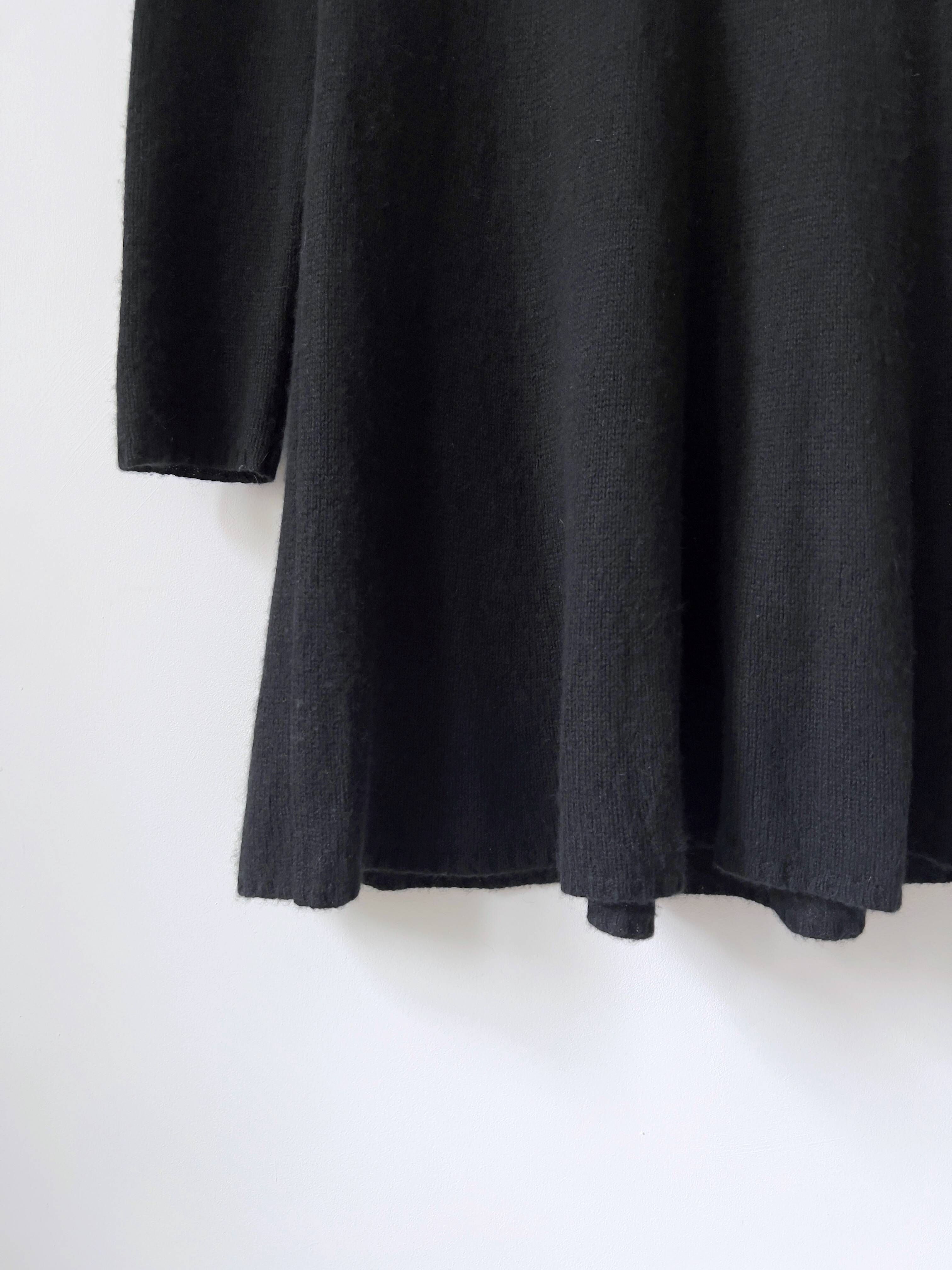 Kaszmirowa sukienka vintage o długości midi. Kołnierz stójka z tyłu zapina się na guziki. Brak metki z rozmiarem, polecam na XS-S, możliwie mniejsze M. Bez wad.