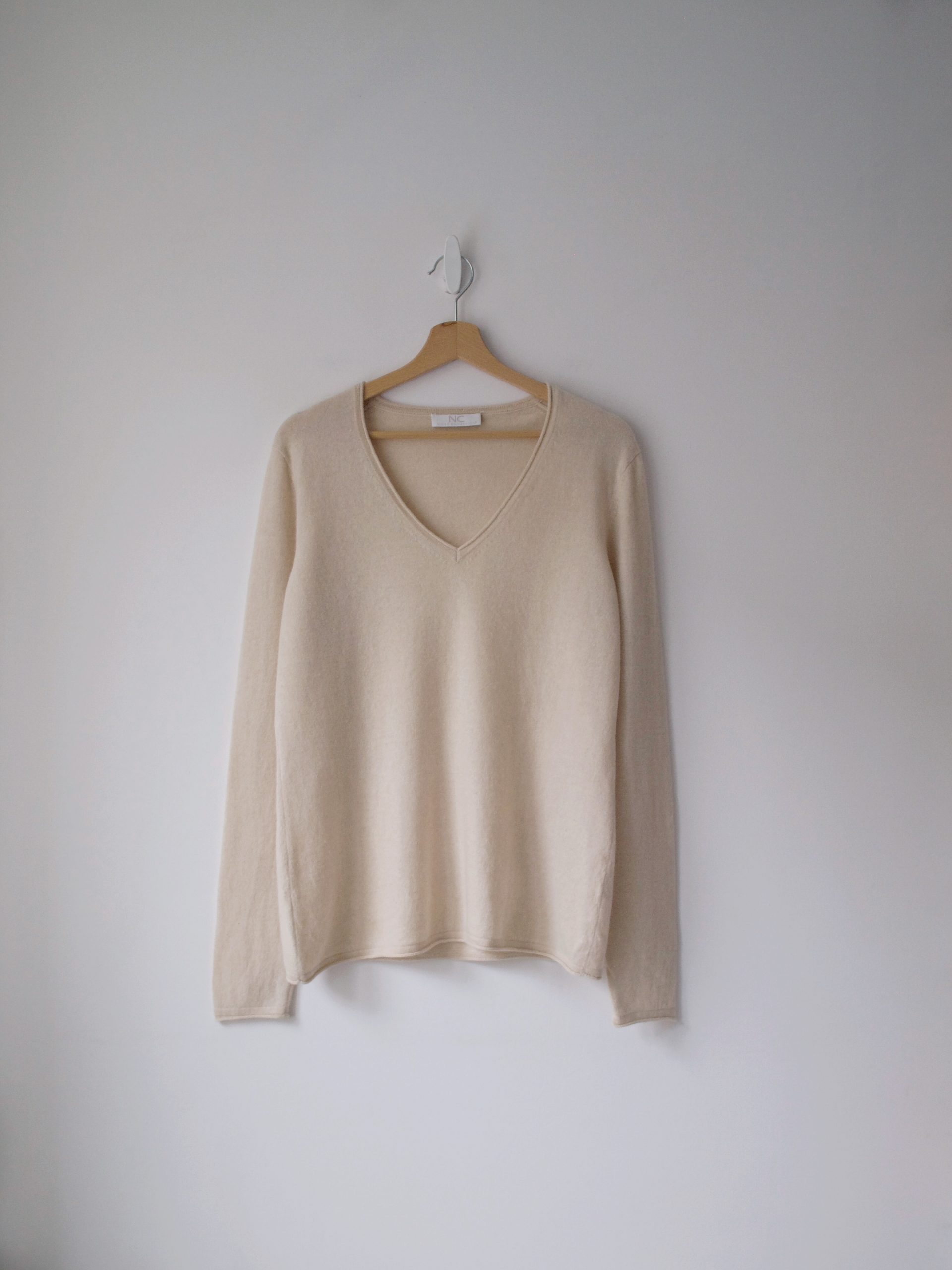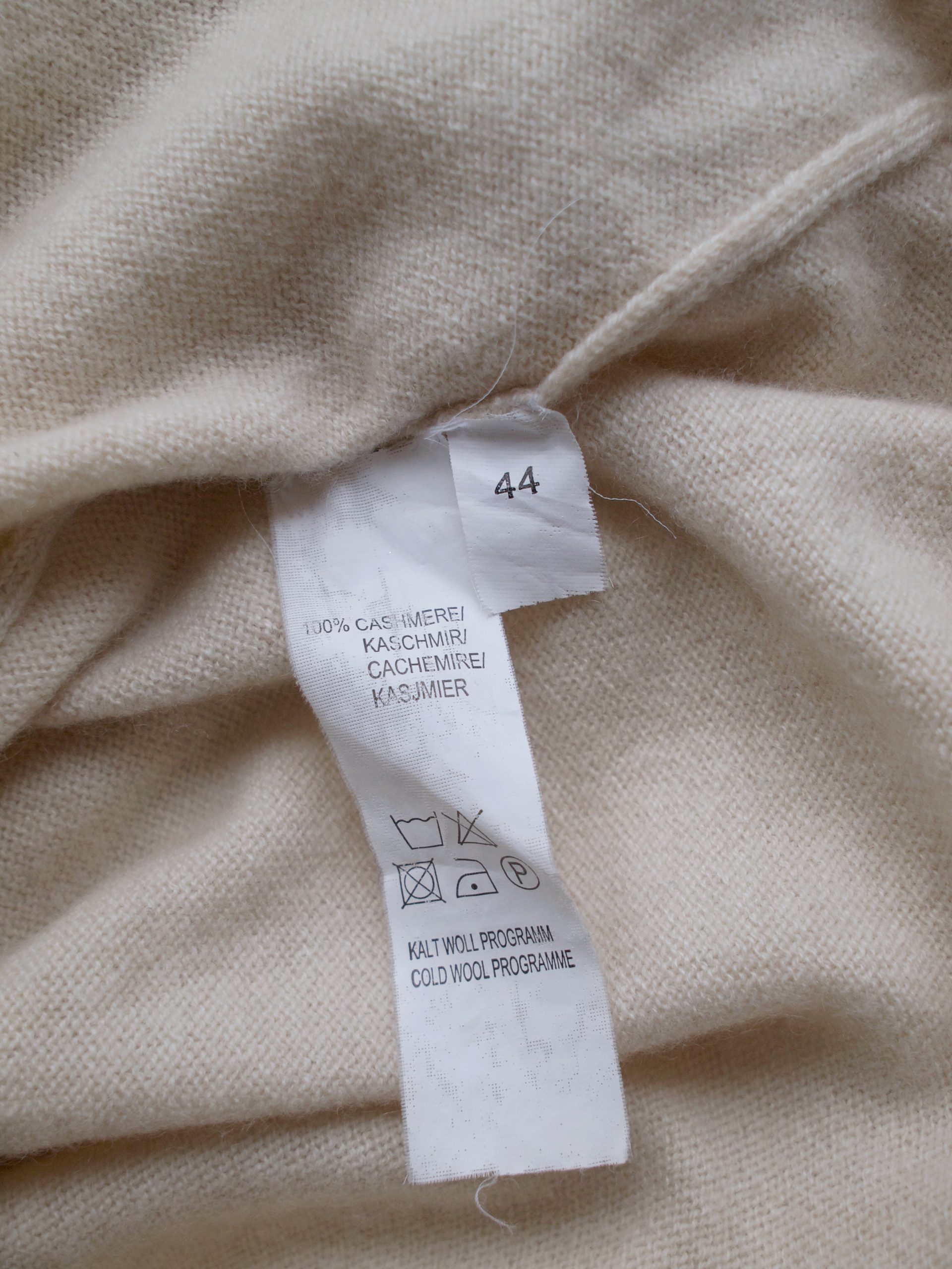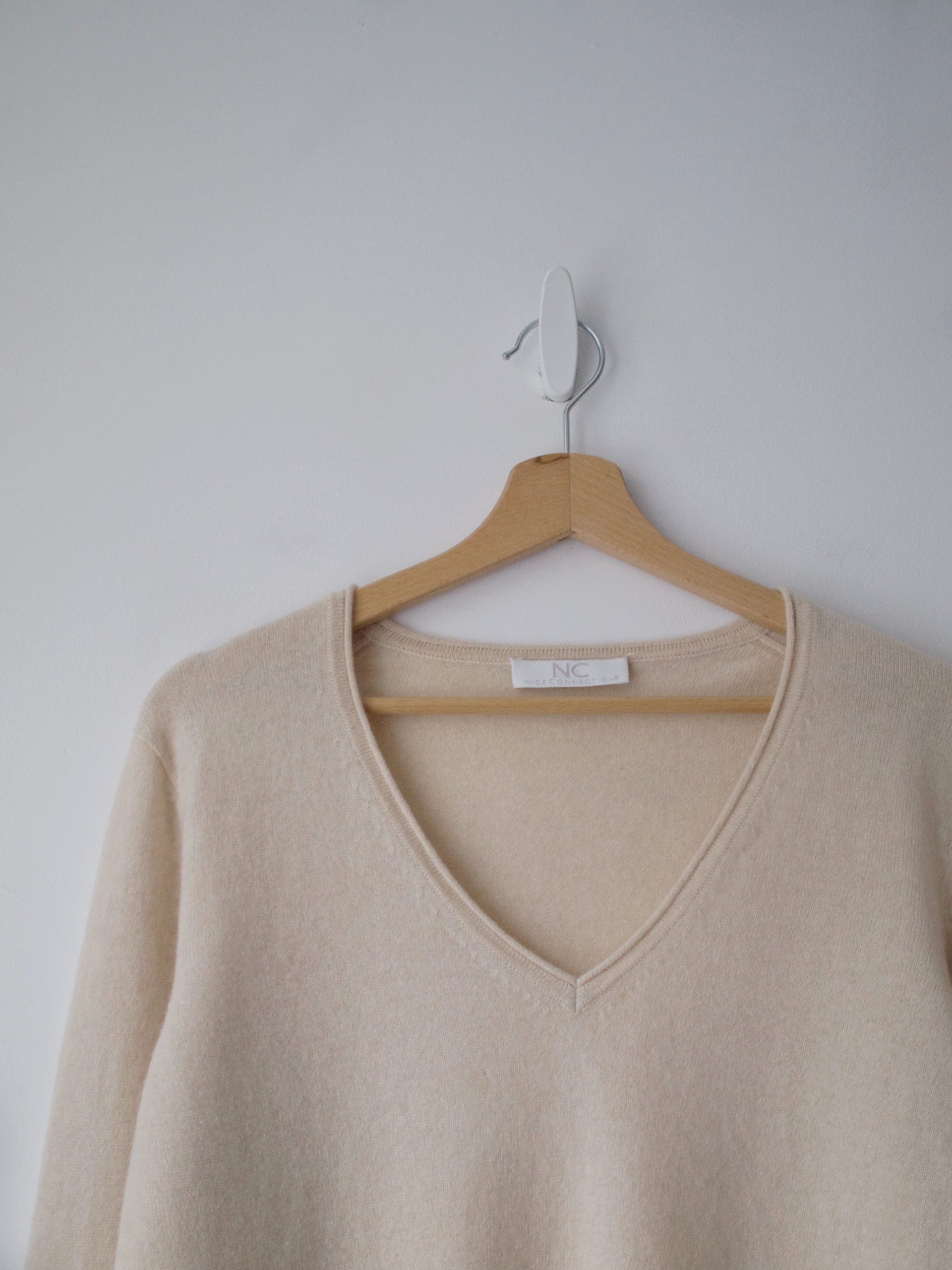 Beżowy sweter vintage, w 100% wykonany z mięciutkiego kaszmiru. Rozmiar z metki: 44 Skład: 100% kaszmir Stan: bez wad Szerokość w klatce 52 cm Długośćcałkowita 66 cm