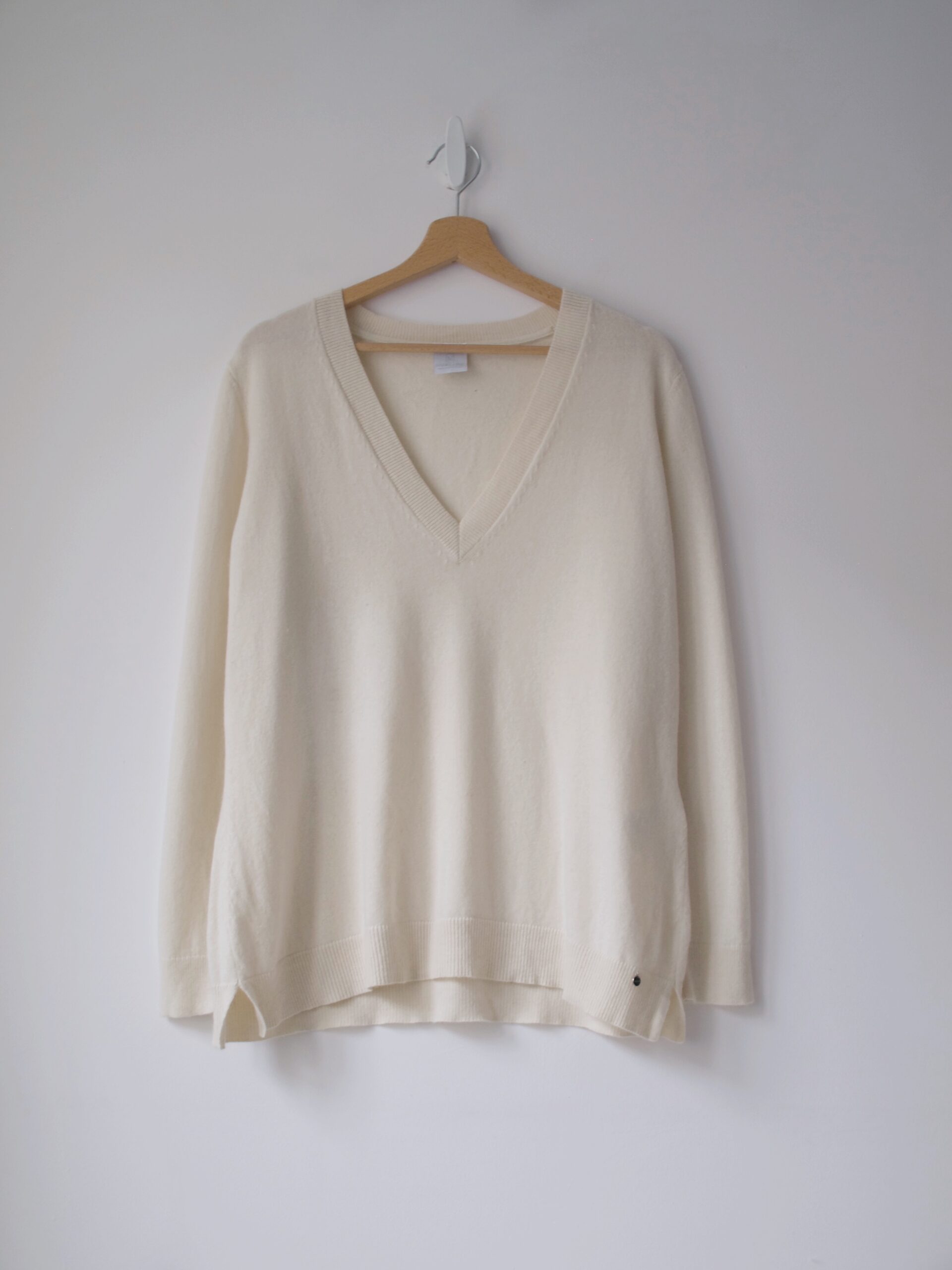 Przepiękny wełniany sweter brytyjskiej marki WoolOvers. Rewelacyjny skład 70% merino wool, 30% kaszmir, jest miękki i milutki w dotyku. Rękawy i dół wykończone dłuższym ściągaczem. Rozmiar z metki S, idealny stan.