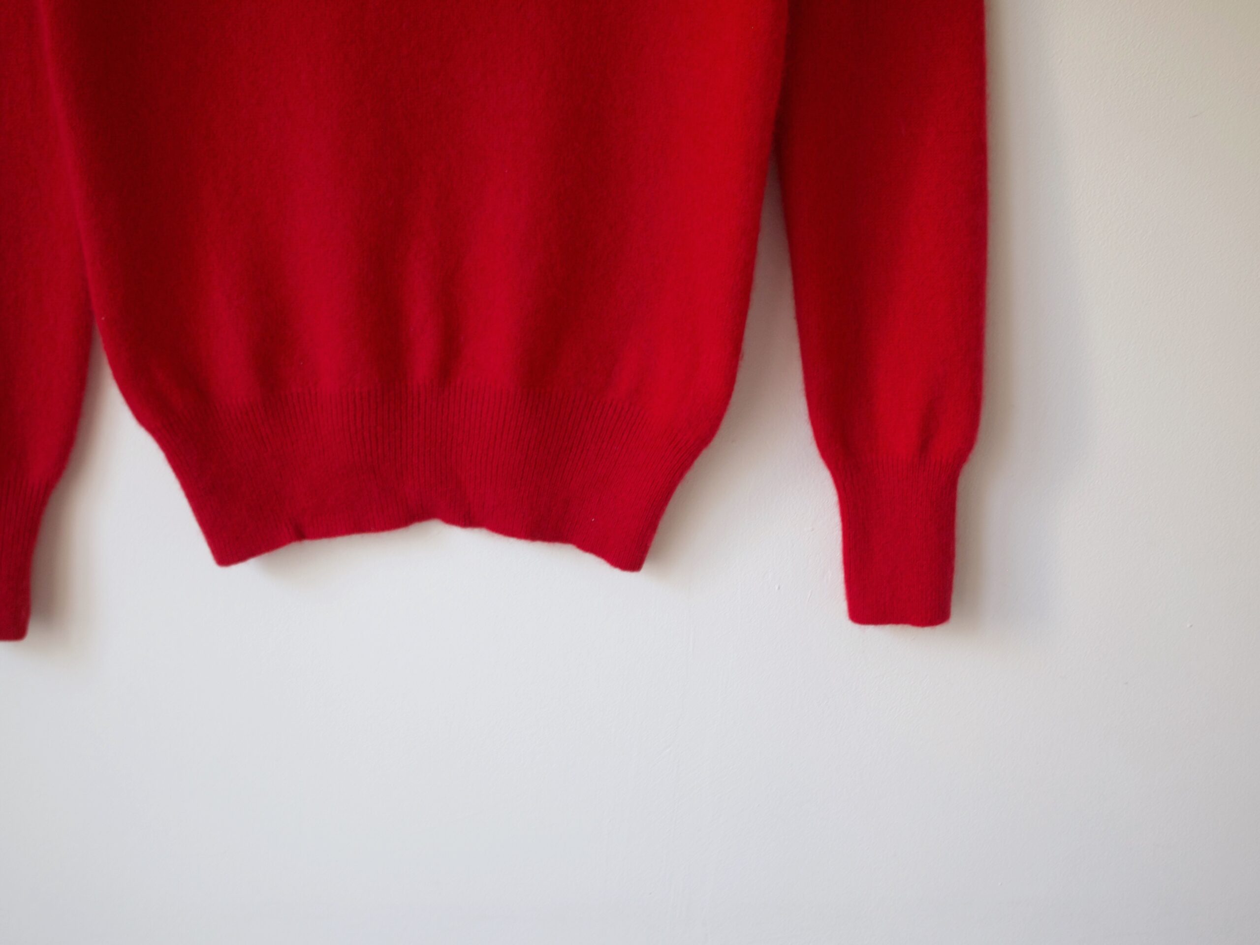 Rozmiar: xs-s Skład: 100% kaszmir Stan: ma milimetrowe cerowanie, pokazane na ostatnim zdjęciu, niewidoczne Szerokość w klatce 38 cm Długośćcałkowita 58 cm