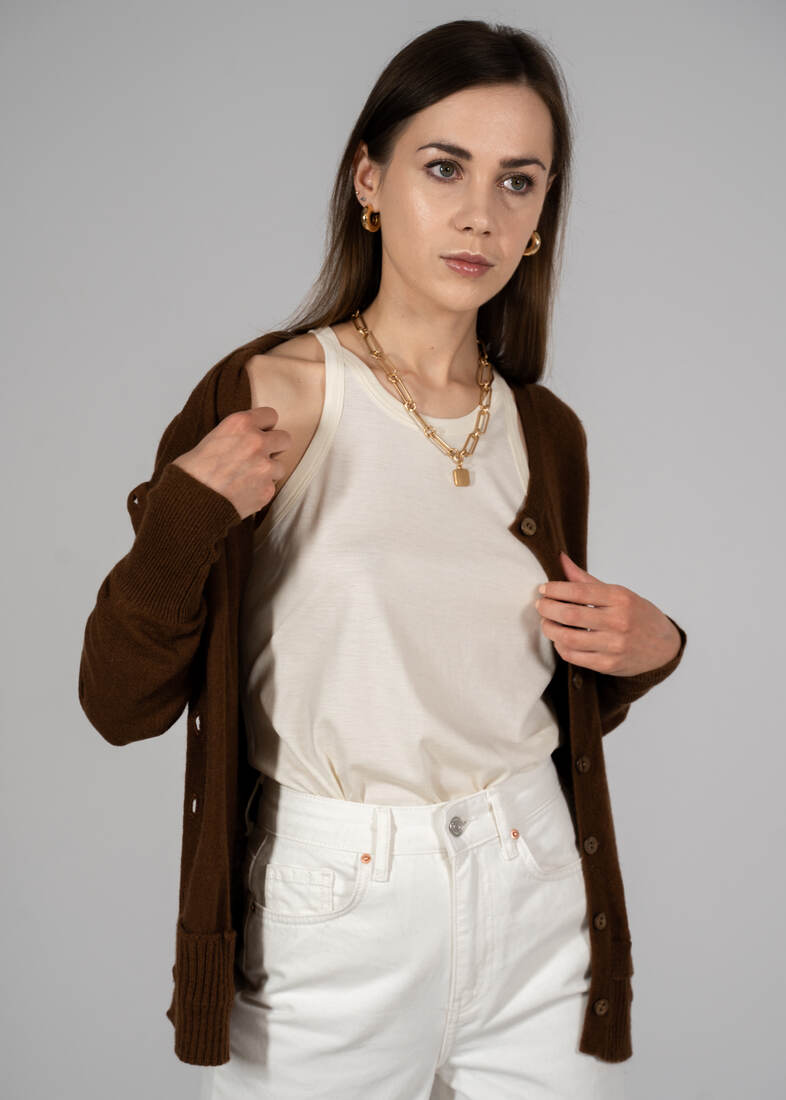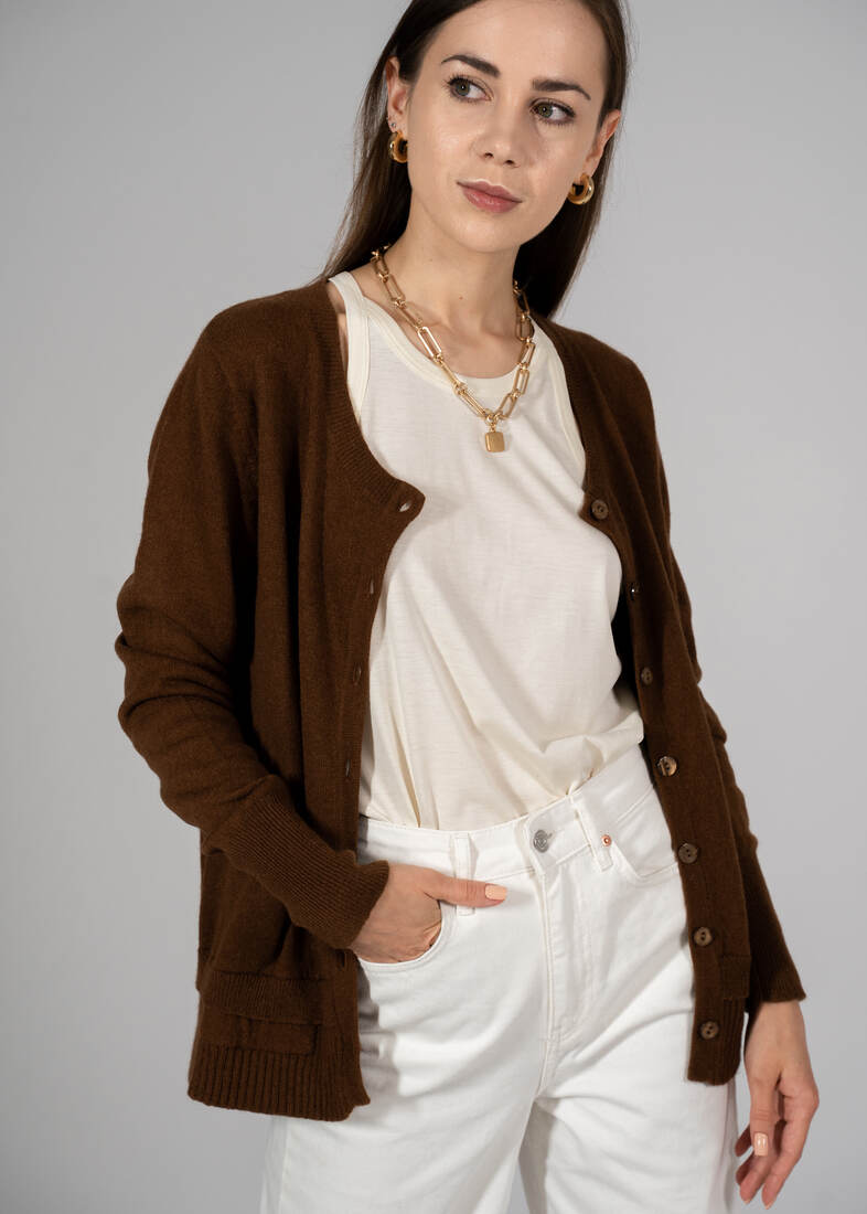 Kardigan ekskluzywnej niemieckiej marki Riani, w 100% wykonany z kaszmiru. Cena katalogowa ok. 300 euro. Rozmiar z metki 42, moim zdaniem będzie zbyt dopasowany, polecam na mniejsze. Bez wad.