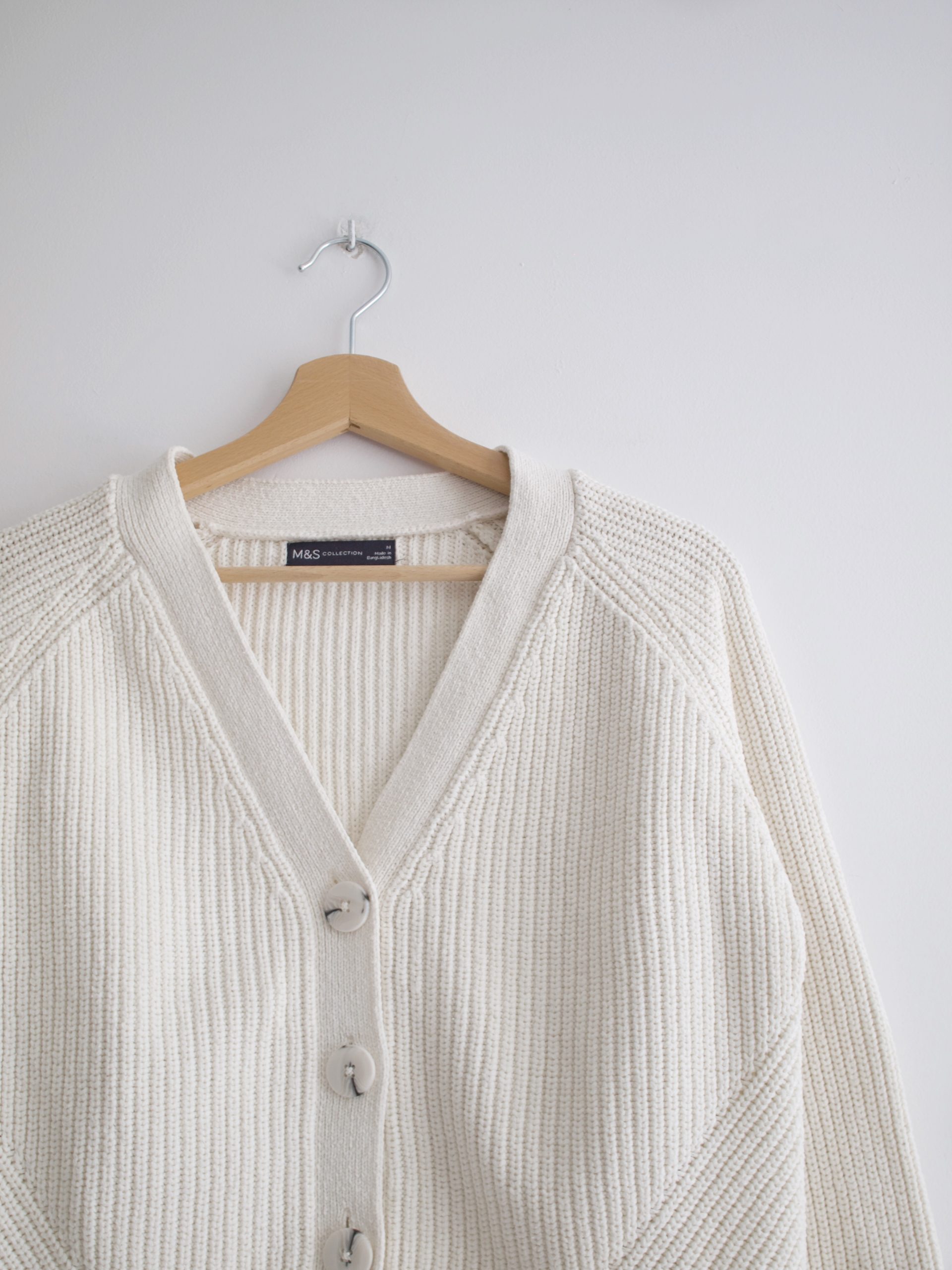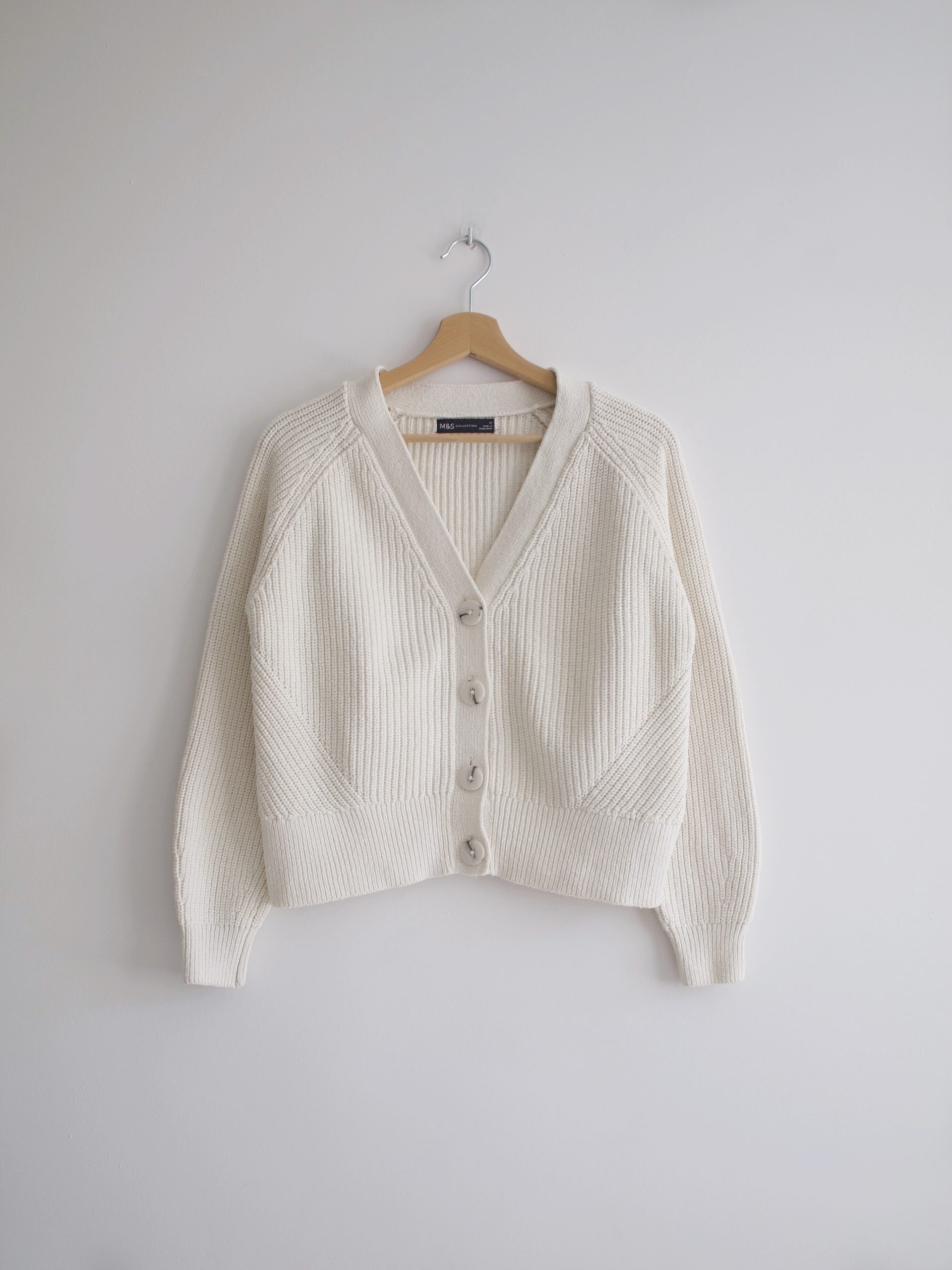 Sweter jest wykonany w 100% z wysokogatunkowej miękkiej wełny dziewiczej, made in UK. Brak etykiety z rozmiarem, ma nieco obniżone ramiona, będzie dobry na m/l, lub jako overize. Modelka ma 175 cm wzrostu. Idealny stan.
