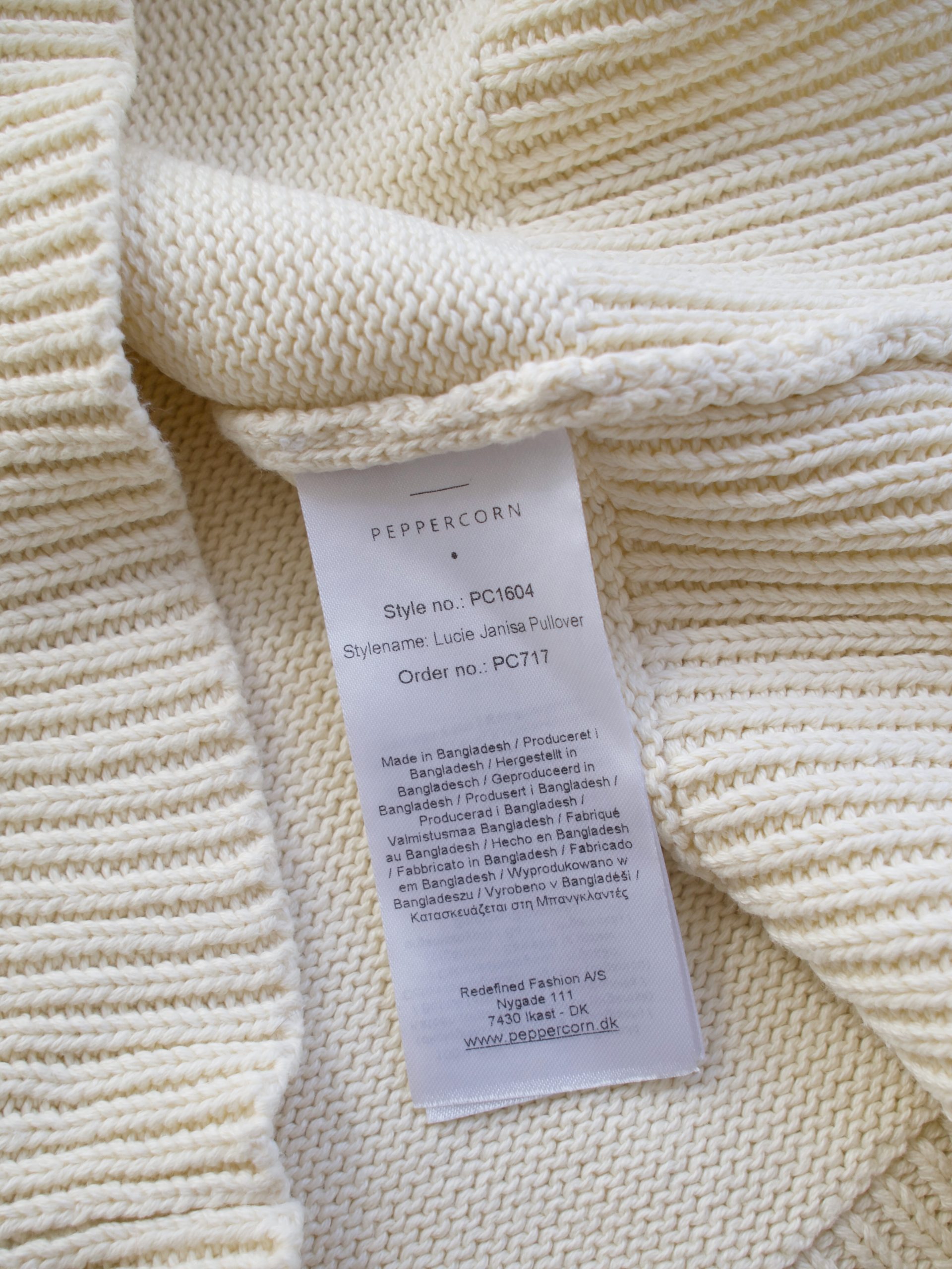 Sweter duńskiej marki Peppercorn. Rozmiar z metki: L Skład: 100% bawełna Stan: bez wad Szerokość w klatce 55 cm Długość całkowita 57 cm