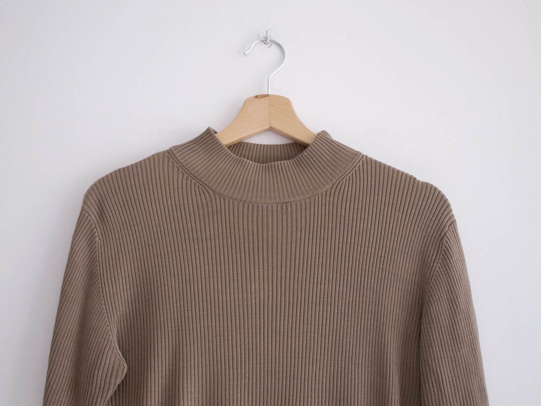 Półgolf vintage, w 100% wykonany z jedwabiu. Rozmiar z metki L, może być zbyt dopasowany, więc polecam na mniejsze. Bardzo dobry stan.