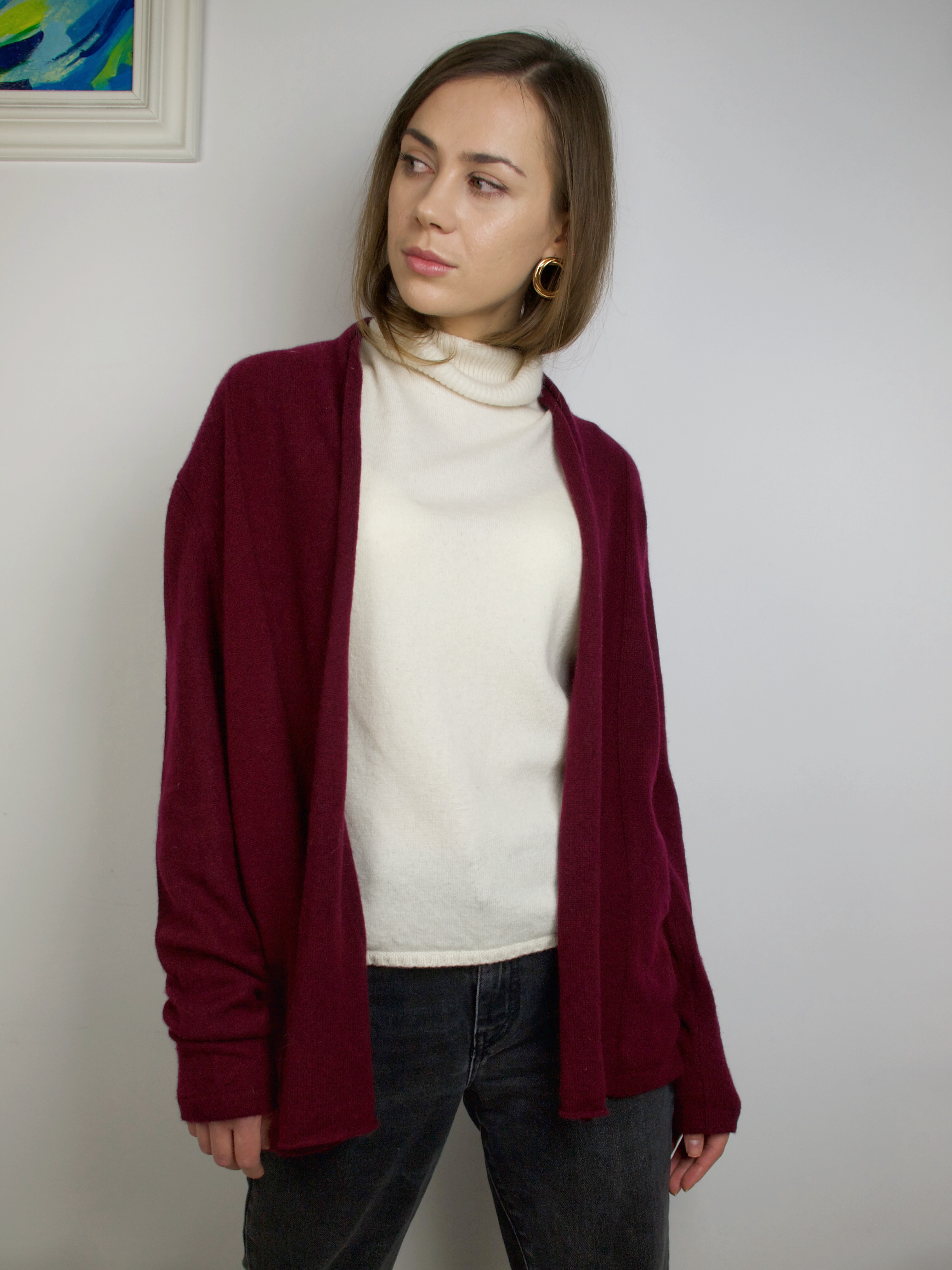 Minimalistyczny wełniany sweter z golfem. Idealny stan, materiał nie gryzie. Brak metki z rozmiarem, na oko jest to L, na mniejsze rozmiary idealny jako oversize (proszę sprawdzać wymiary).