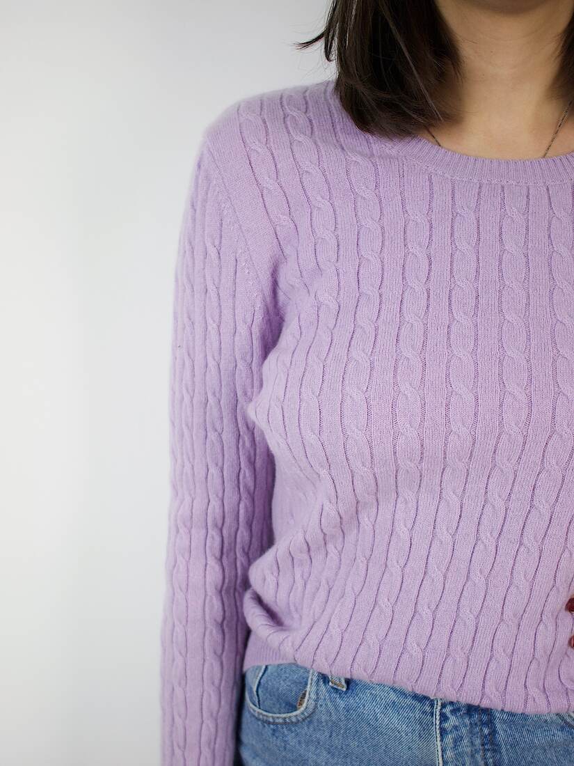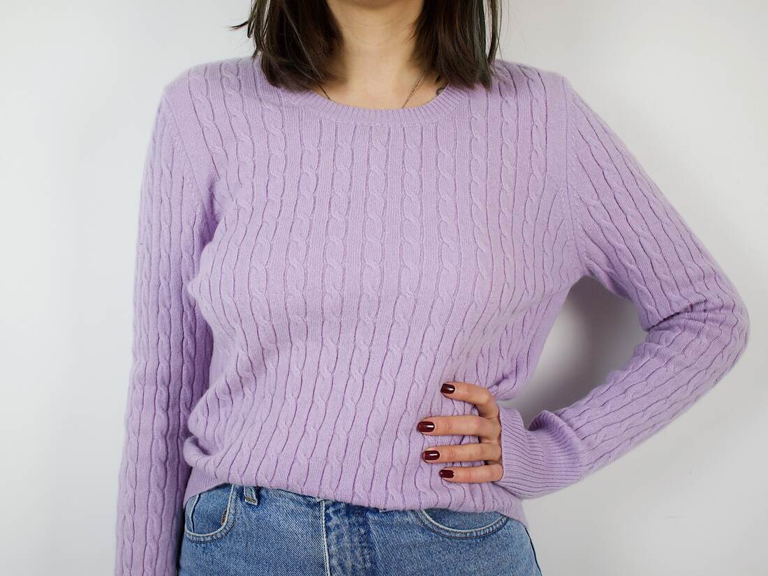 Kaszmirowy sweter vintage w warkocze. Piękny pastelowy kolor, sweter jest mięciutki i puszysty. Polecam na XS-S-mniejsze M. Idealny stan.
