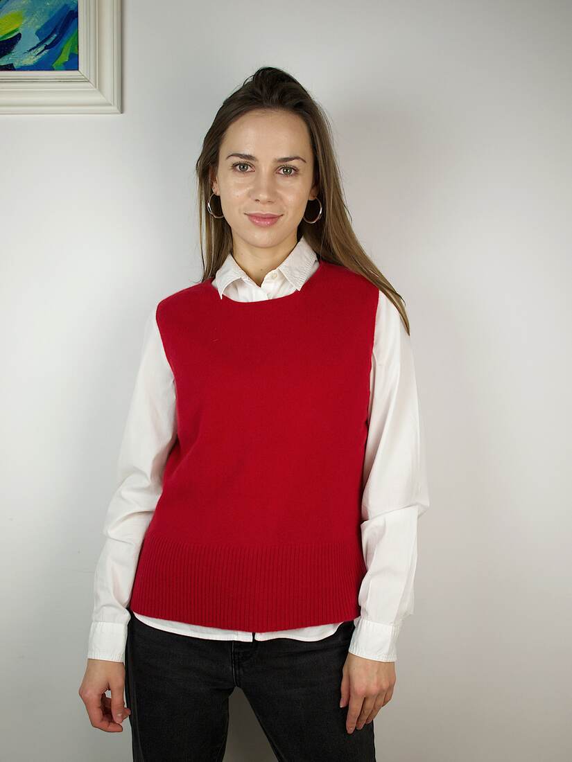 Kaszmirowy bezrękawnik angielskiej marki Laura Ashley. Będzie dobry na XS-S-M. Kolor jest mniej intensywny, niż na zdjęciach. Bez wad.