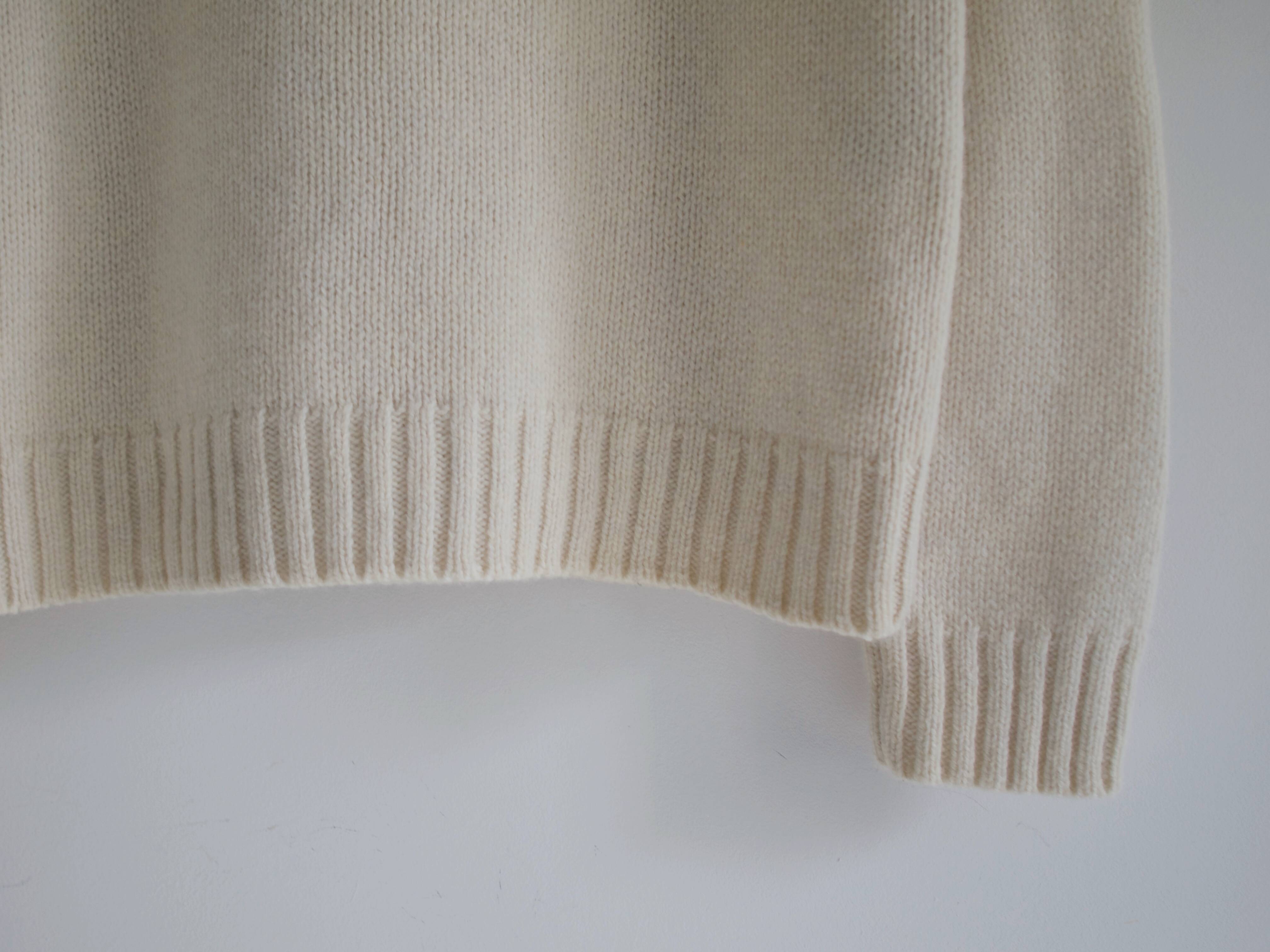 Klasyczny sweter M&S z dekoltem w serek. Skład to 100% kaszmir, bardzo dobry stan, jest minimalnie sfilcowany, nie jest to zauważalne, po prostu jest trochę sztywniejszy.