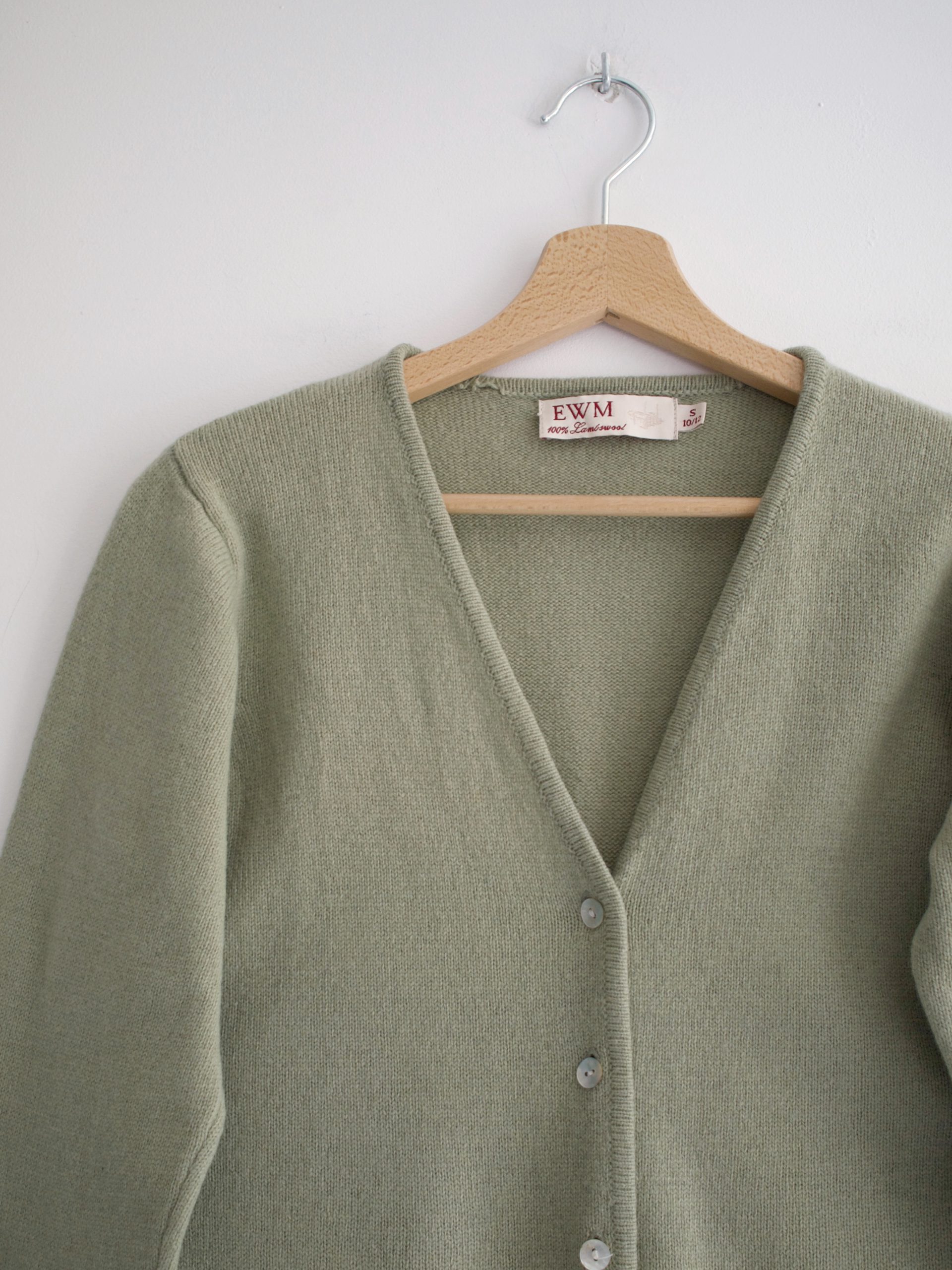 Rozpinany sweter w pistacjowym kolorze. W 100% wykonany z wełny jagnięcej. Rozmiar z metki S, będzie pasować również na M. Idealny stan.