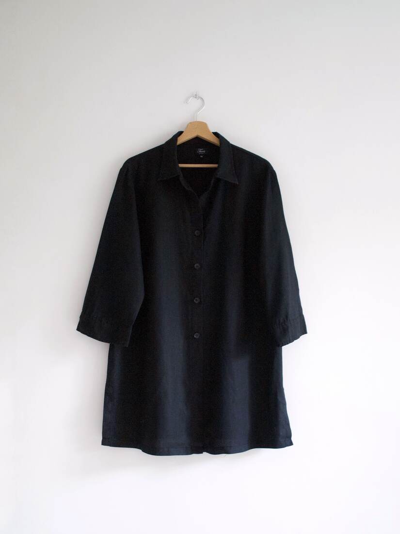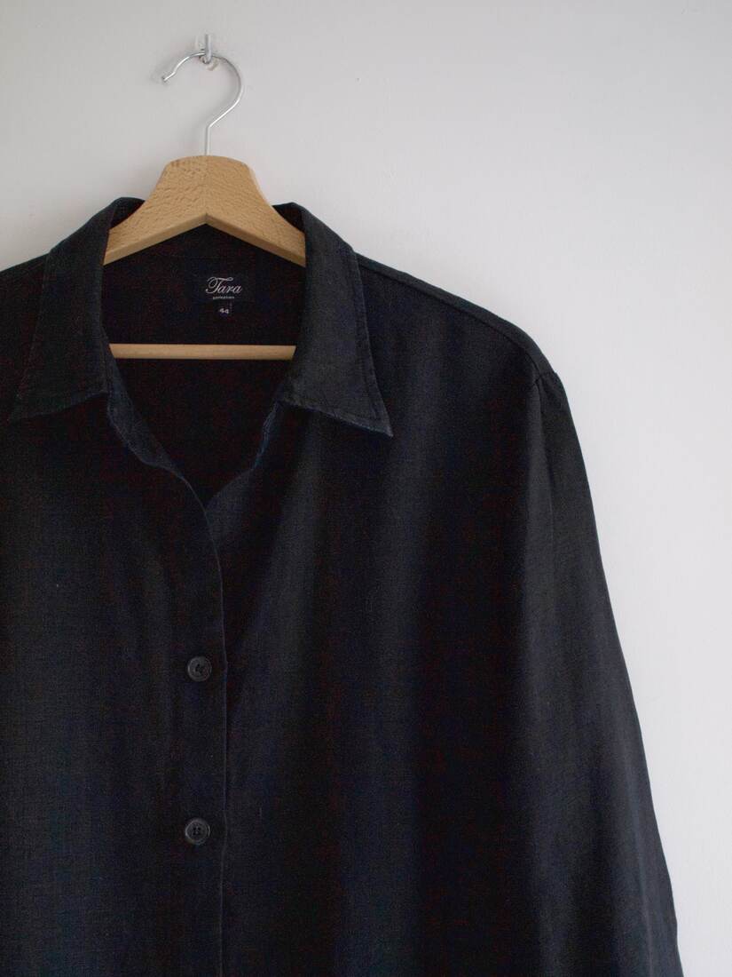 Lniana koszula/sukienka z rozcięciami po bokach. Rozmiar z metki 44, jest bardzo luźna, polecam jako oversize dla każdego rozmiaru. Bez wad.