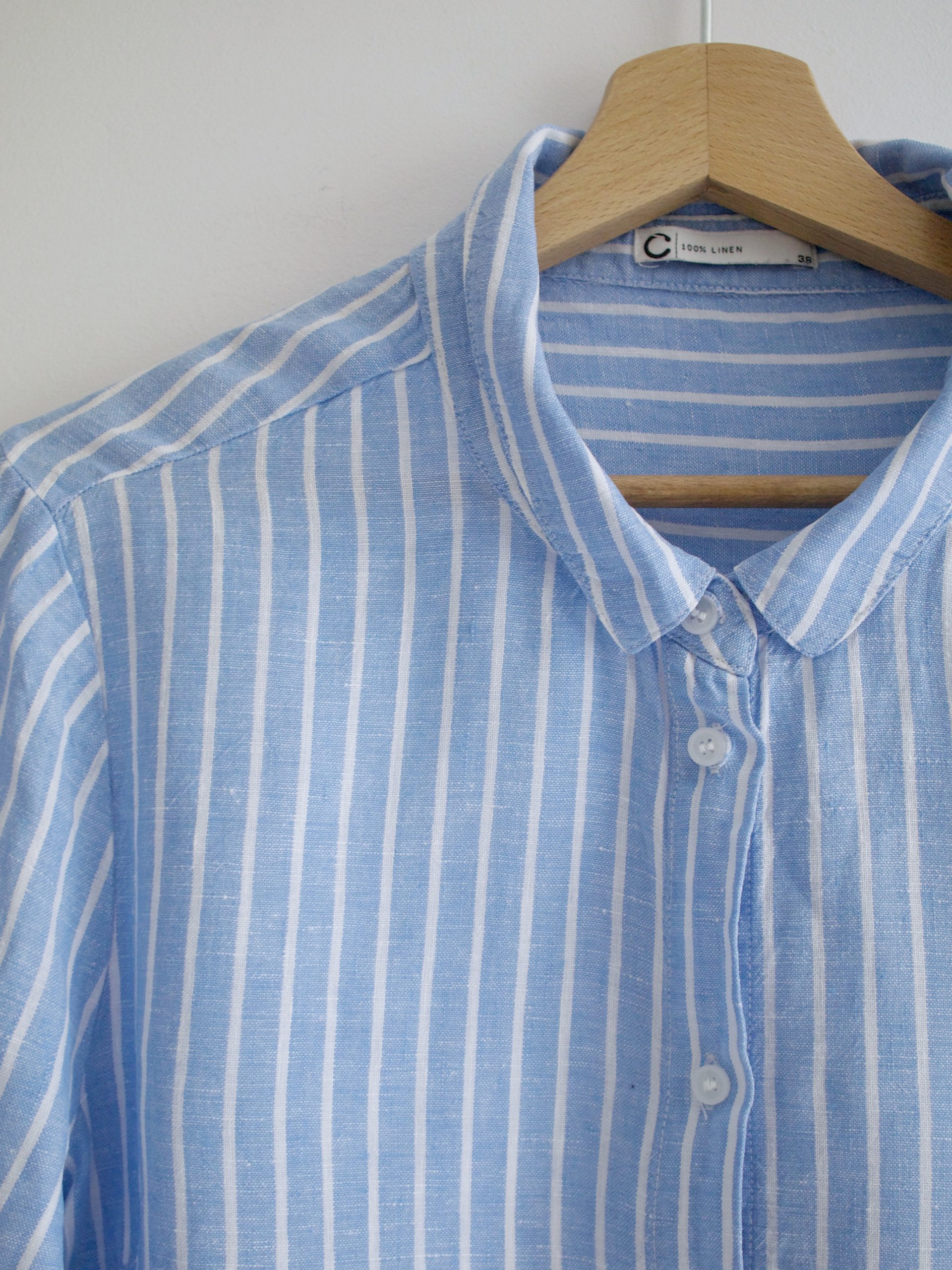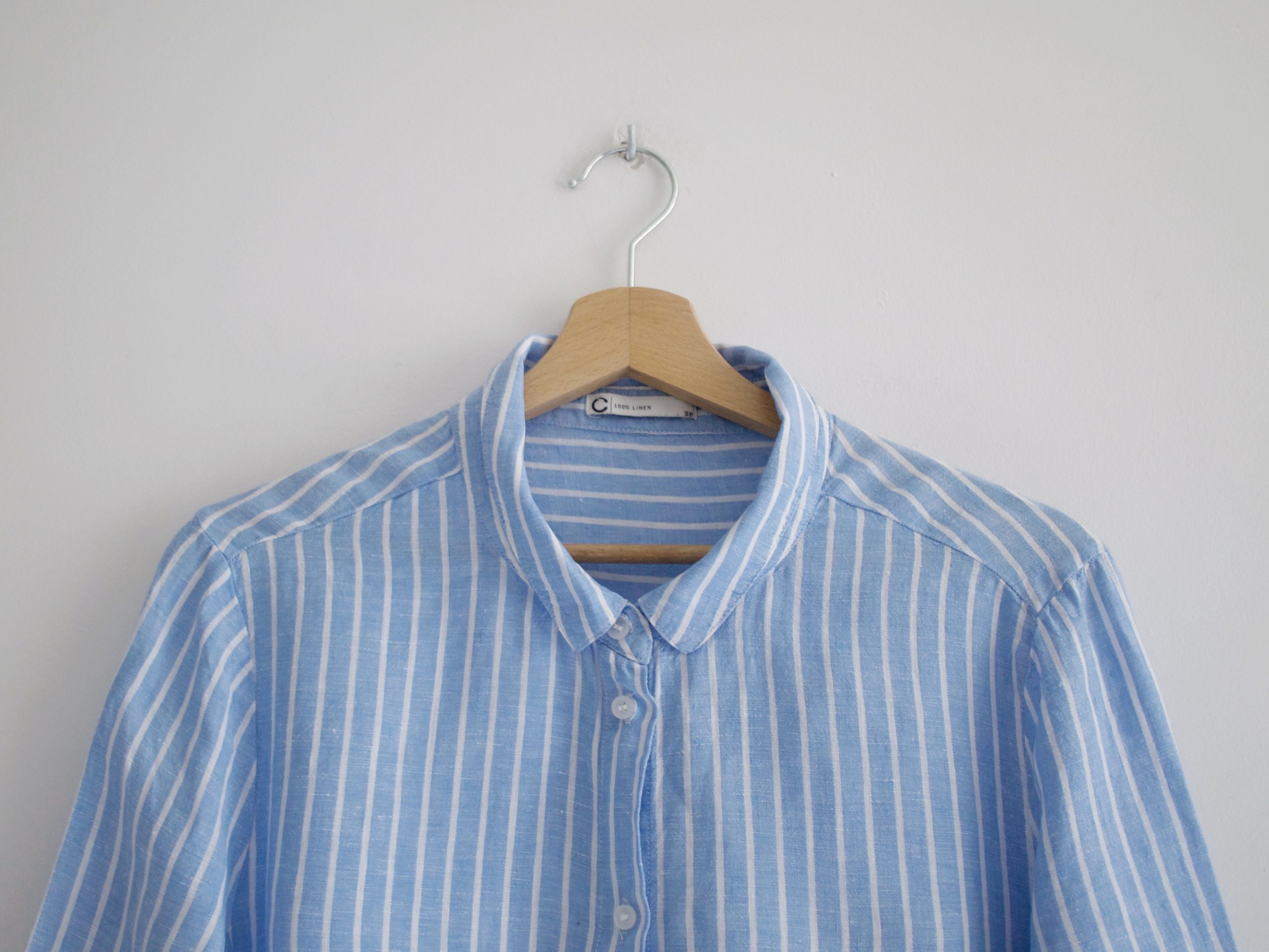 Koszula w stylu basic, w 100% wykonana z lnu. Rozmiar z metki 38, luźny fason. Bez wad.