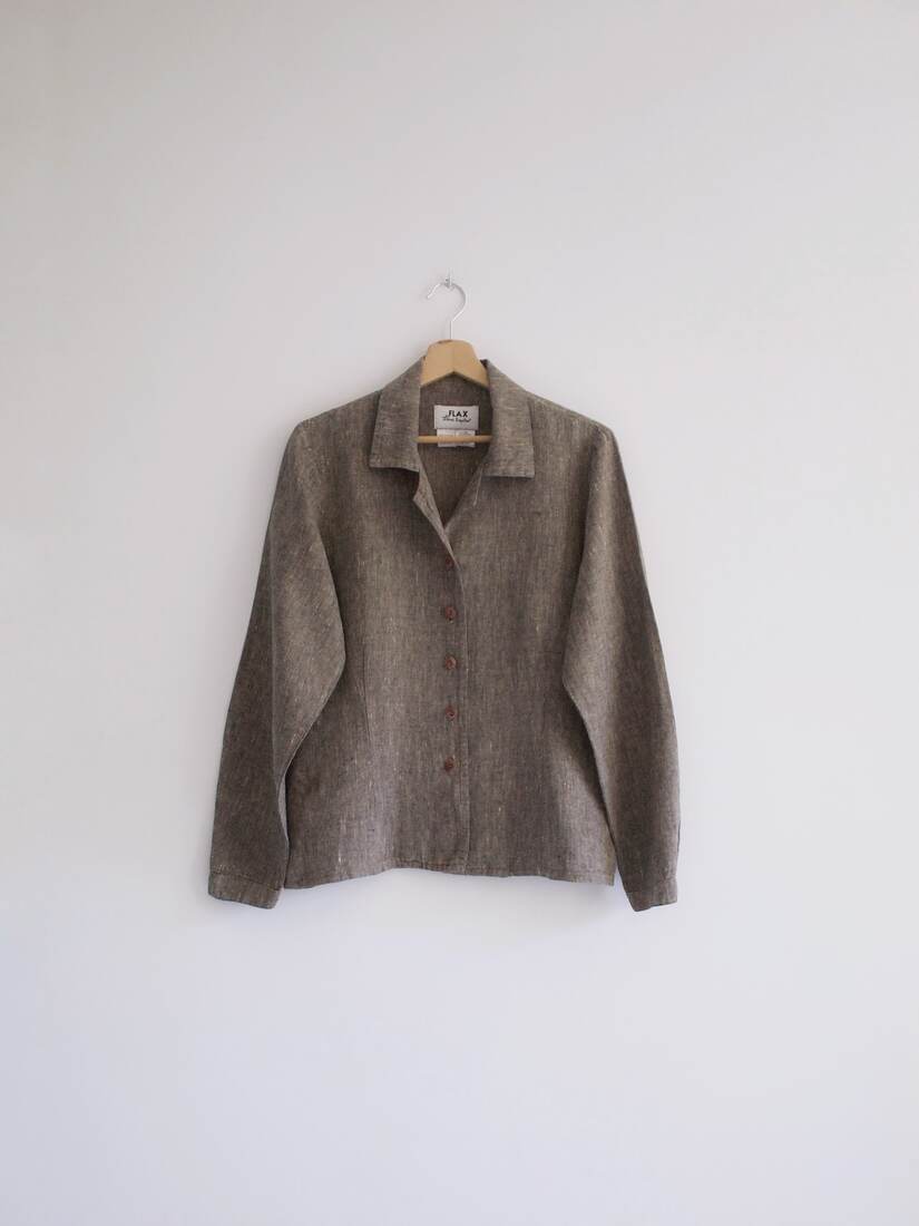 Koszula vintage marki Flax by Jeanne Engelhart. Może być noszona jako okrycie wierzchnie. Rozmiar z metki S, będzie pasować również na M. Bez wad.