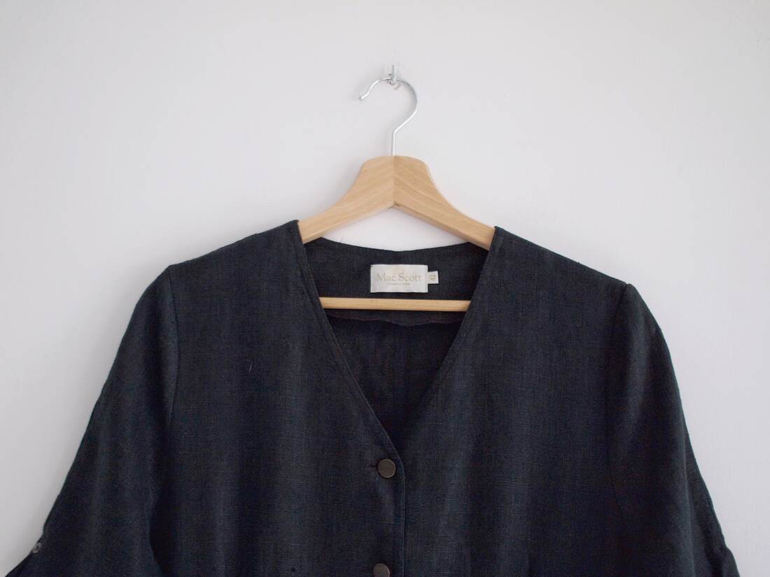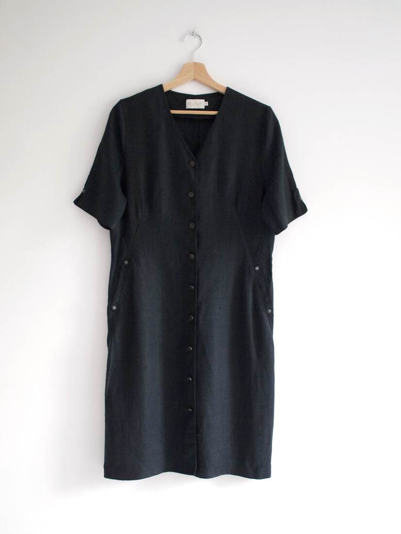 Sukienka vintage szwedzkiej marki Mac Scott. W 100% wykonana z lnu. Rozmiar z metki 42, jest zawyżony, proszę sugerować się wymiarami. Bez wad.