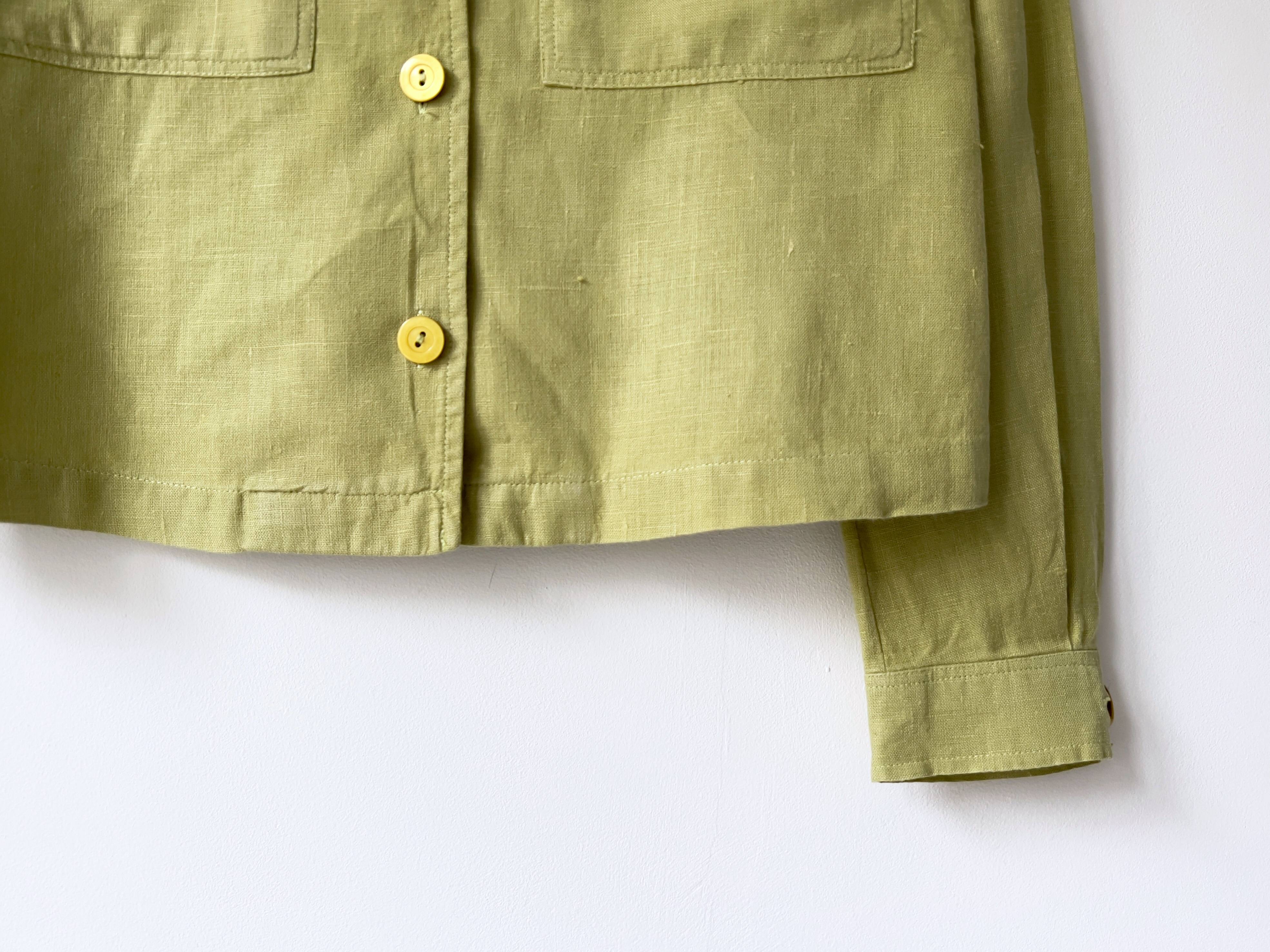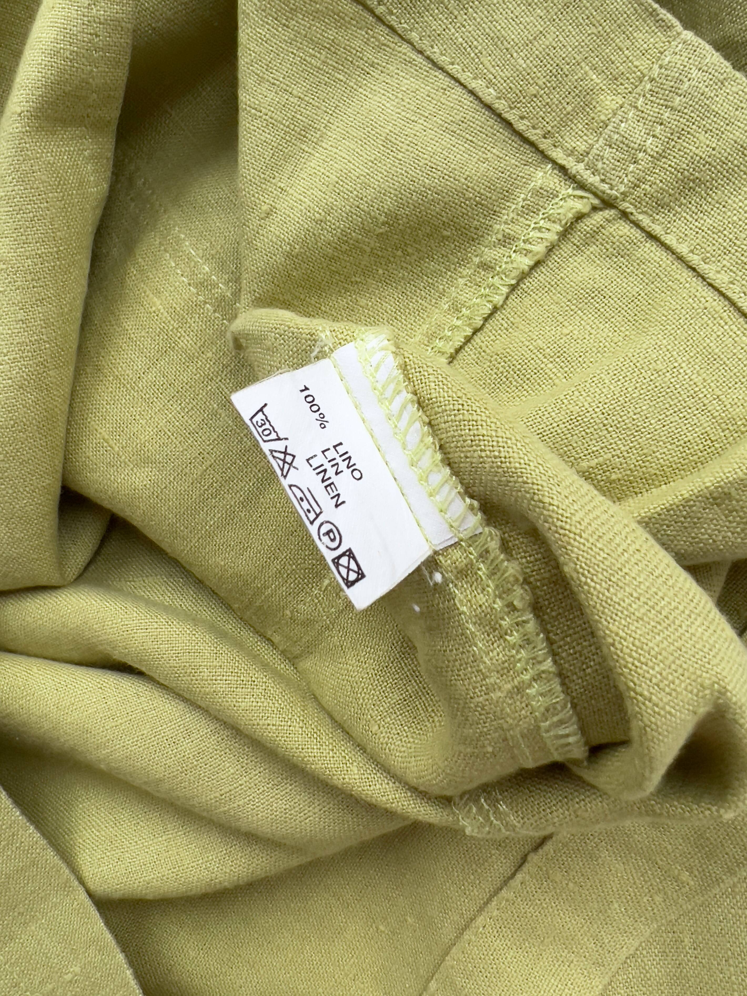 Lniana koszula w pistacjowym kolorze. Materiał jest dość gruby, może być noszona również jako lekka letnia kurtka. Rozmiar z metki S, bardzo luźny fason. Bez wad.