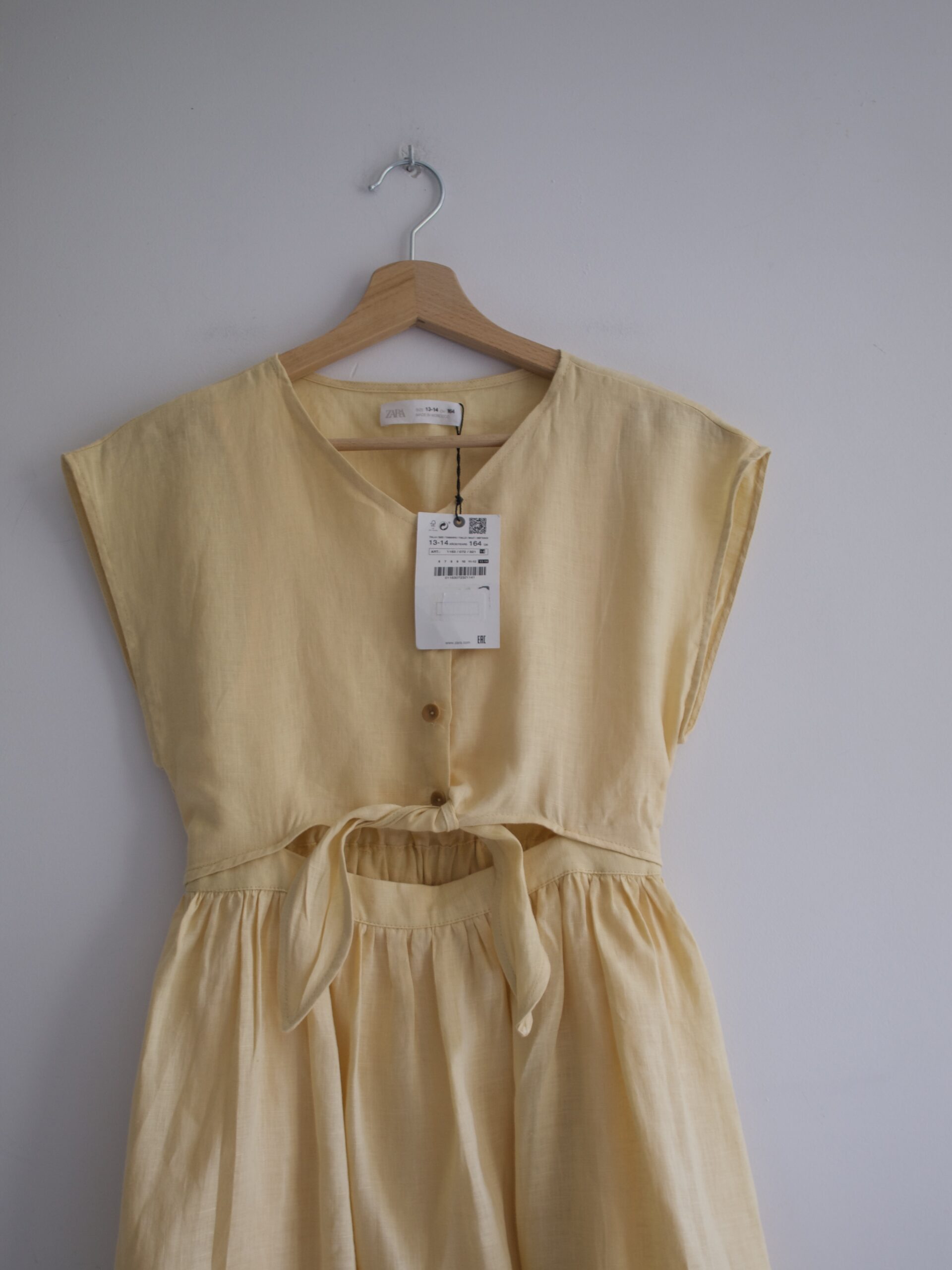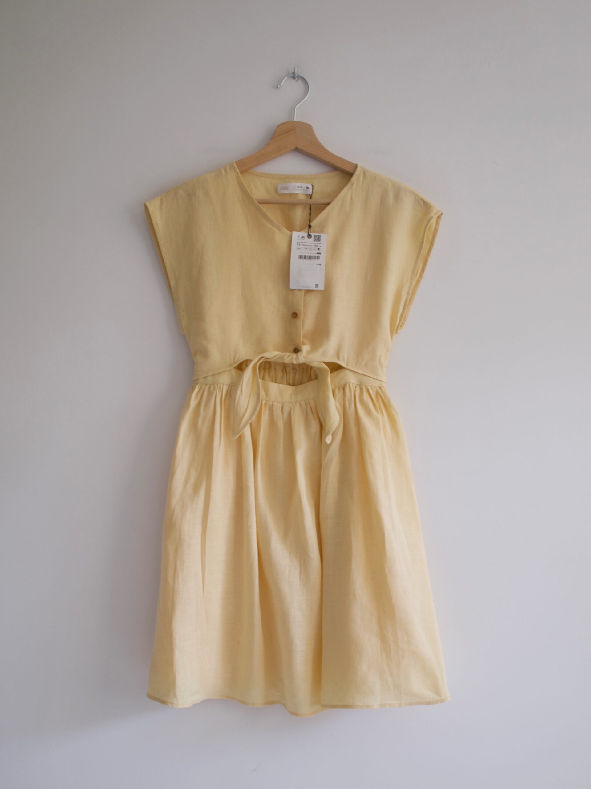 Sukienka marki Zara, w 100% wykonana ze lnu. Model dziecięcy, może pasować również na XS-S.