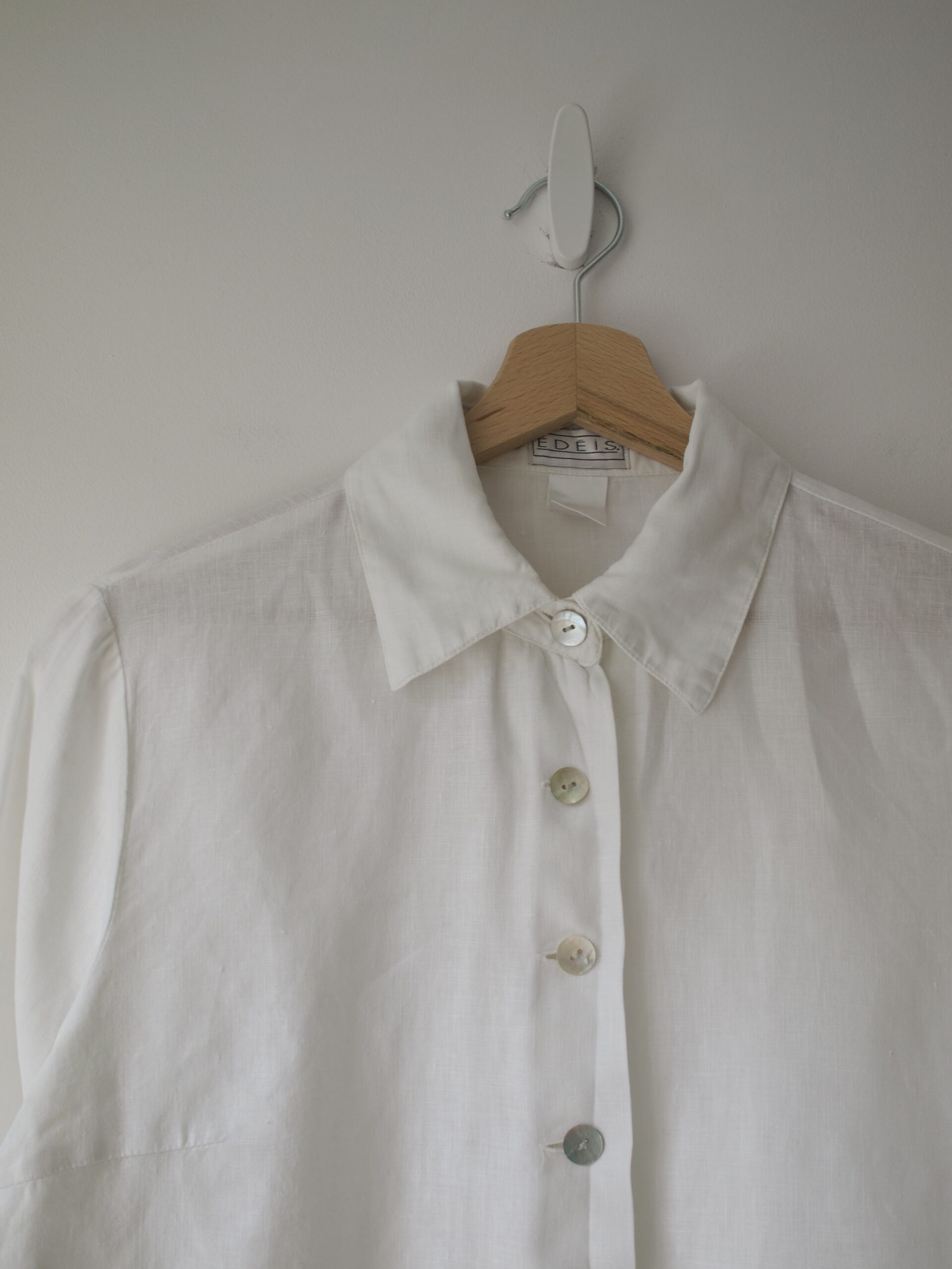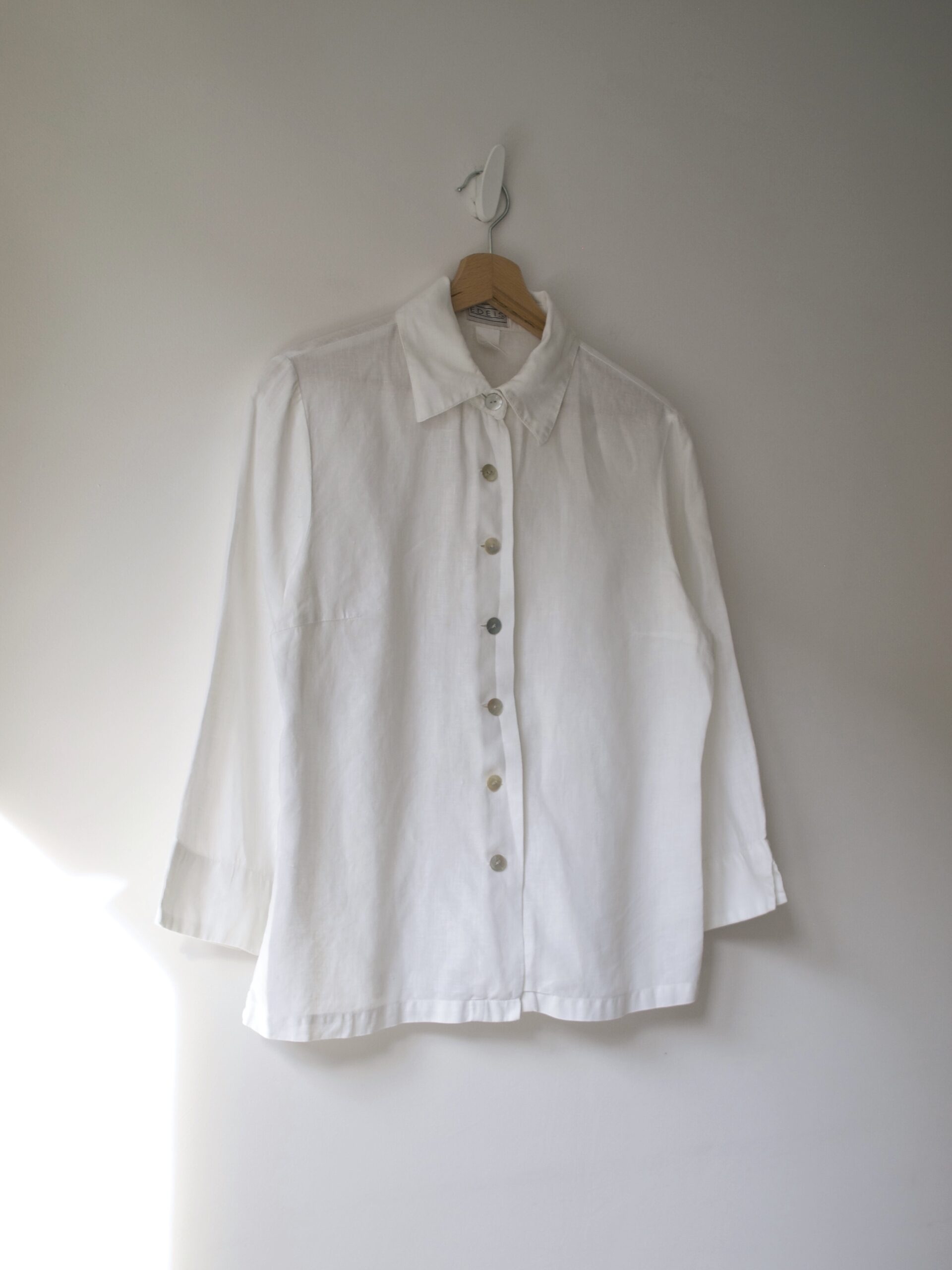 Koszula vintage w 100% wykonana z lnu. Zapinana na guziki z naturalnej muszli.