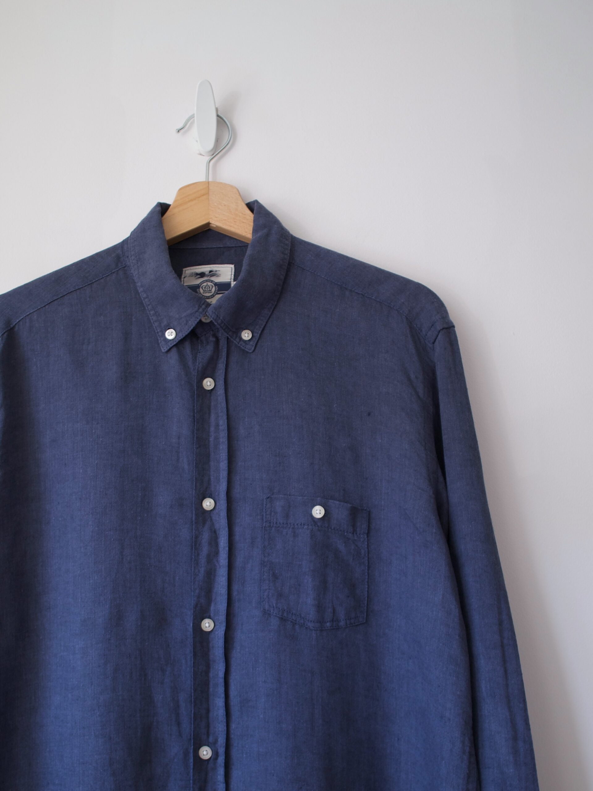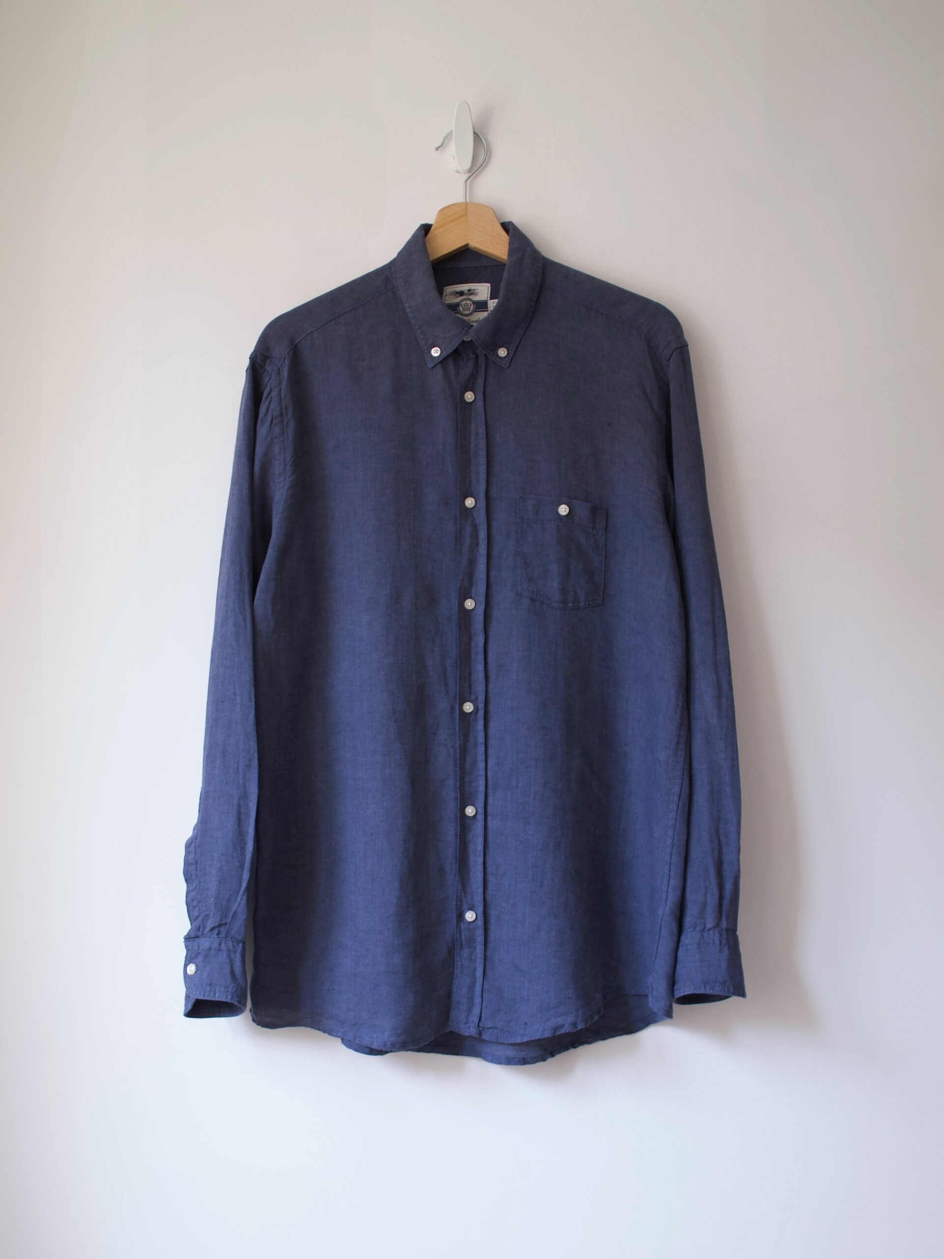 Rozmiar: 15 1/2 (męski) Skład: 100% len Stan: bez wad Szerokość w klatce 54 cm Długość całkowita 77 cm