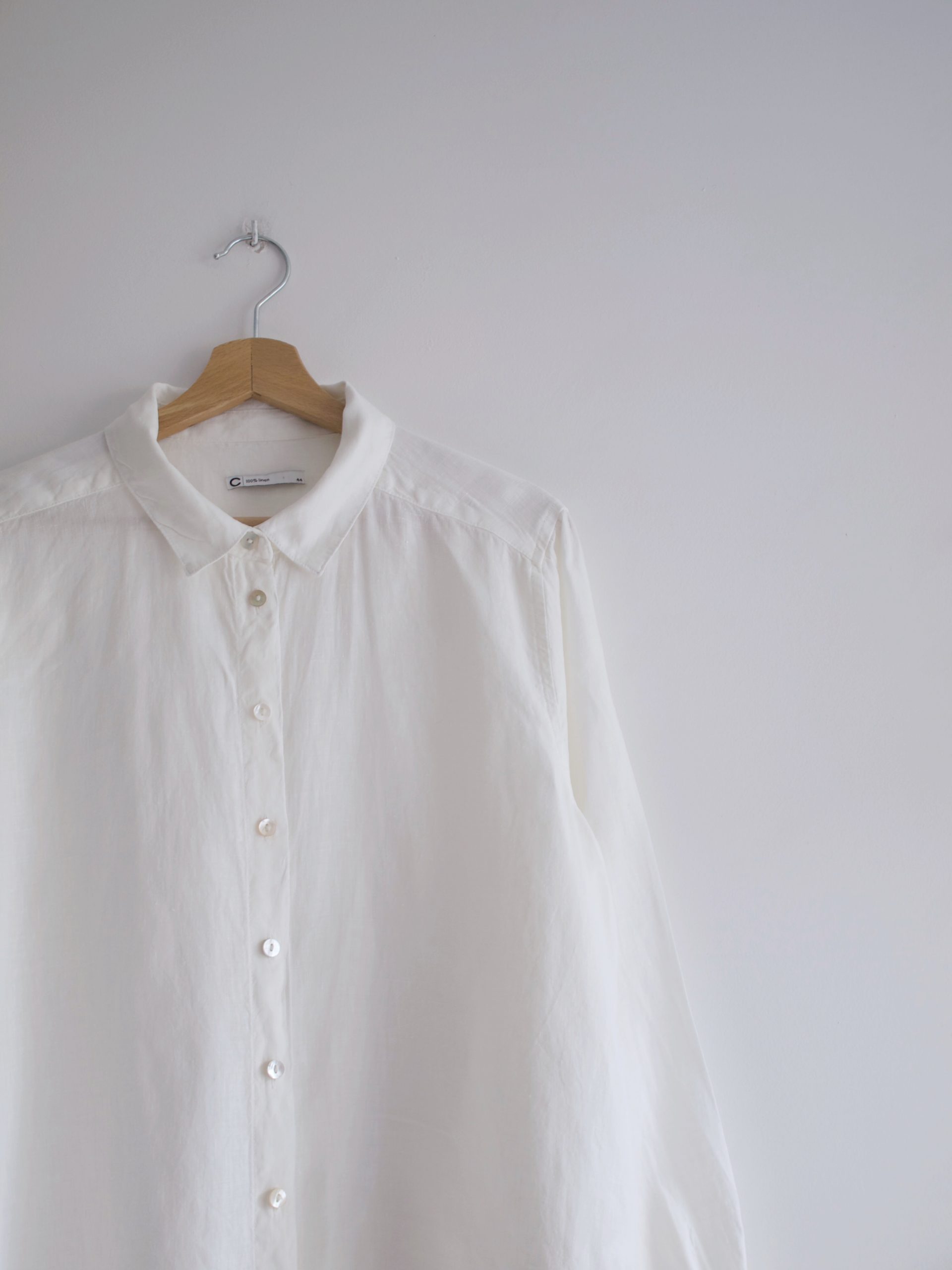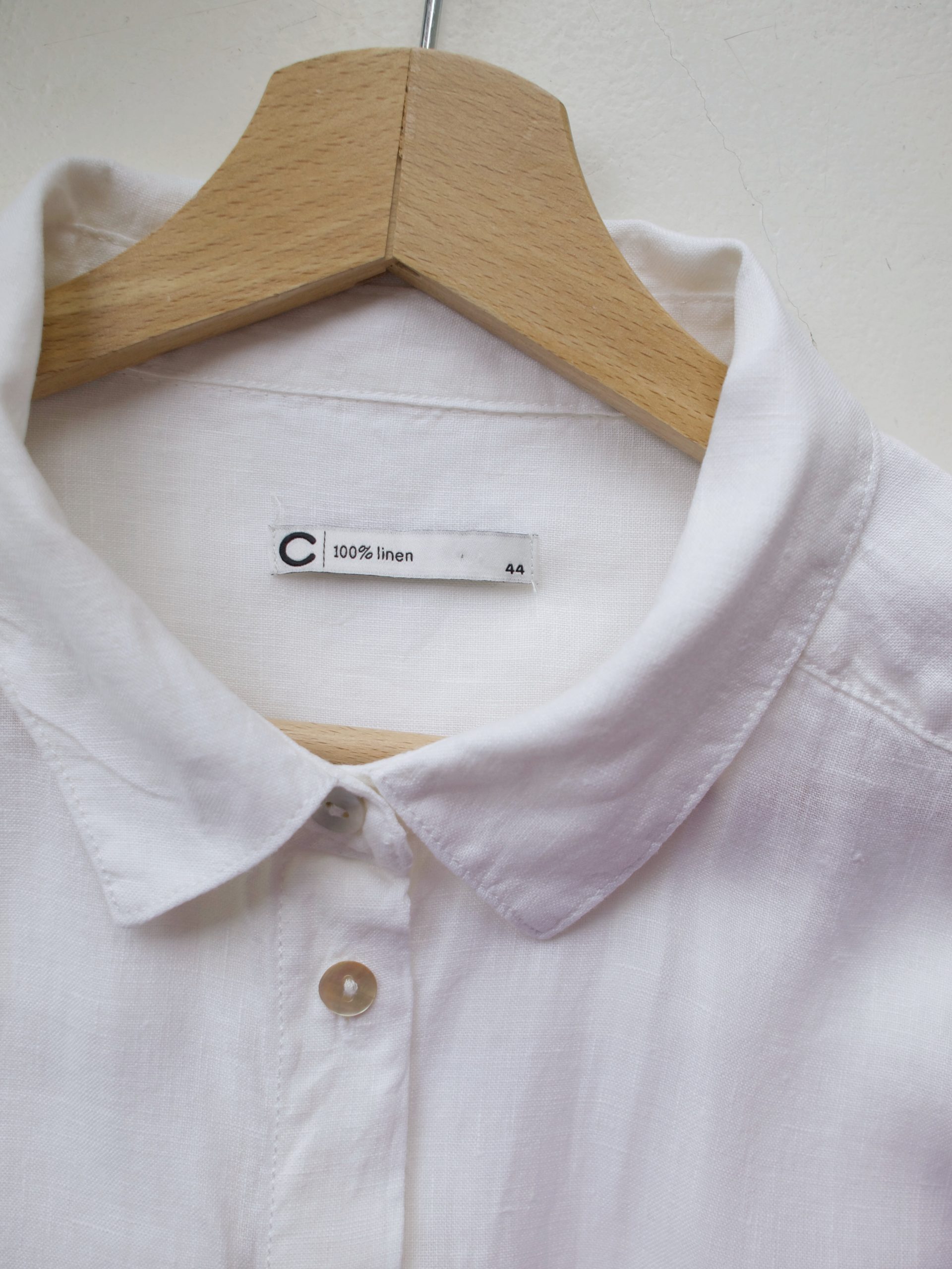 Koszula skandynawskiej marki Cubus, w 100% wykonana z lnu. Zapinana na guziki z naturalnej muszli. Rozmiar z metki: 44 Skład: len Stan: idealny Szerokość w klatce 59 cm Długość całkowita 71 cm