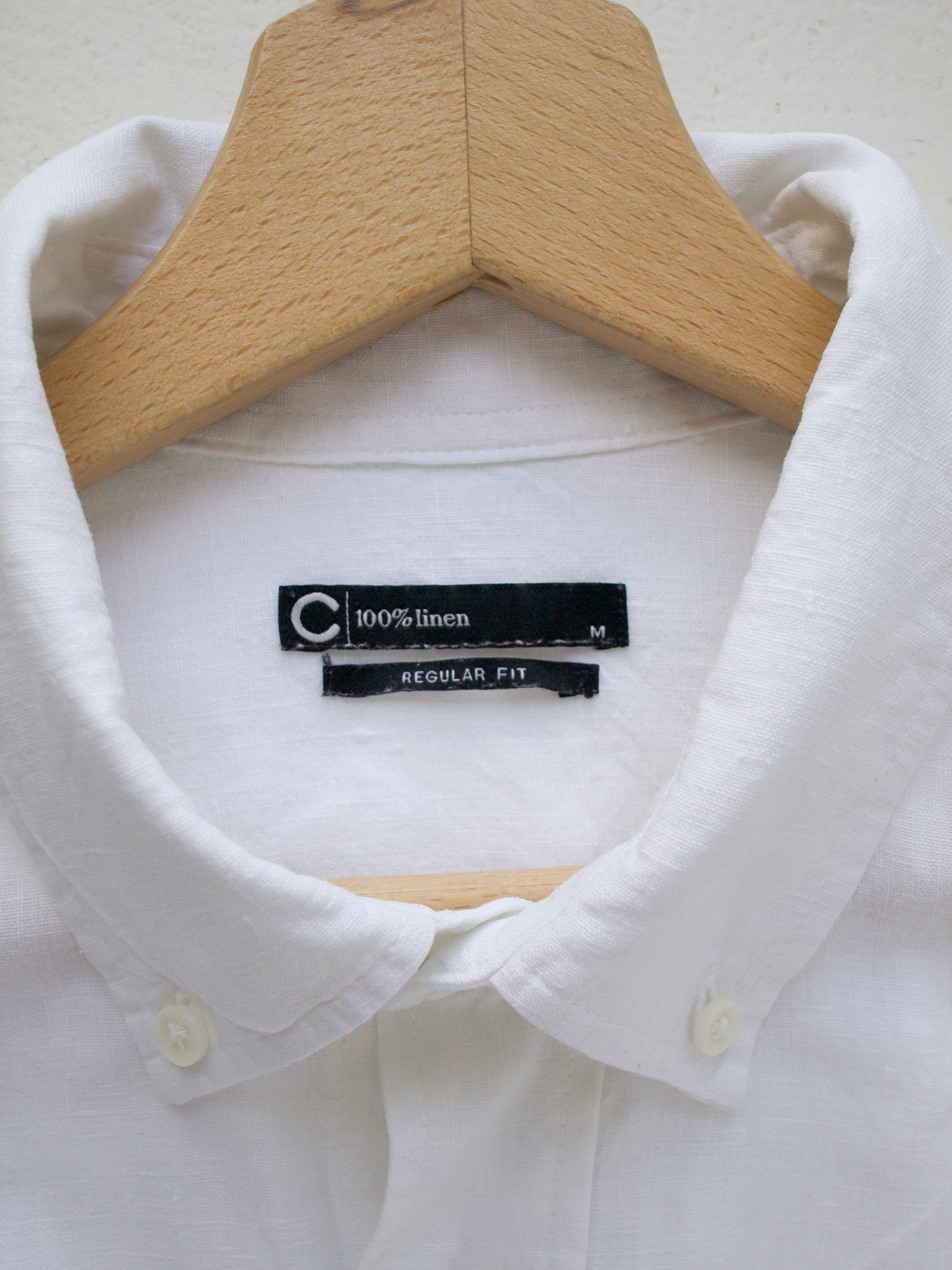 Lniana koszula w stylu basic, absolutny must have na lato. Model męski. Rozmiar z metki: M, męski Skład: 100% len Stan: bez wad Szerokość w klatce 53 cm Długośćcałkowita 70-73 cm