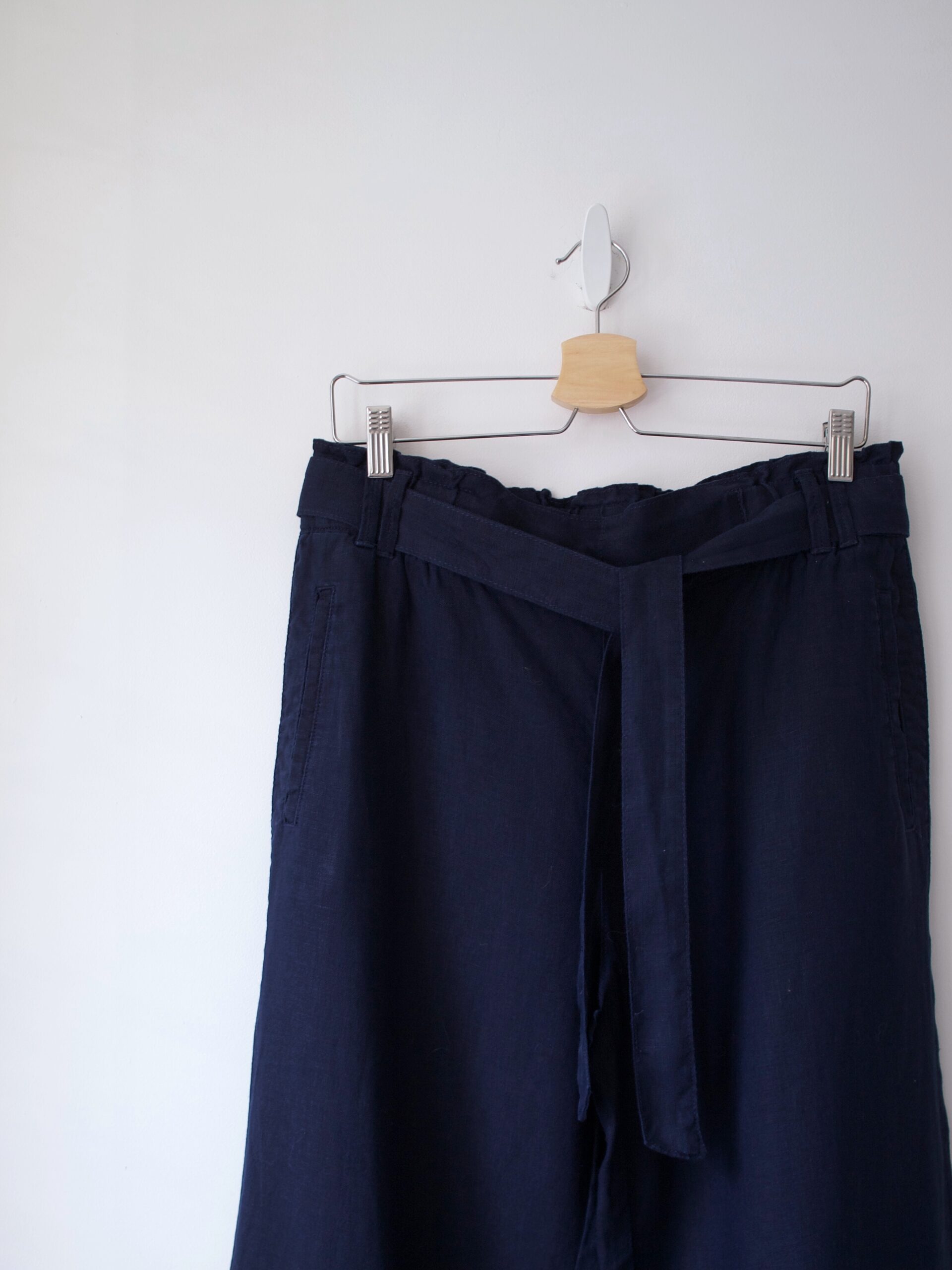 Wymiary spodni: szerokość w pasie 35 cm, szerokość w biodrach 50 cm, długość nogawki od kroku 71 cm, długość całkowita 96 cm. Wymiary marynarki: szerokość w ramionach 37,5, szerokość w klatce 46 cm, długość całkowita 76 cm.