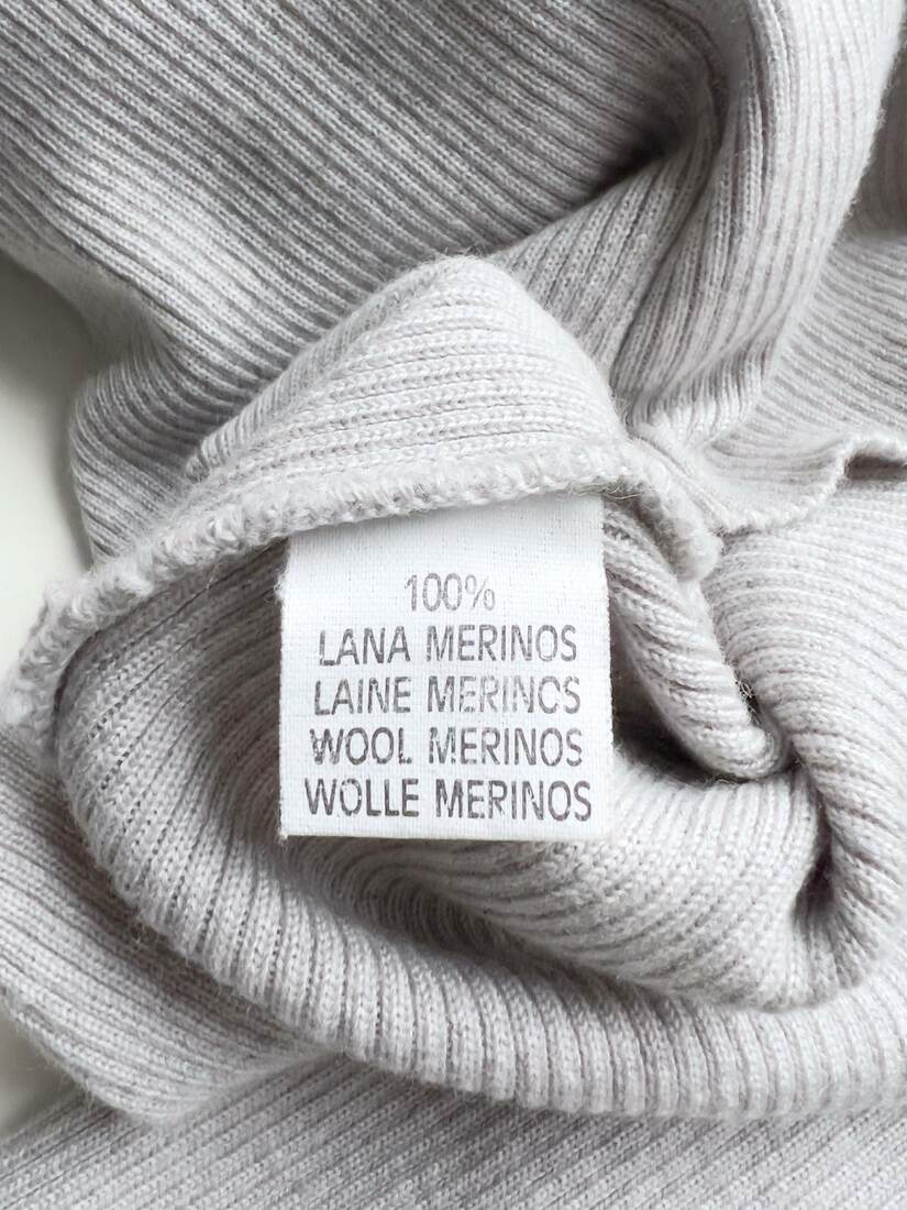 Minimalistyczny wełniany sweter z golfem. Idealny stan, materiał nie gryzie. Brak metki z rozmiarem, na oko jest to L, na mniejsze rozmiary idealny jako oversize (proszę sprawdzać wymiary).