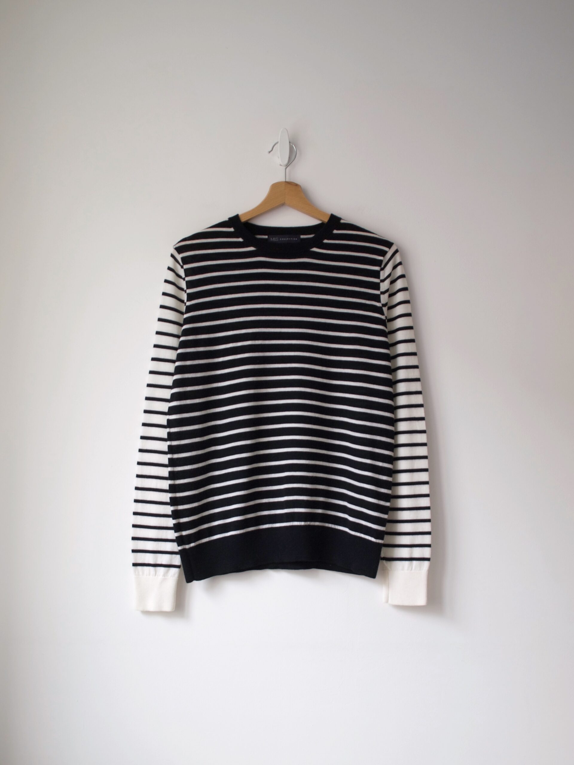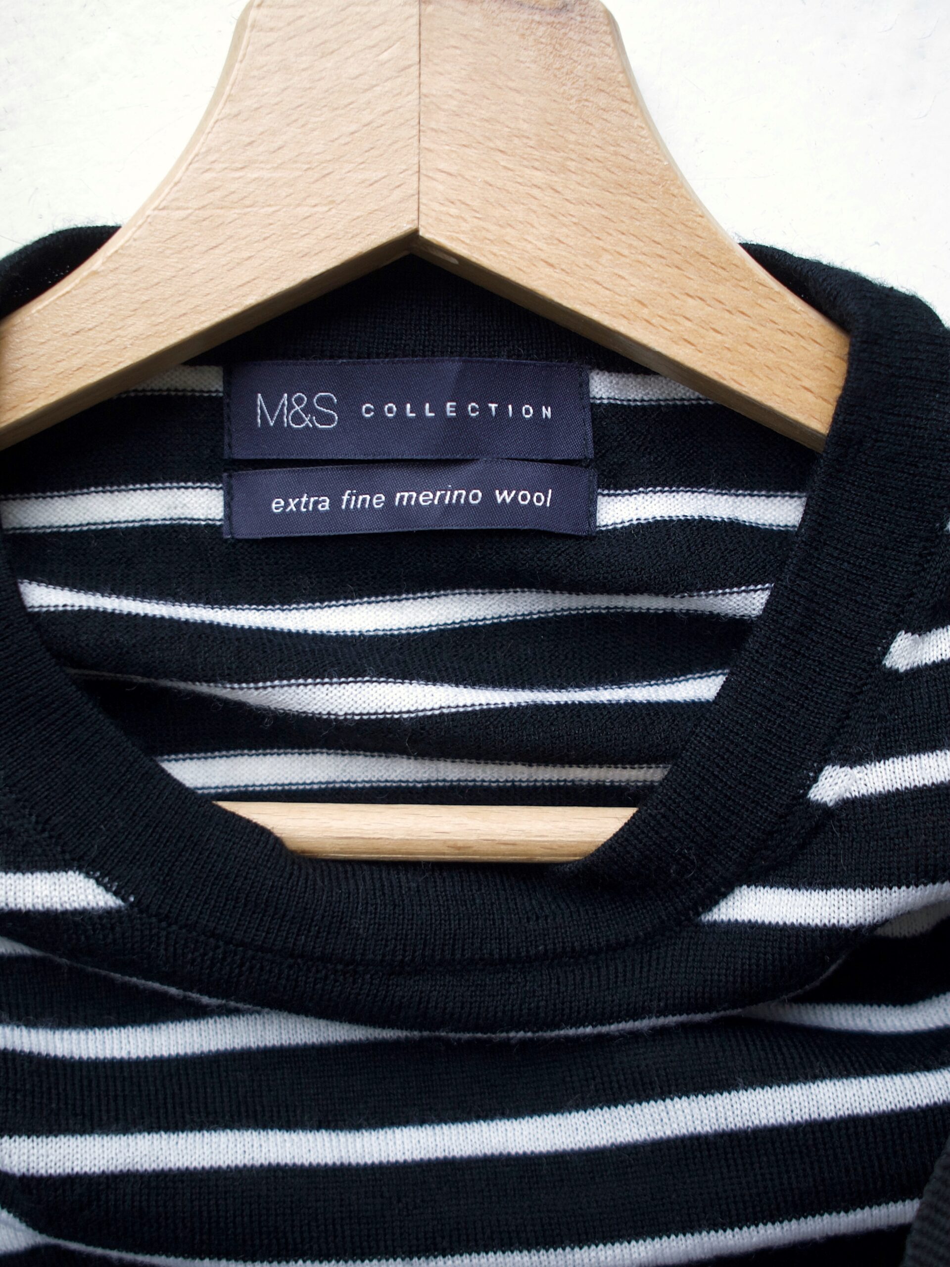 Sweter marki Marks&Spencer, wykonany z niegryzącej wełny merino. Rozmiar z metki: 40 Skład: 100% wełna Stan: idealny Szerokość w klatce 47 cm Długośćcałkowita 62,5 cm