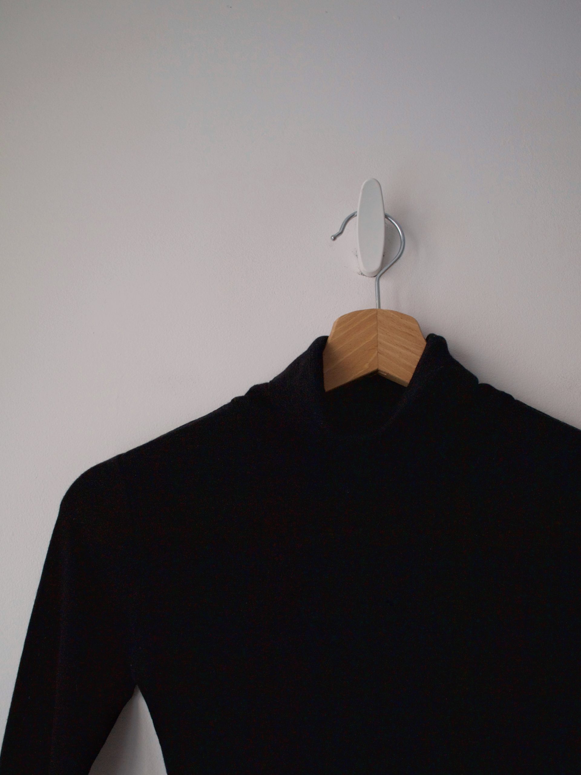 Minimalistyczny kremowy golf wykonany w 100% z wełny merynosa. Materiał przyjemny w dotyku, nie gryzie, sweter bez wad. Rozmiar z metki S, wymiary poniżej.