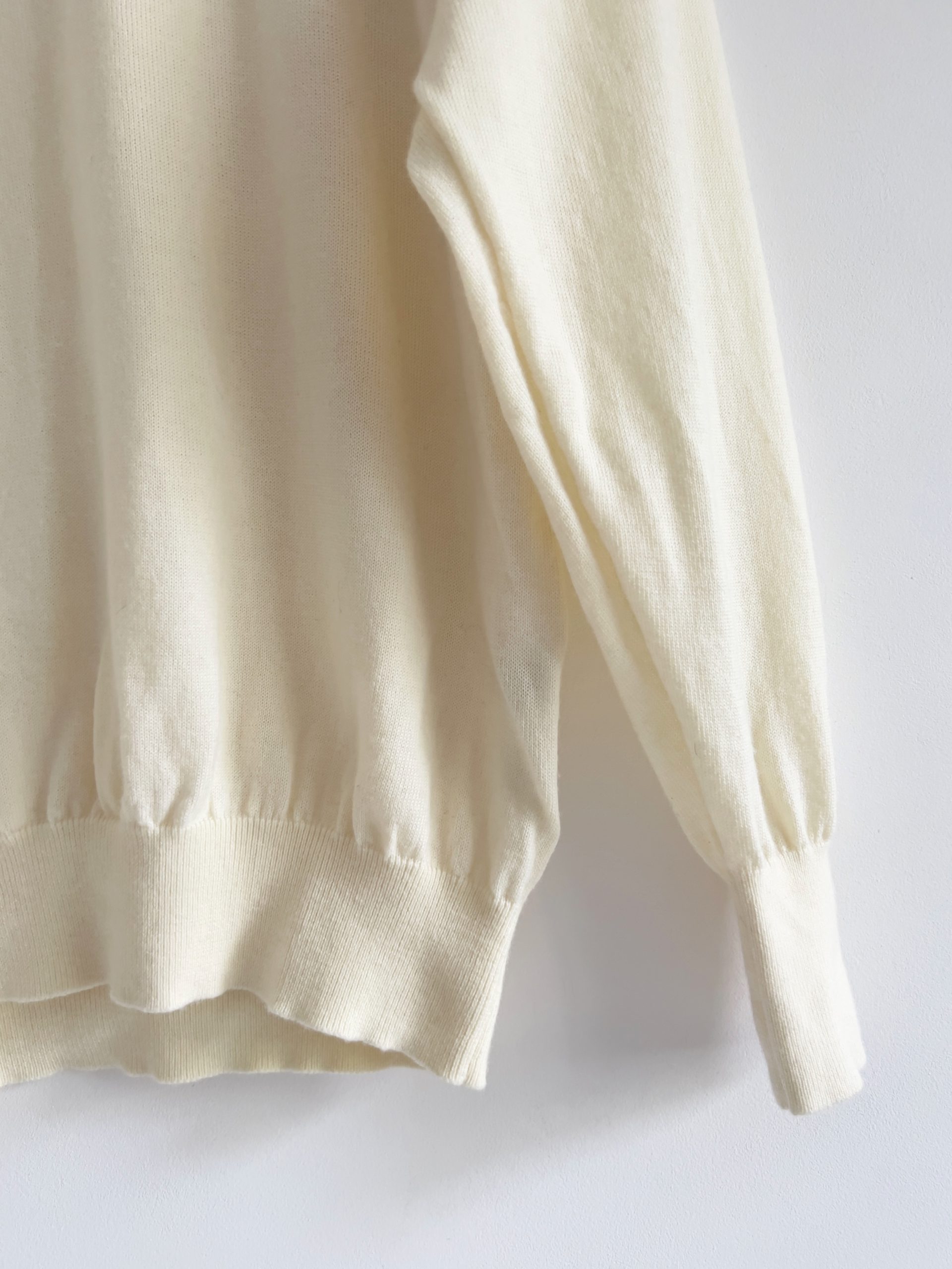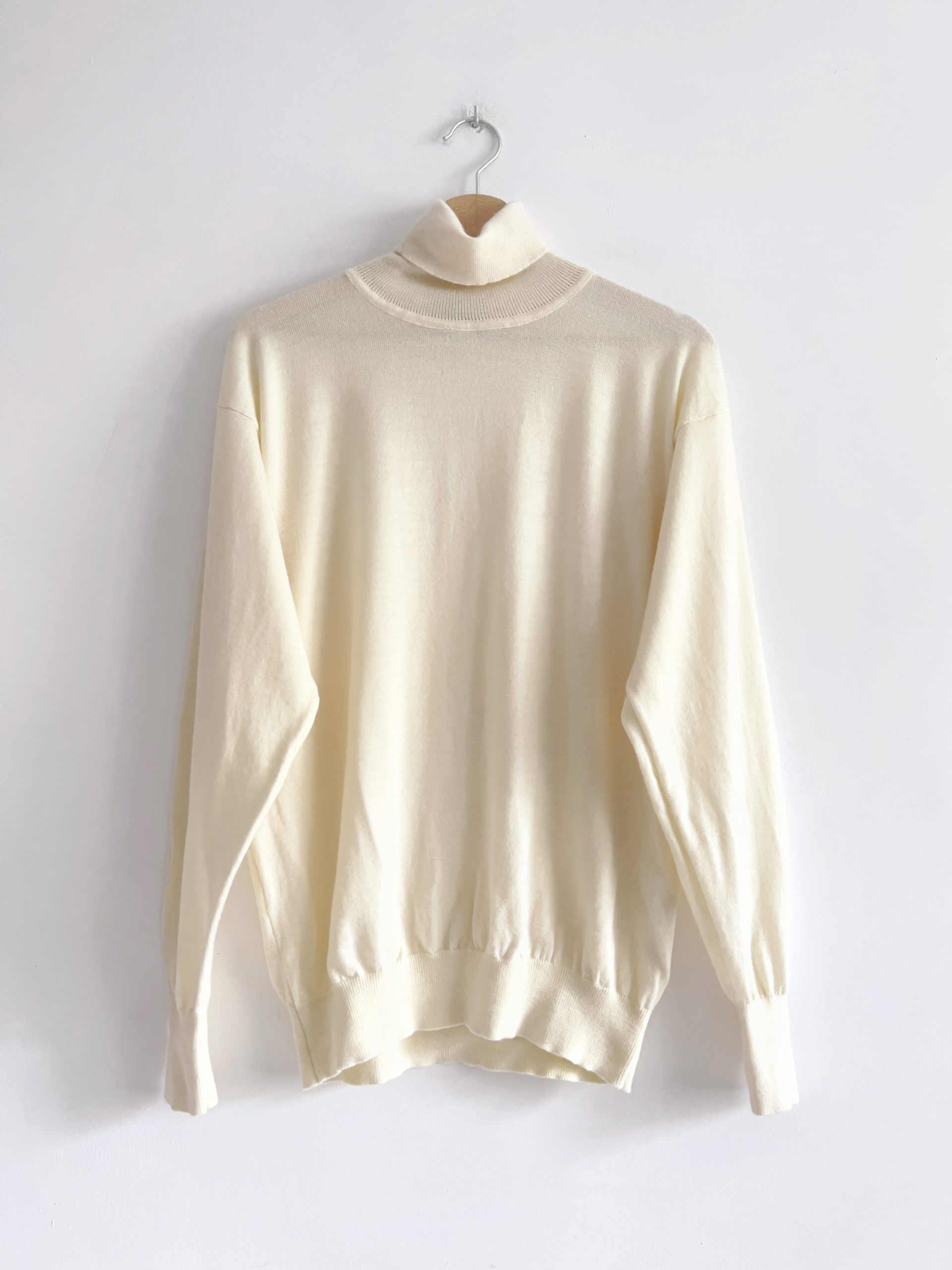 Sweter jest wykonany w 100% z wysokogatunkowej miękkiej wełny dziewiczej, made in UK. Brak etykiety z rozmiarem, ma nieco obniżone ramiona, będzie dobry na m/l, lub jako overize. Modelka ma 175 cm wzrostu. Idealny stan.