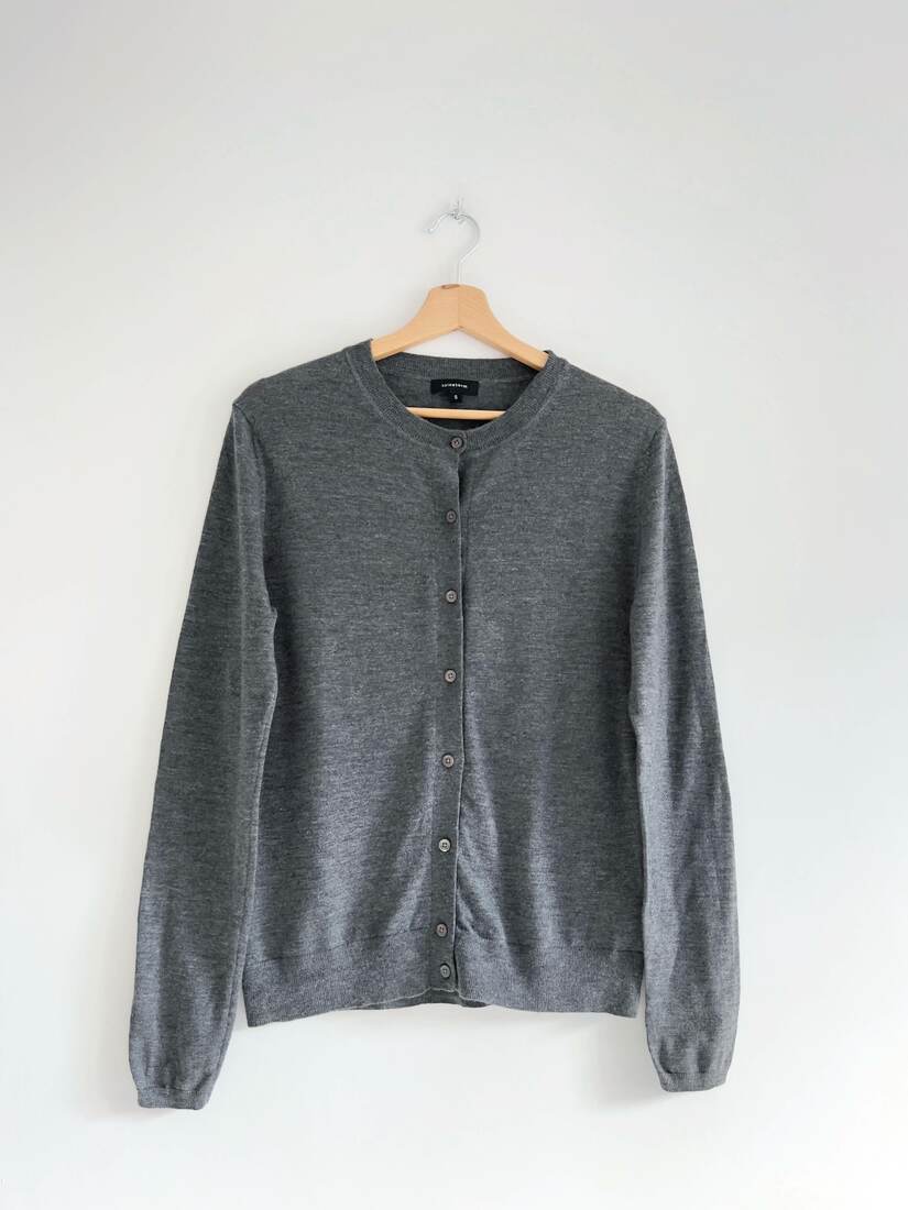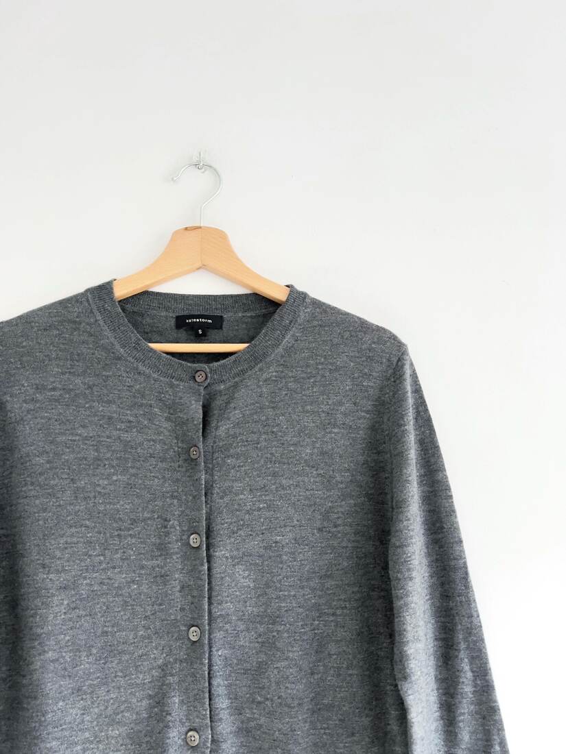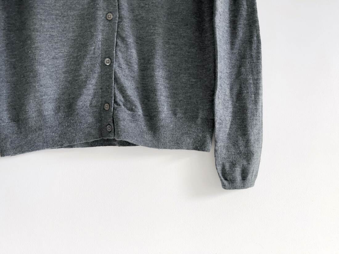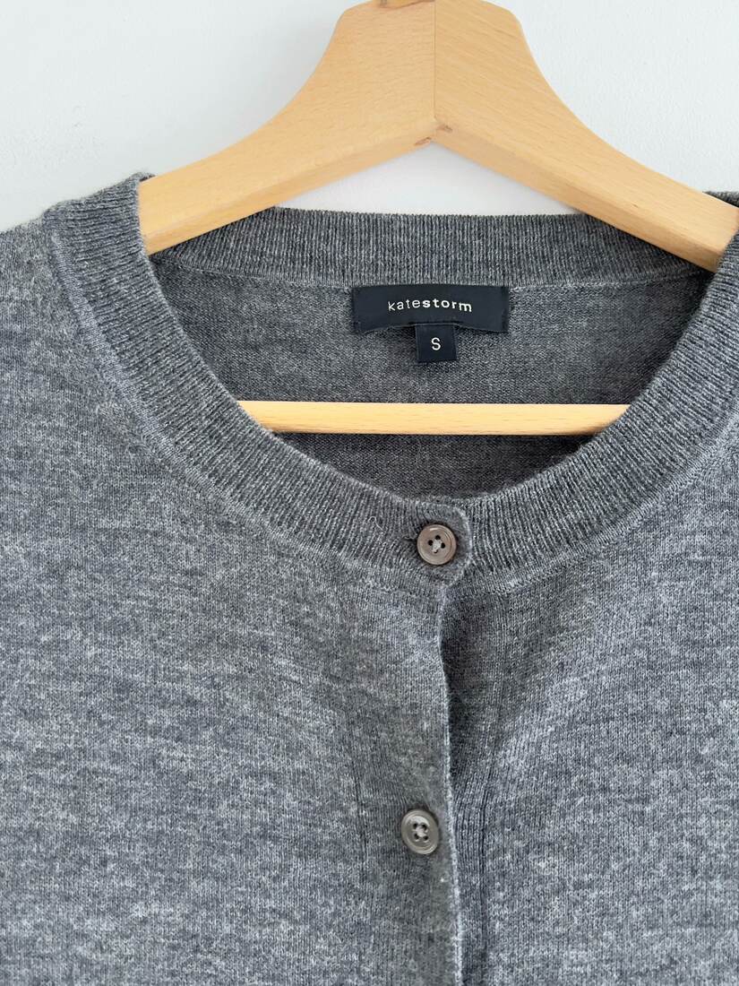 Szary kardigan vintage. W 100% wykonany z wełny merynosa, bardzo miękki i miły w dotyku. Rozmiar z metki S, idealny stan.
