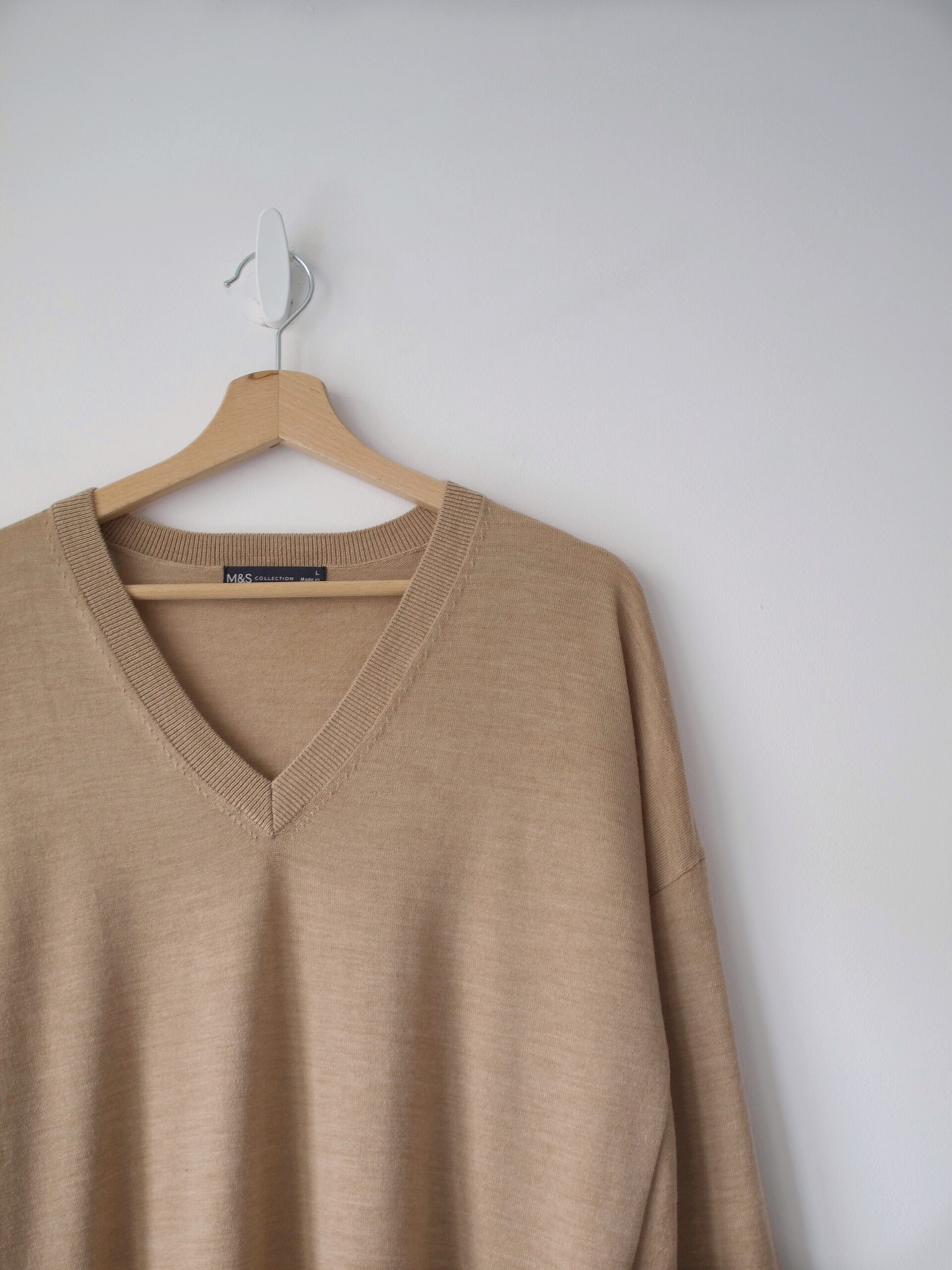 Cienki wełniany sweter, w 100% wykonany z niegryzącej wełny merino.