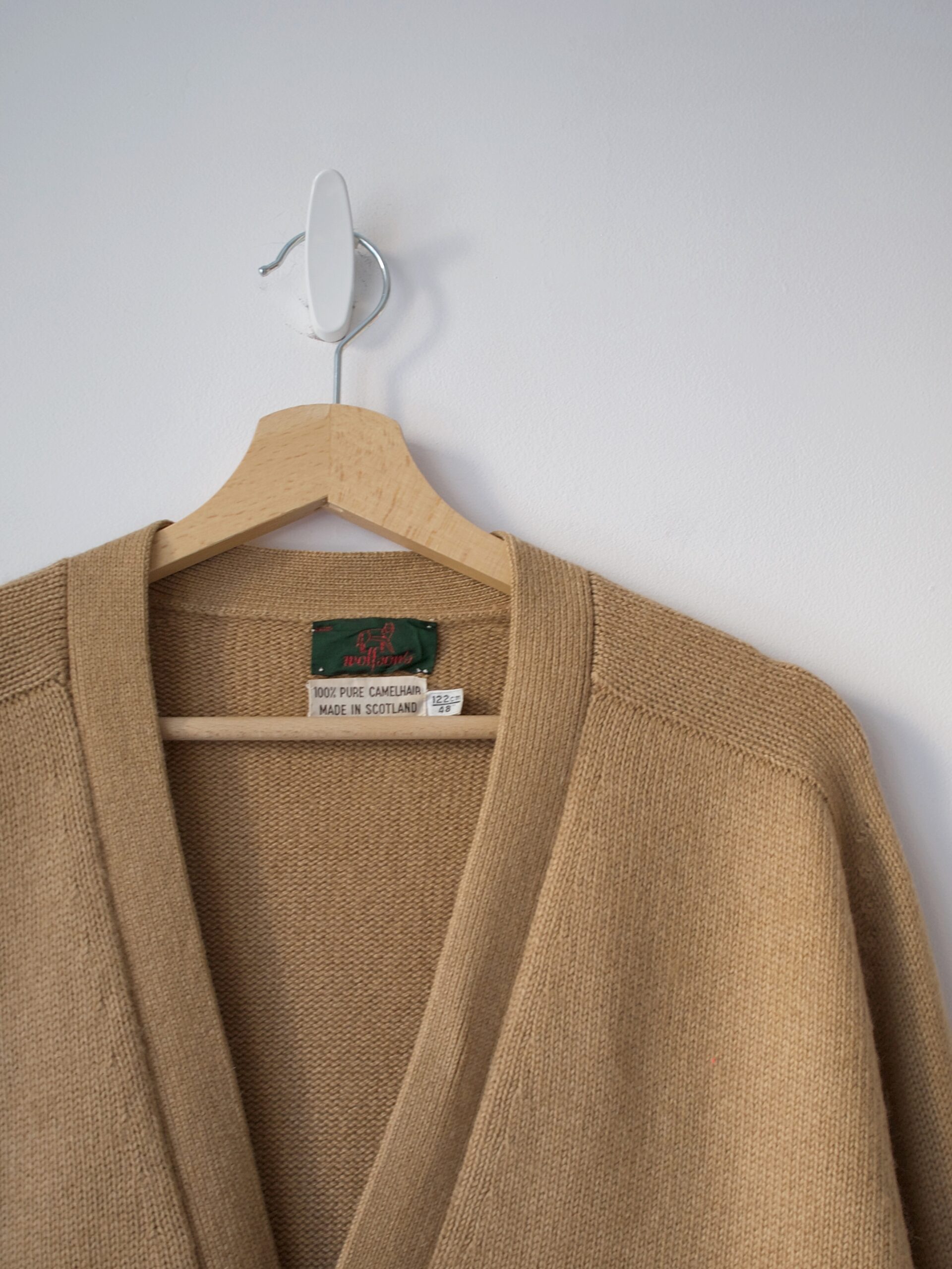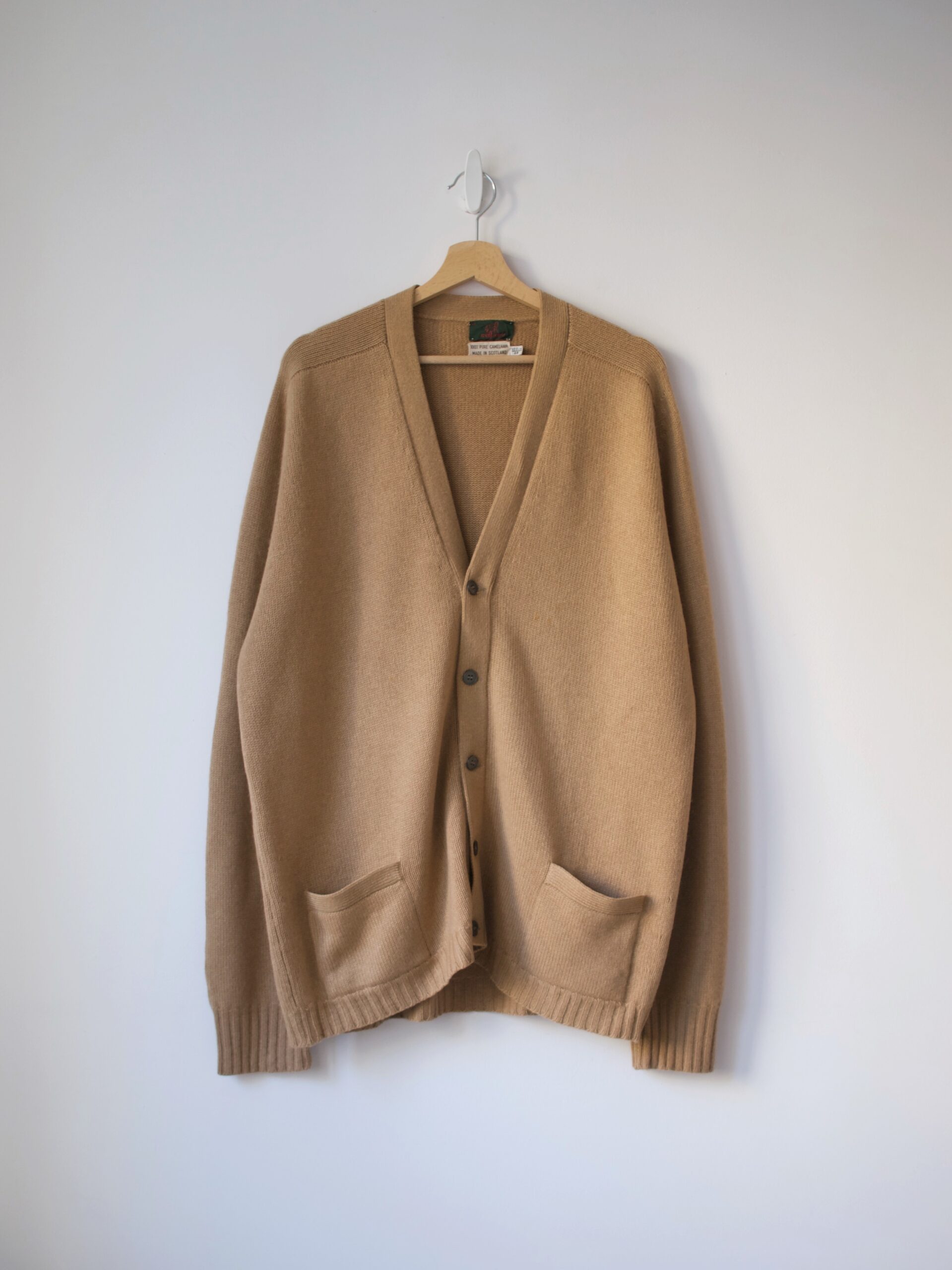 Unikatowy sweter vintage, w 100% wykonany z wełny wielbłądziej. Rozmiar z metki: 48 Skład: wełna wielbłądzia Stan: bez wad Szerokość w klatce 60 cm Długośćcałkowita 73 cm