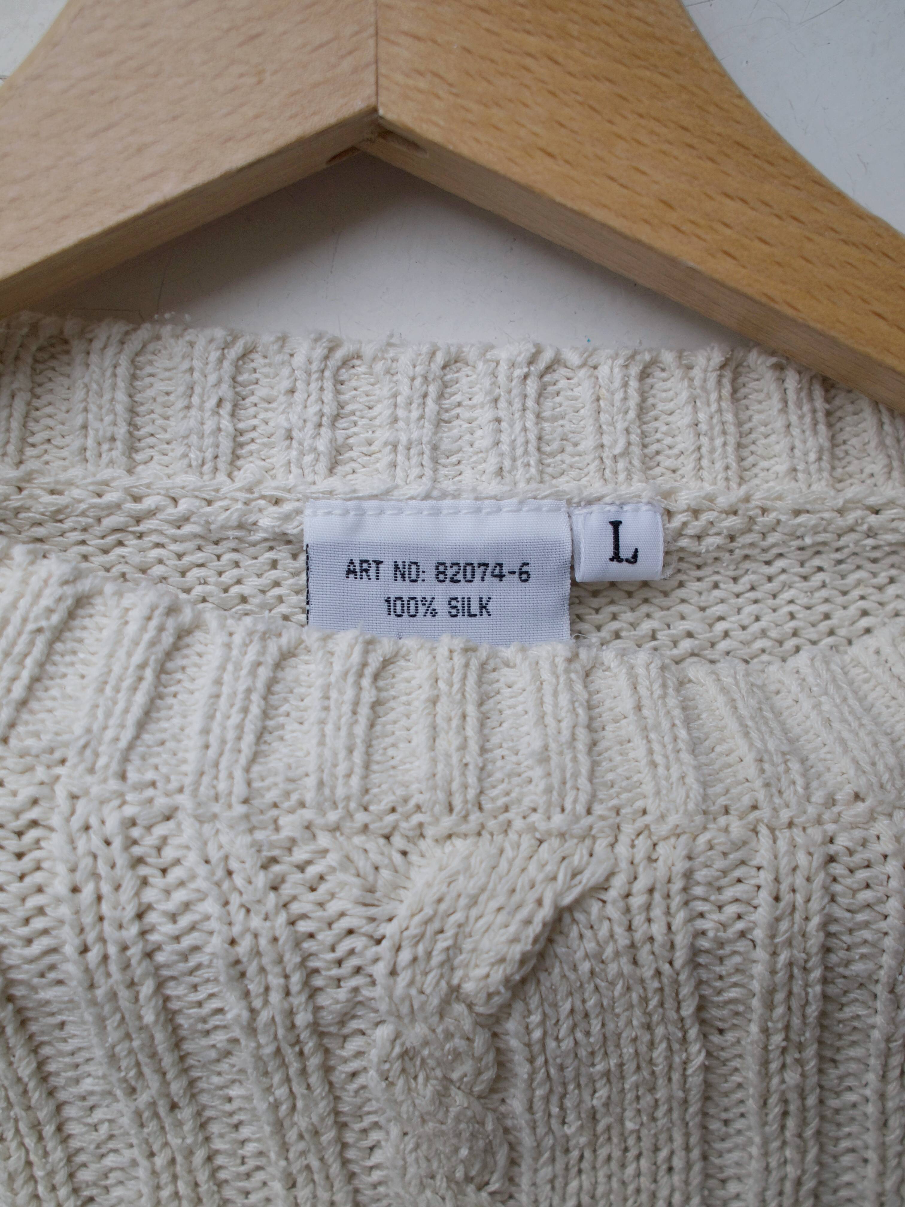 Unikatowy sweter vintage, w 100% wykonany z surowego jedwabiu. Sweter ma drobne „kuleczki”, jest to naturalna cecha surowego jedwabiu.