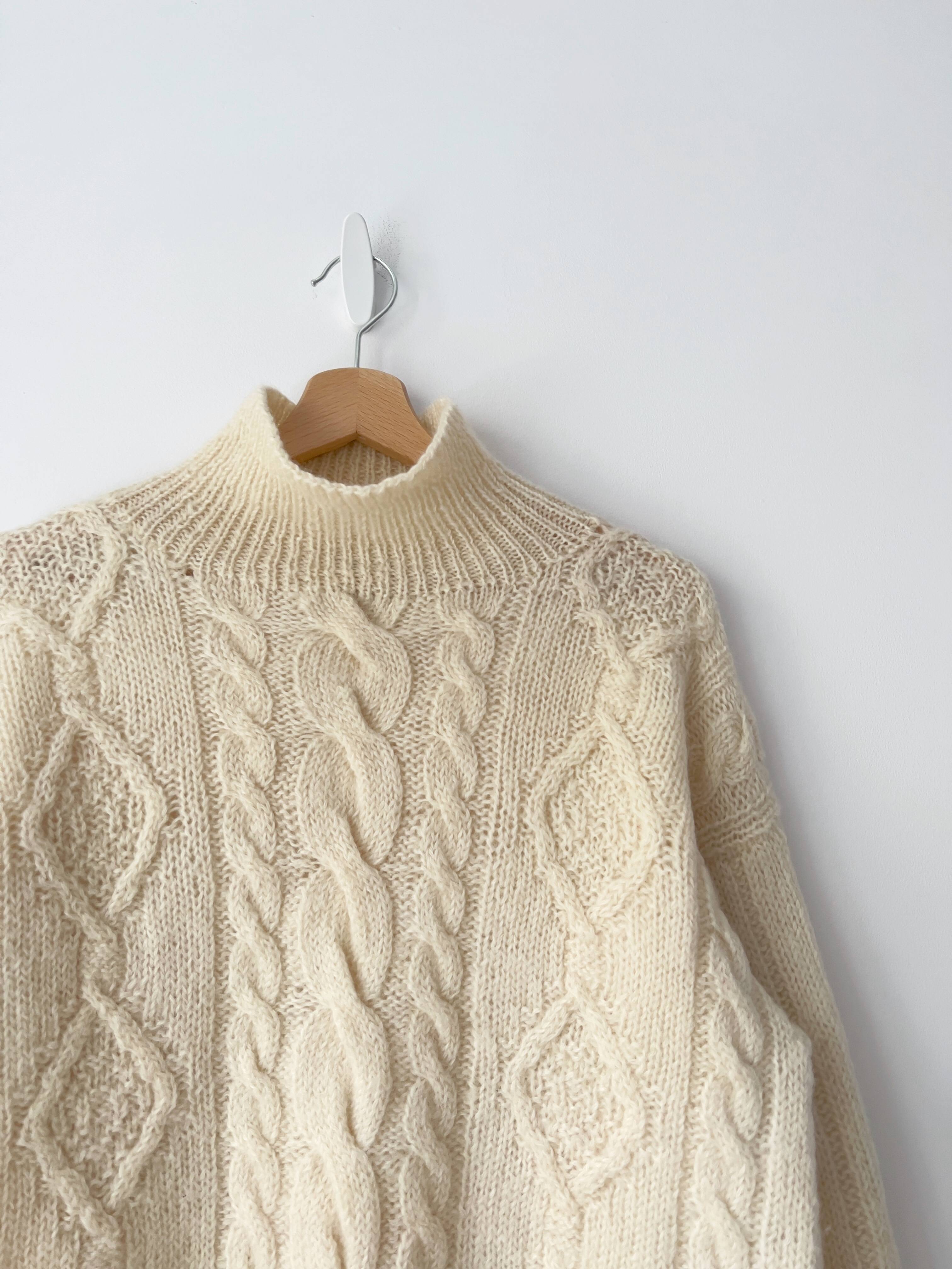 Minimalistyczny kaszmirowy sweter o pudełkowym kroju. Sweter bardzo miękki i przyjemny, ma dwie małe zacerowane dziurki, nie widoczne w noszeniu, poza tym brak mankamentów. Wymiary poniżej.
