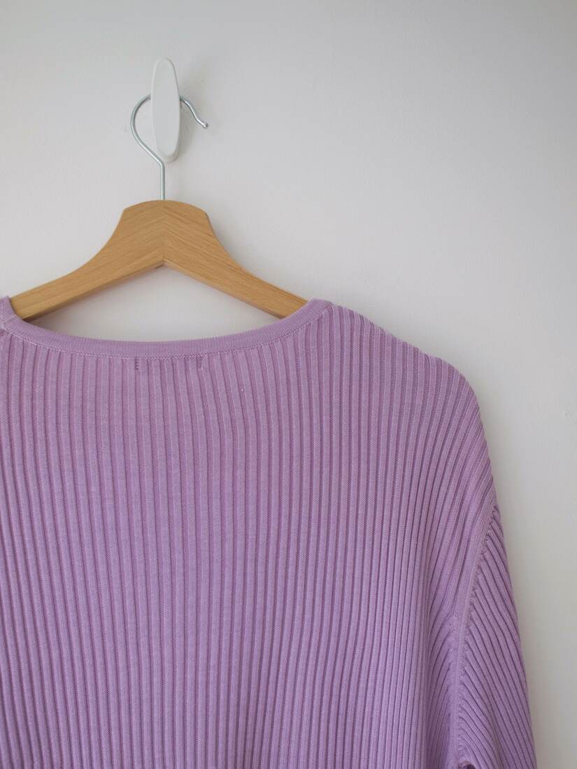 Klasyczny sweter M&S z dekoltem w serek. Skład to 100% kaszmir, bardzo dobry stan, jest minimalnie sfilcowany, nie jest to zauważalne, po prostu jest trochę sztywniejszy.
